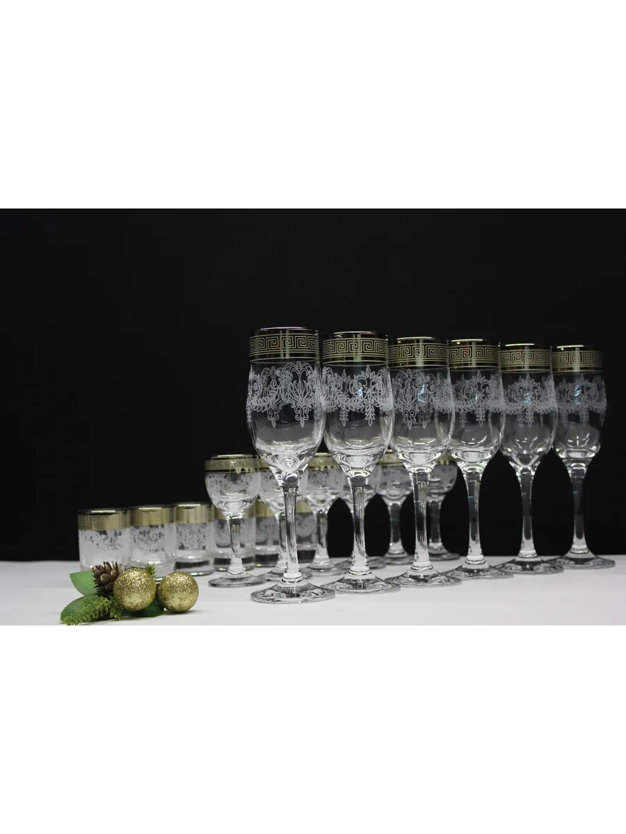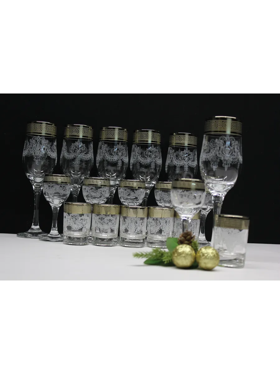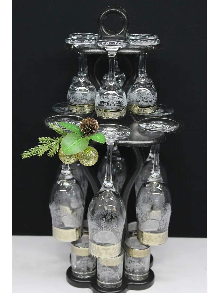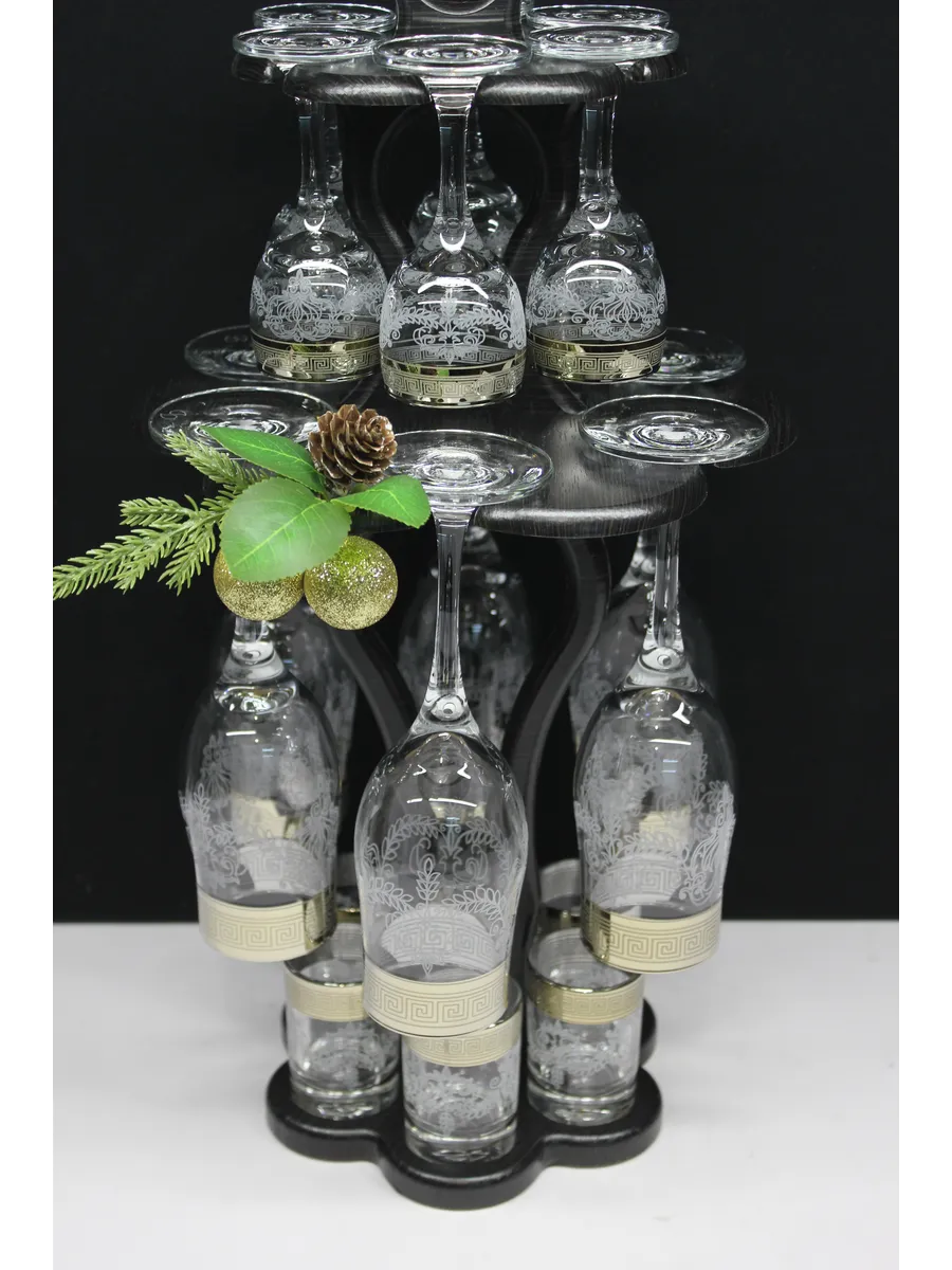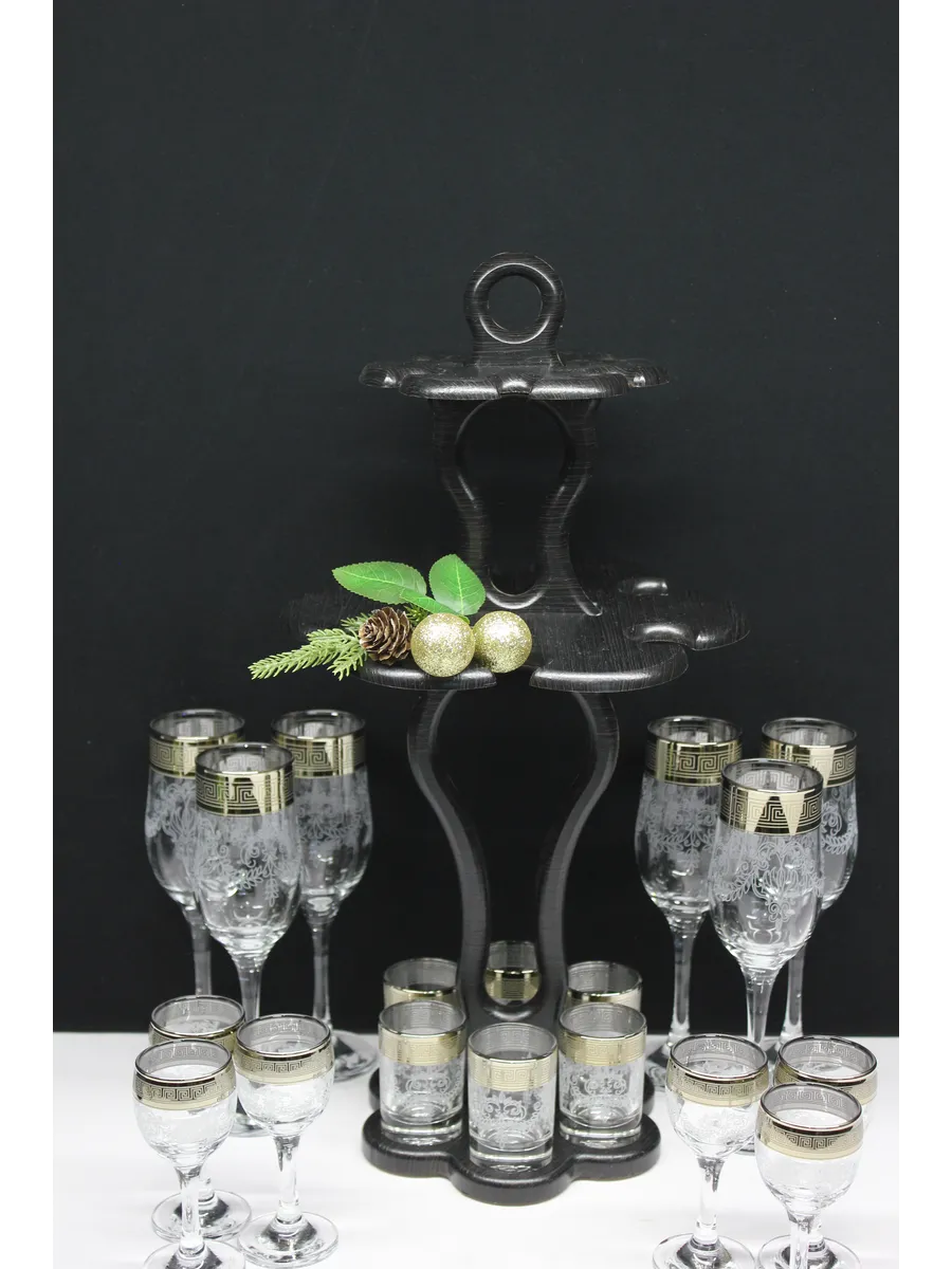 Барный набор "Изящный" 18 предметов из 6 бокалов, 6 рюмок и 6 стопок с гравировкой и золотым напылением на барной стойке из МДФ - это не только функциональная вещь, но и настоящий предмет искусства, который будет радовать глаз и душу на многие годы. Закажите сейчас и наслаждайтесь настоящими напитками в стильном и роскошном дизайне!