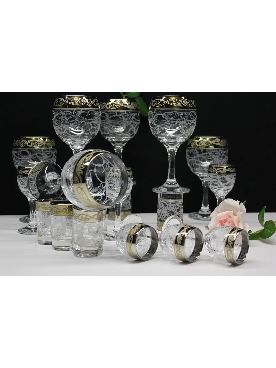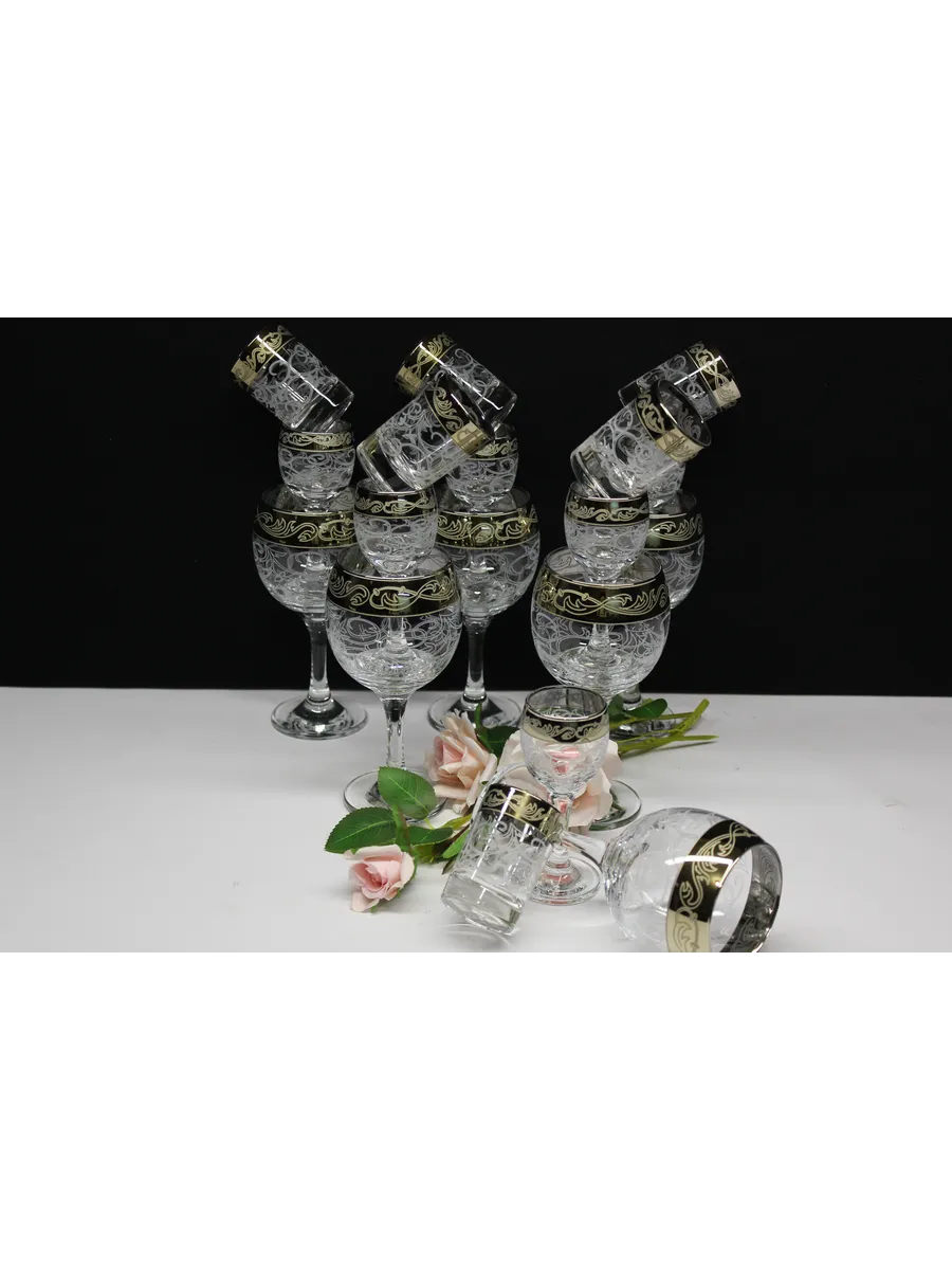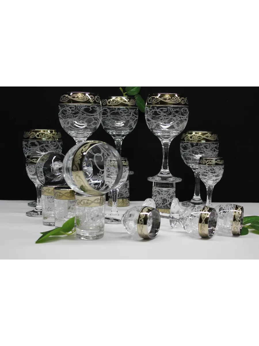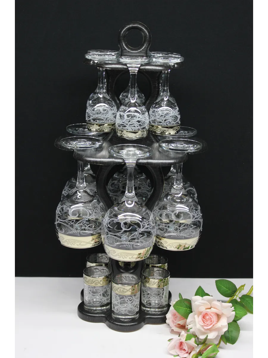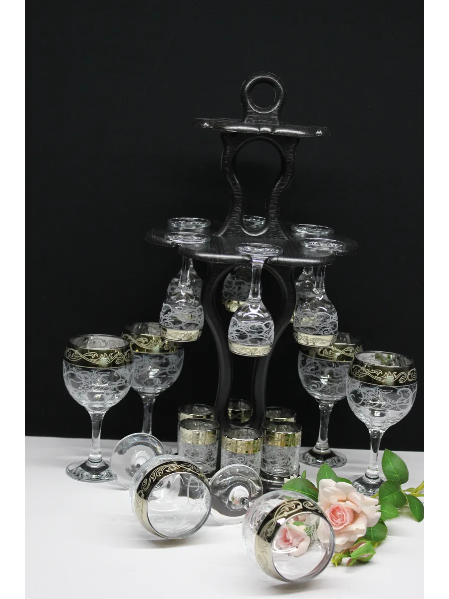 Барный набор "Изящный" 18 предметов из 6 фужеров, 6 рюмок и 6 стопок с гравировкой и золотым напылением на барной стойке из МДФ - это не только функциональная вещь, но и настоящий предмет искусства, который будет радовать глаз и душу на многие годы. Закажите сейчас и наслаждайтесь настоящими напитками в стильном и роскошном дизайне!