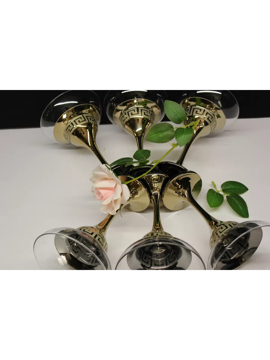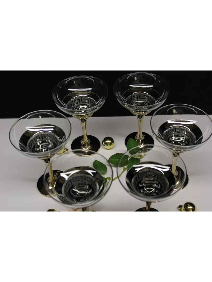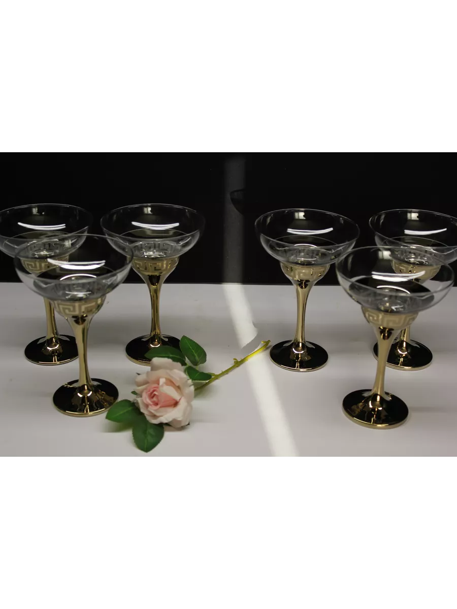 На каждом бокале изображен рисунок, выполненный с помощью гравировки и золотого напыления. Этот рисунок придает бокалам оригинальный и роскошный вид, который будет выглядеть отлично на любом столе. Золотое напыление создает эффектный контраст со стеклом и придает бокалам изысканный вид.