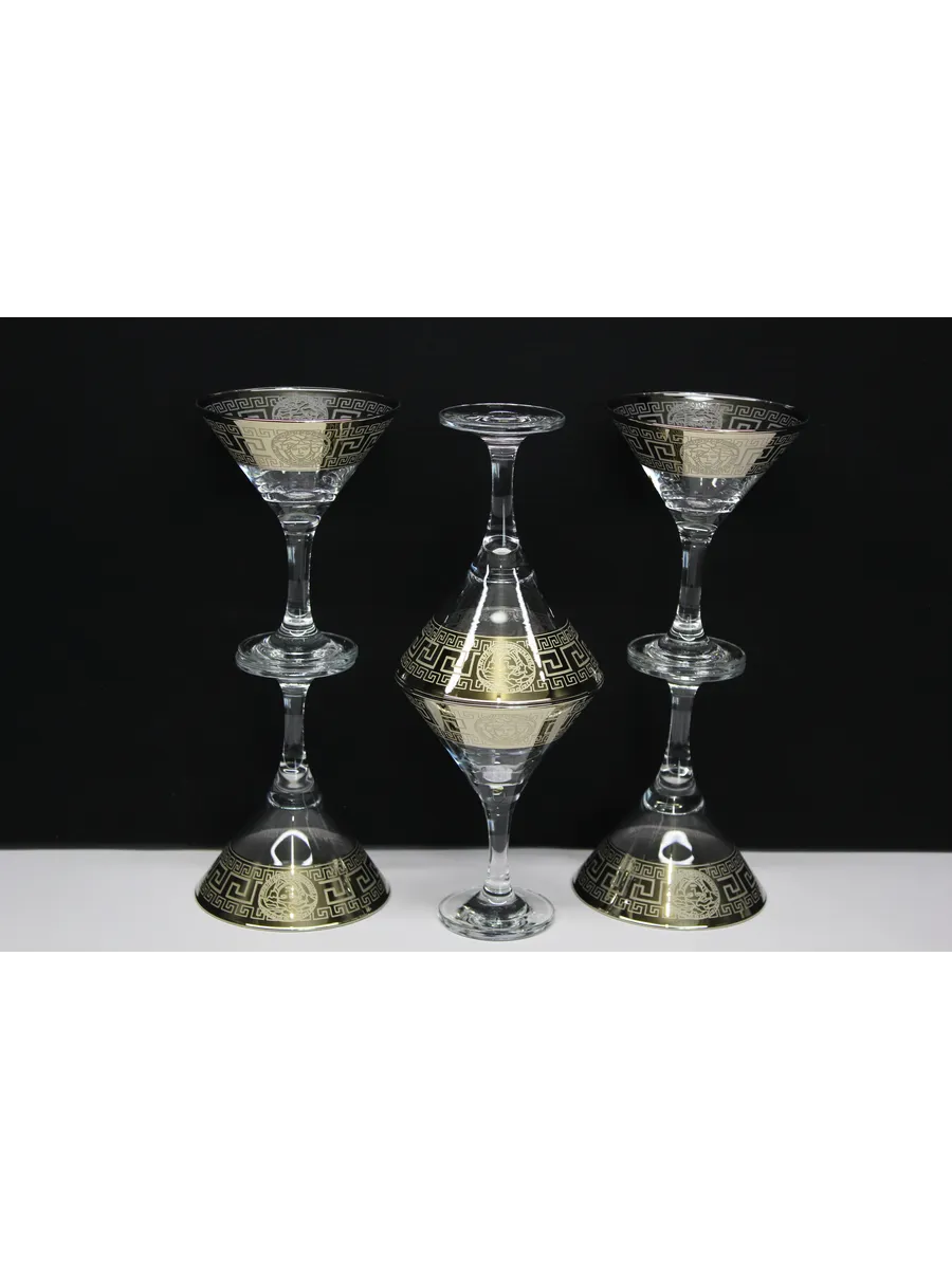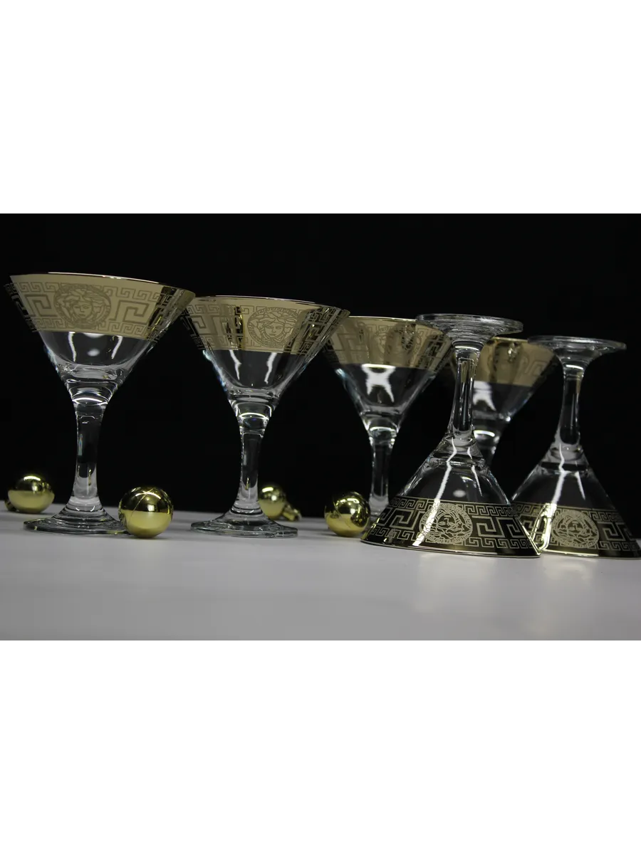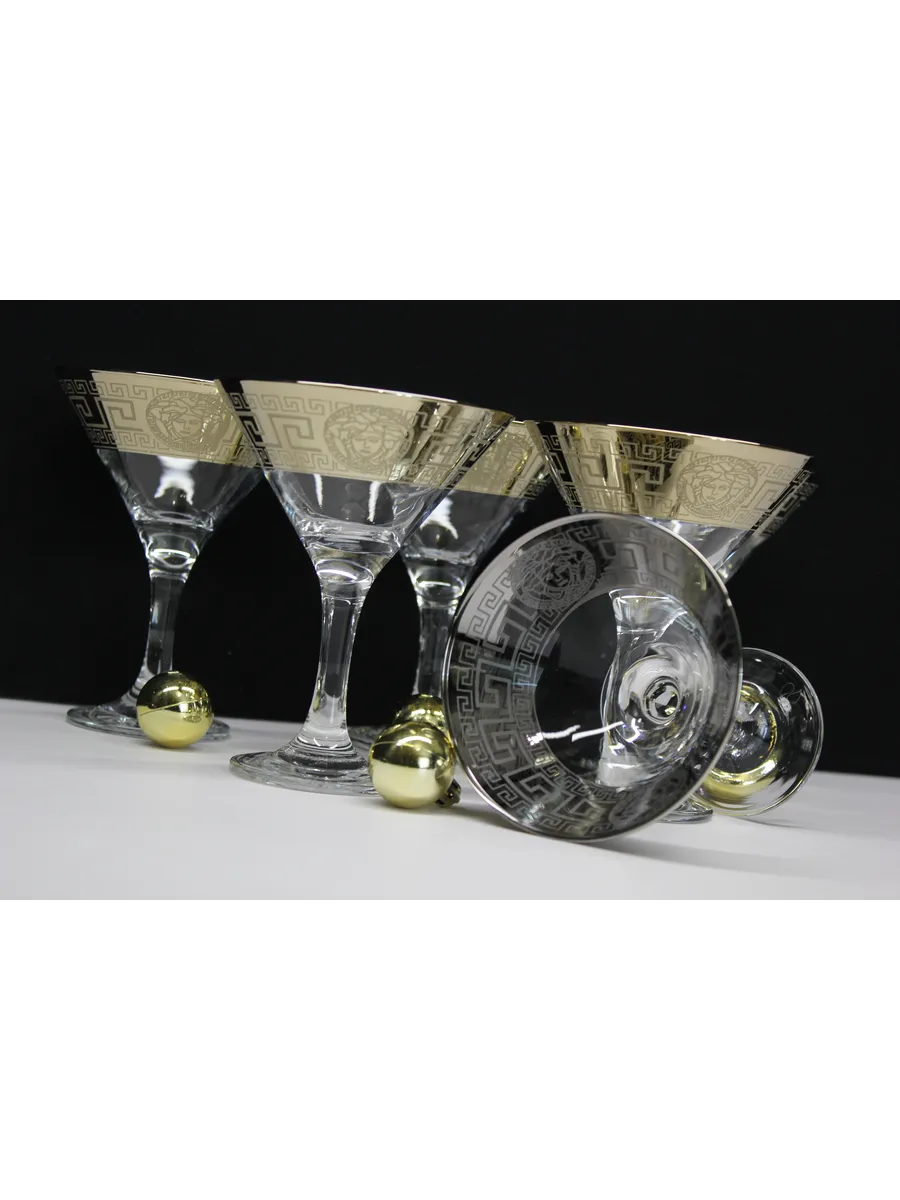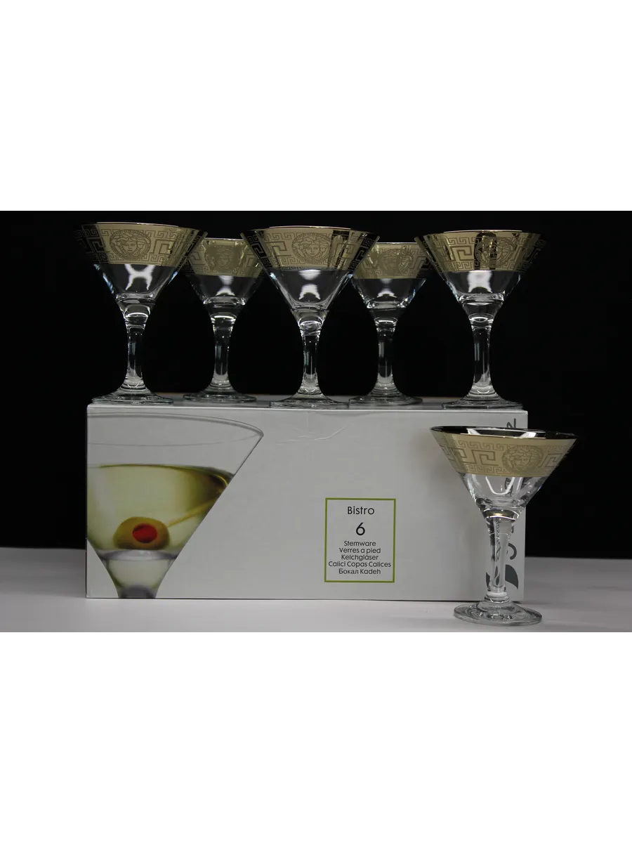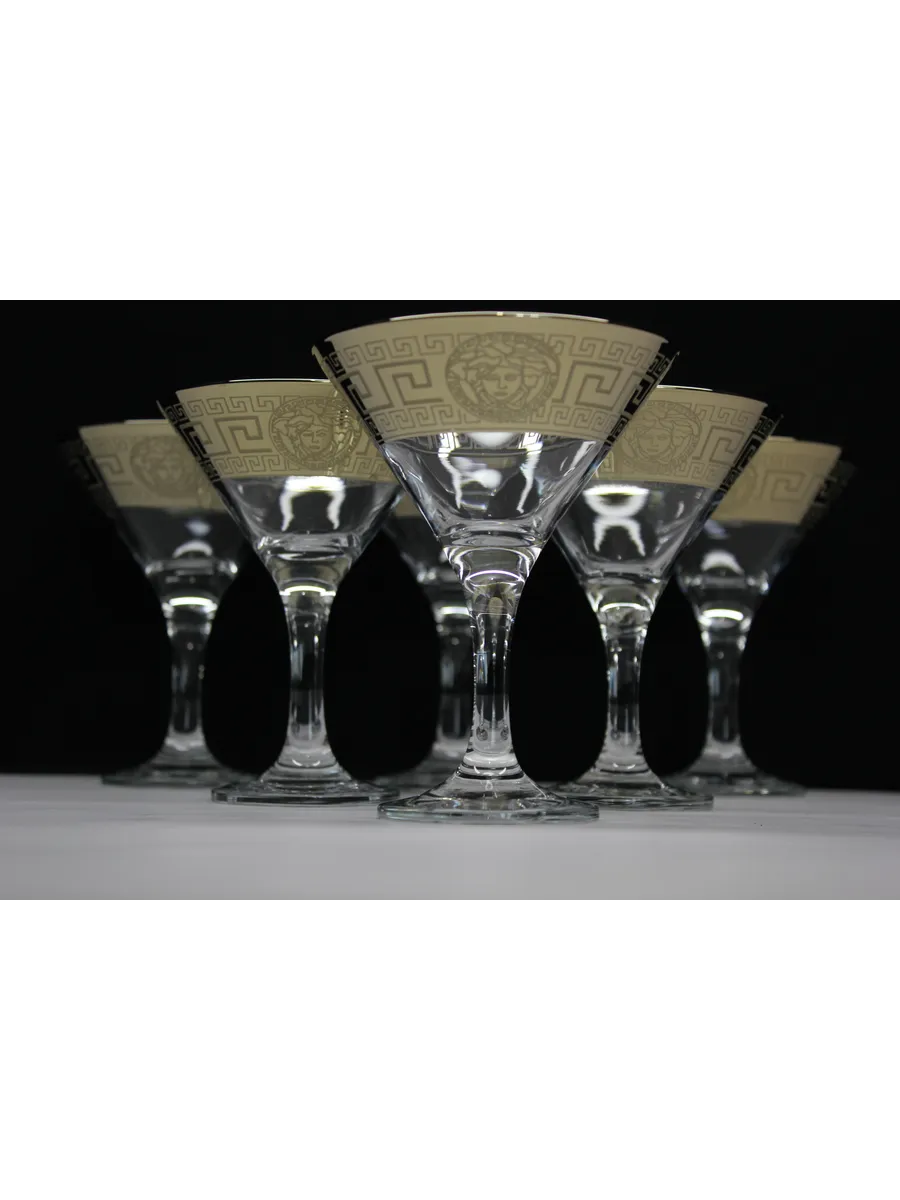 Бокалы под мартини. Мартини, бокал-мартини или коктейльная рюмка – это все названия одно и того же вида бокалов, из которых рекомендуется пить мартини. Они представляют собой утонченный сосуд на высокой тонкой ножке, верхняя часть которого похожа на треугольник или конус.Поэтому стоит знать, какой бокал для мартини нужно использовать, а если научится его красиво преподнести, то вы сможете удивить этим людей.... Для этой цели используются хрупкие стеклянные бокалы для мартини, имеющие конусную форму. Она была выбрана неслучайно и стала результатом множества проб и ошибок. Бокал с мартини и льдом. Мартини – это символ достатка, благополучия, а также высокого образа жизни. Интересный факт! Методом сравнения специалисты выяснили, что именно в таких бокалах напиток не теряет своего вкуса и аромата, даже долго находясь на открытом воздухе. А за счет наличия длинной ножки, не нагревается от тепла рук. Коллекция " Версаче" притягивает взгляды и дарит эстетическое наслаждение. Эти стильные бокалы подходят для подачи любых напитков: игристое шампанское, красное и белое вино, коктейли. Они несомненно украсят любую вечеринку и привнесут яркие нотки в домашние посиделки.
