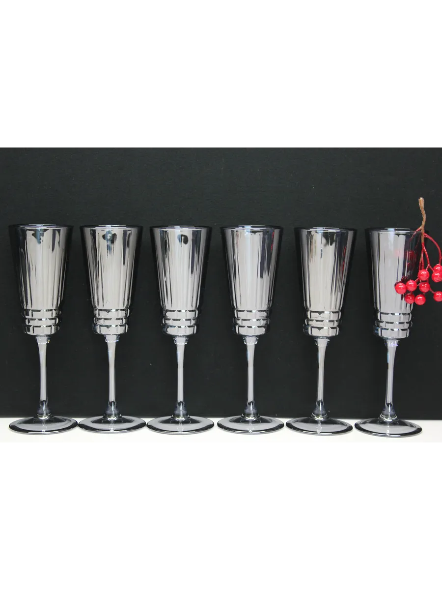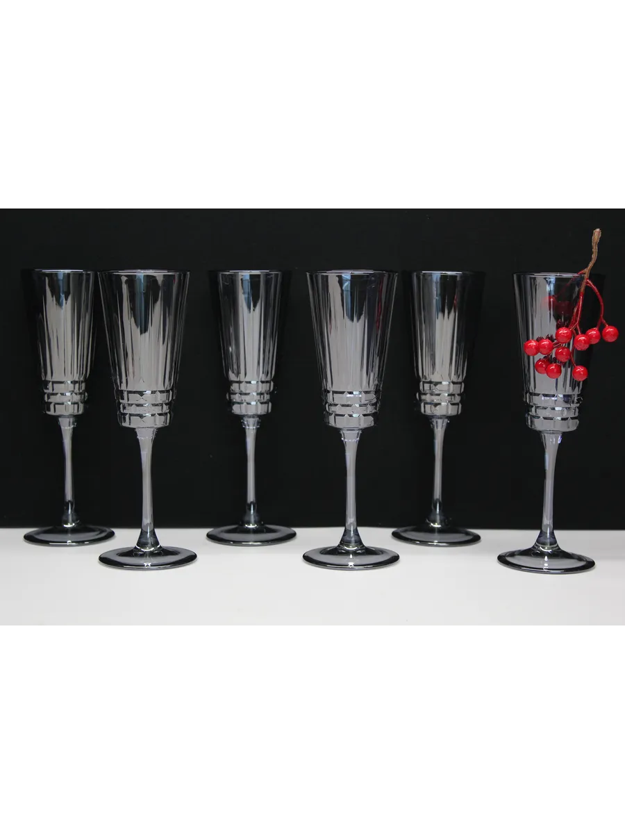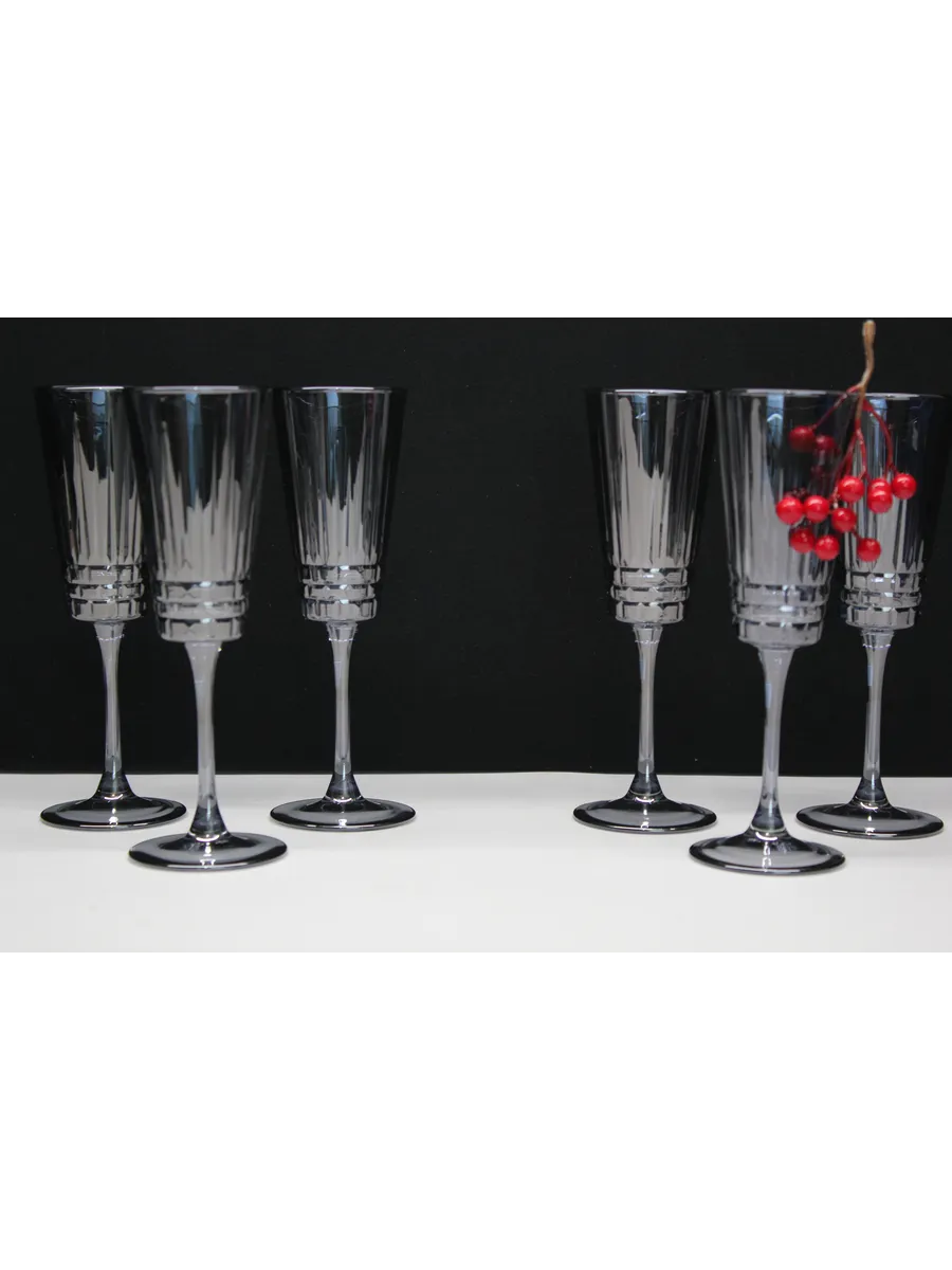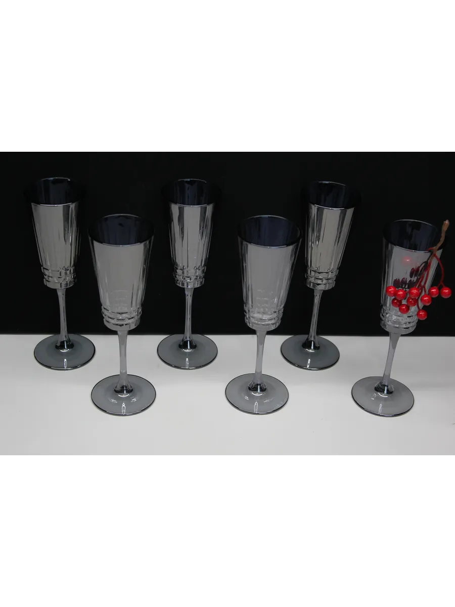 Декор: Идеальное напыление серо-голубого цвета, придающее бокалам для шампанского особый шик и утонченность.