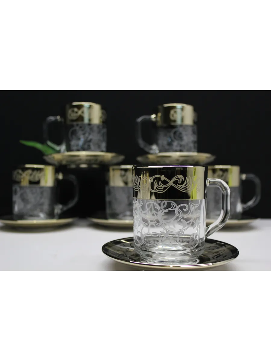 Подарочный набор "Абстракция" состоит из 6 кружек и блюдец. Набор выполнен из декорированного высококачественного стекла. Такой набор прекрасно подойдет как для повседневного использования, так и для праздников или особенных случаев. Изящные изделия прекрасно дополнят сервировку любого стола и станут эффектным аксессуаром в вашем интерьере.Предназначены для чая, кофе и других напитков. Набор изготовлены в узоре «Абстракция», имеет алмазную гравировку и напыление, а цвет золотом придает изделию особый шарм.Кружки и блюдца с рисунком не рекомендуется мыть при помощи жестких абразивных моющих средств и подвергать длительному воздействию солнечных лучей.Их не рекомендуют использовать в СВЧ-печи и посудомоечной машине. Набор поставляется в стильной подарочной упаковке и станет отличным подарком к любому празднику.