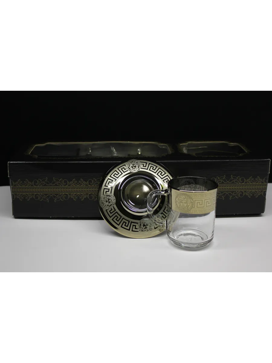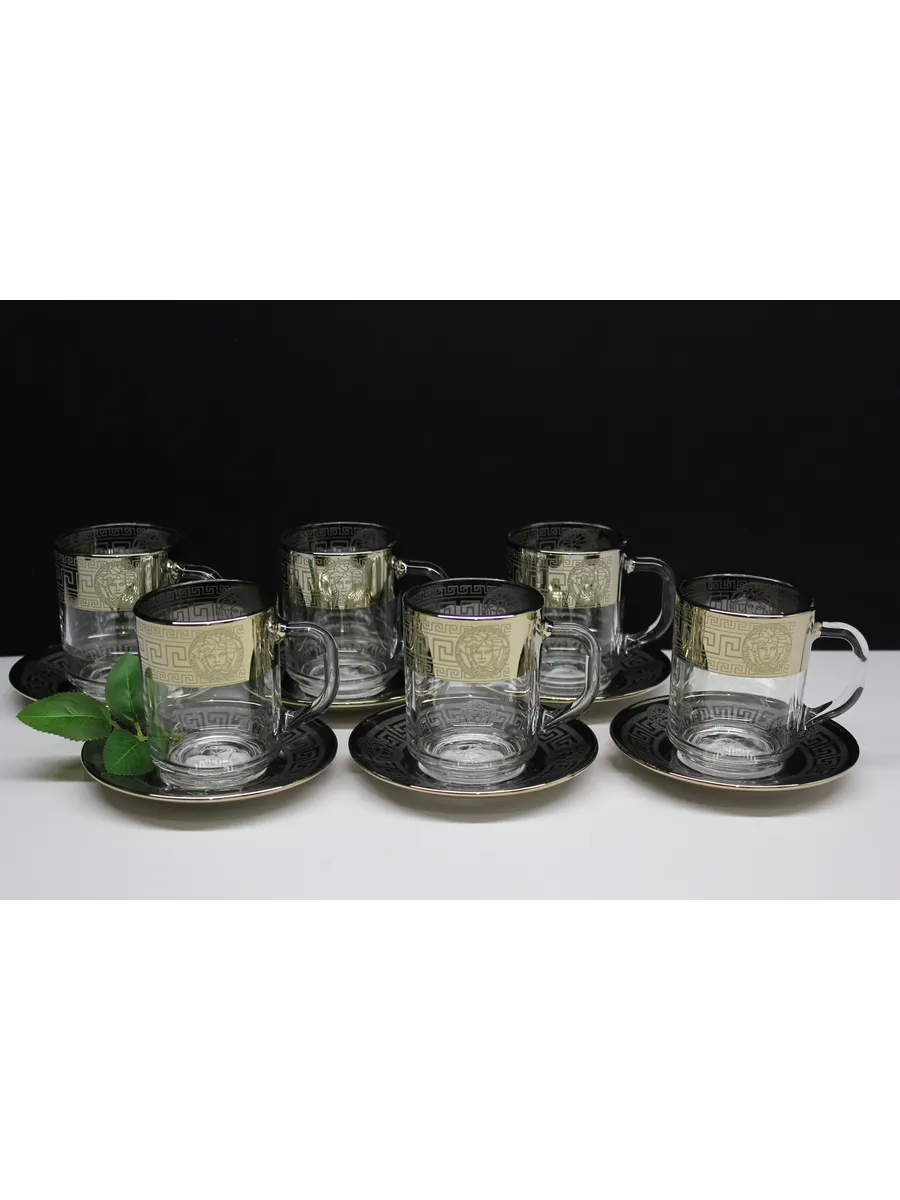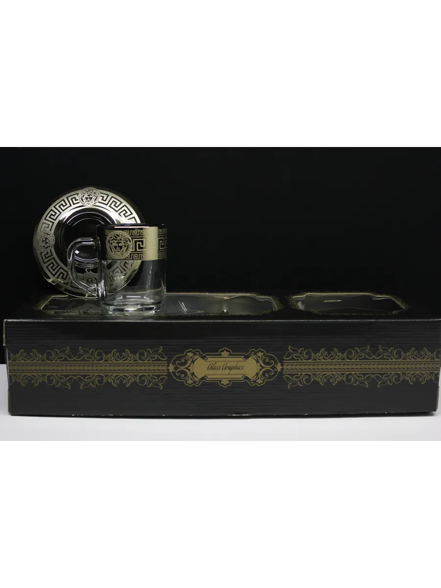 Подарочный набор "Версаче" состоит из 6 кружек и блюдец. Набор выполнен из декорированного высококачественного стекла. Такой набор прекрасно подойдет как для повседневного использования, так и для праздников или особенных случаев. Изящные изделия прекрасно дополнят сервировку любого стола и станут эффектным аксессуаром в вашем интерьере.Предназначены для чая, кофе и других напитков. Набор изготовлены в узоре «Версаче», имеет алмазную гравировку и напыление, а цвет золотом придает изделию особый шарм.Кружки и блюдца с рисунком не рекомендуется мыть при помощи жестких абразивных моющих средств и подвергать длительному воздействию солнечных лучей.Их не рекомендуют использовать в СВЧ-печи и посудомоечной машине. Набор поставляется в стильной подарочной упаковке и станет отличным подарком к любому празднику.