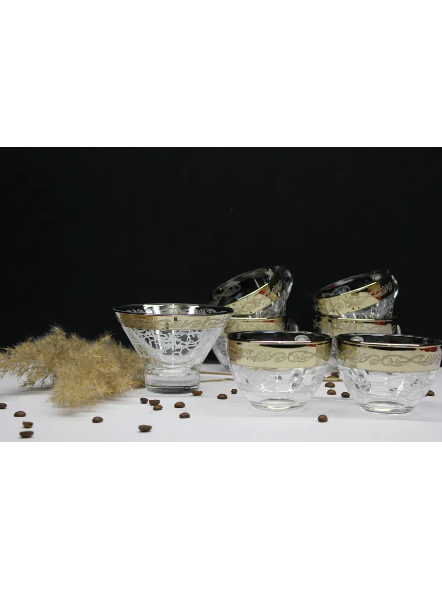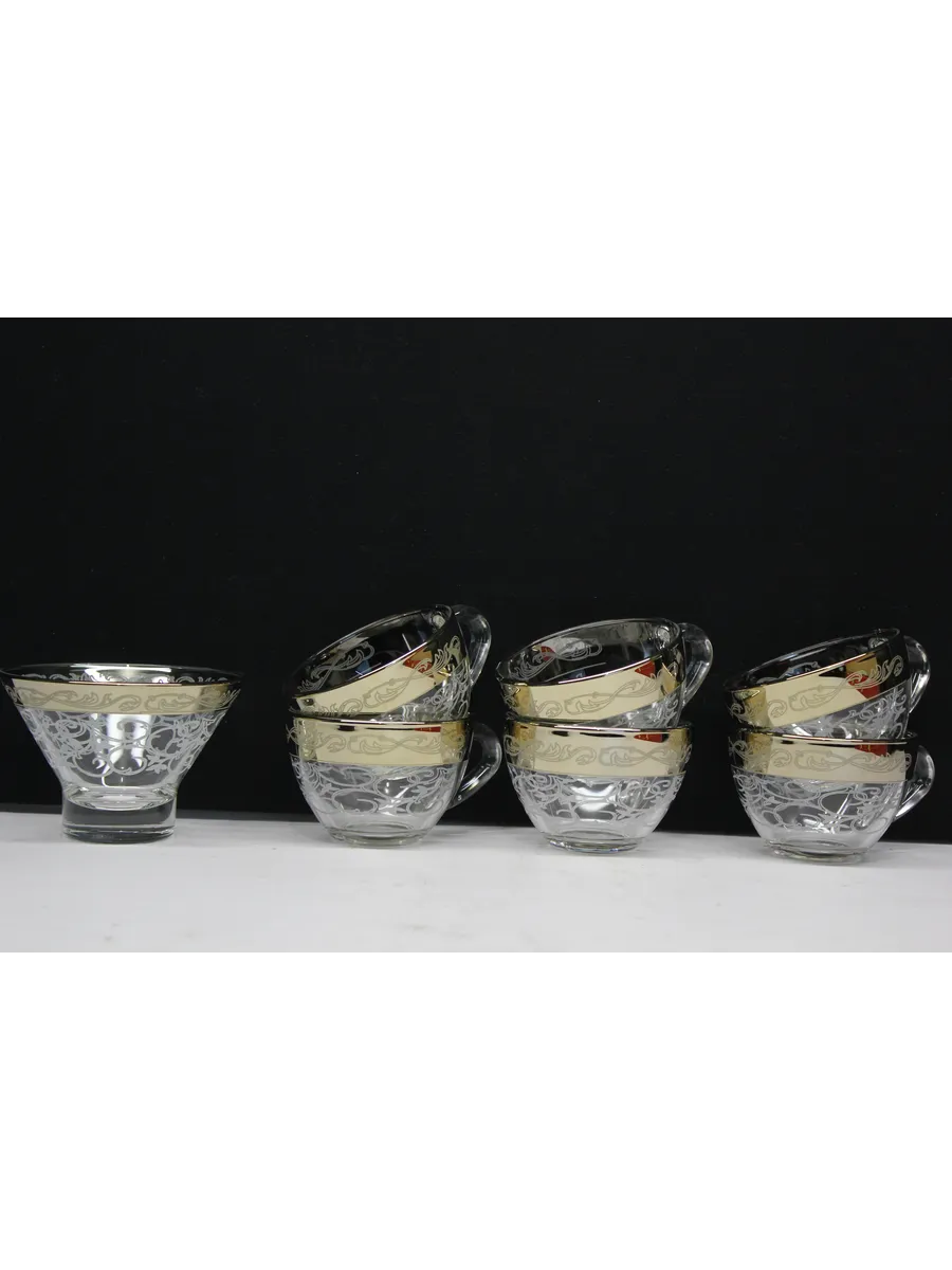 Подарочный набор "Абстракция" состоит из 6 чашек и криманки. Набор выполнен из декорированного высококачественного стекла. Такой набор прекрасно подойдет как для повседневного использования, так и для праздников или особенных случаев. Изящные изделия прекрасно дополнят сервировку любого стола и станут эффектным аксессуаром в вашем интерьере.Предназначены для чая, кофе и других напитков. Набор изготовлены в узоре «Абстракция», имеет алмазную гравировку и напыление, а цвет золотом придает изделию особый шарм. Чашки и креманка с рисунком не рекомендуется мыть при помощи жестких абразивных моющих средств и подвергать длительному воздействию солнечных лучей.Их не рекомендуют использовать в СВЧ-печи и посудомоечной машине. Набор поставляется в стильной подарочной упаковке и станет отличным подарком к любому празднику.