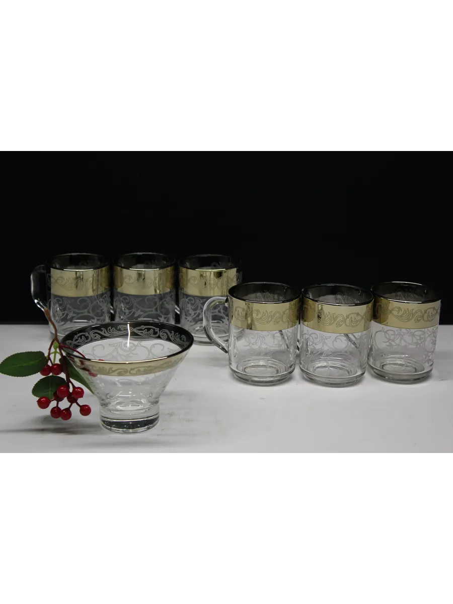 Подарочный набор "Абстракция" состоит из 6 кружек и креманки. Набор выполнен из декорированного высококачественного стекла. Такой набор прекрасно подойдет как для повседневного использования, так и для праздников или особенных случаев. Изящные изделия прекрасно дополнят сервировку любого стола и станут эффектным аксессуаром в вашем интерьере.Предназначены для чая, кофе и других напитков. Набор изготовлены в узоре «Абстракция», имеет алмазную гравировку и напыление, а цвет золотом придает изделию особый шарм.Кружки и криманка с рисунком не рекомендуется мыть при помощи жестких абразивных моющих средств и подвергать длительному воздействию солнечных лучей.Их не рекомендуют использовать в СВЧ-печи и посудомоечной машине. Набор поставляется в стильной подарочной упаковке и станет отличным подарком к любому празднику.
