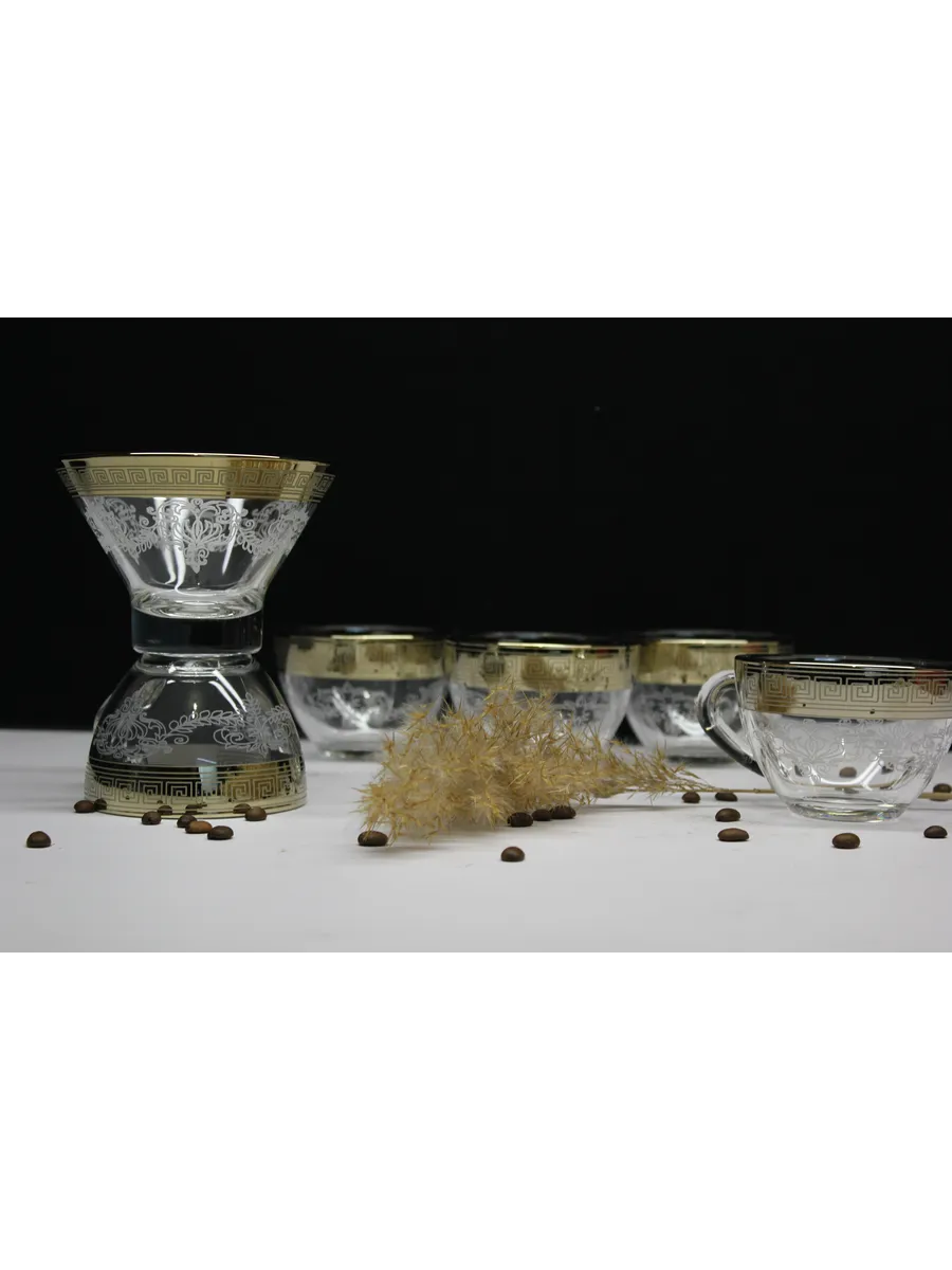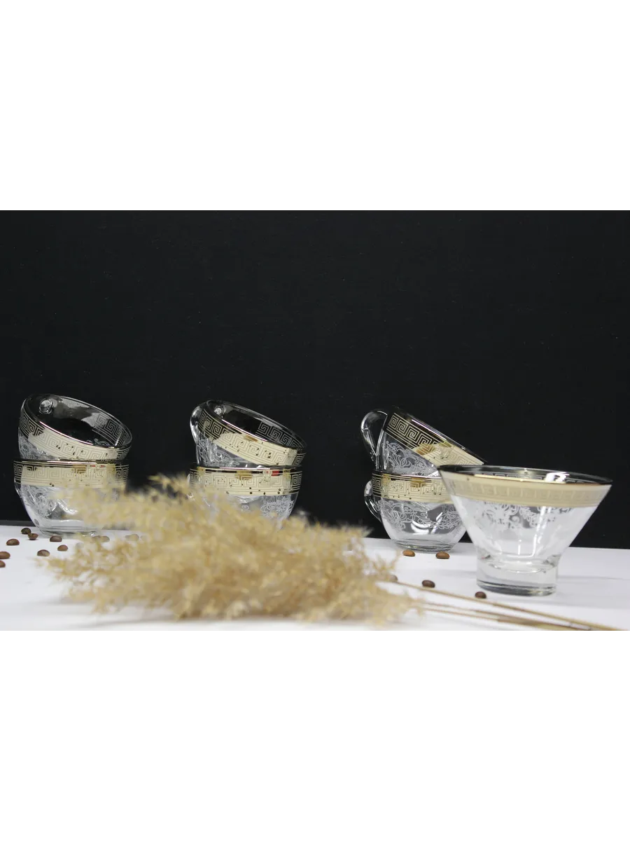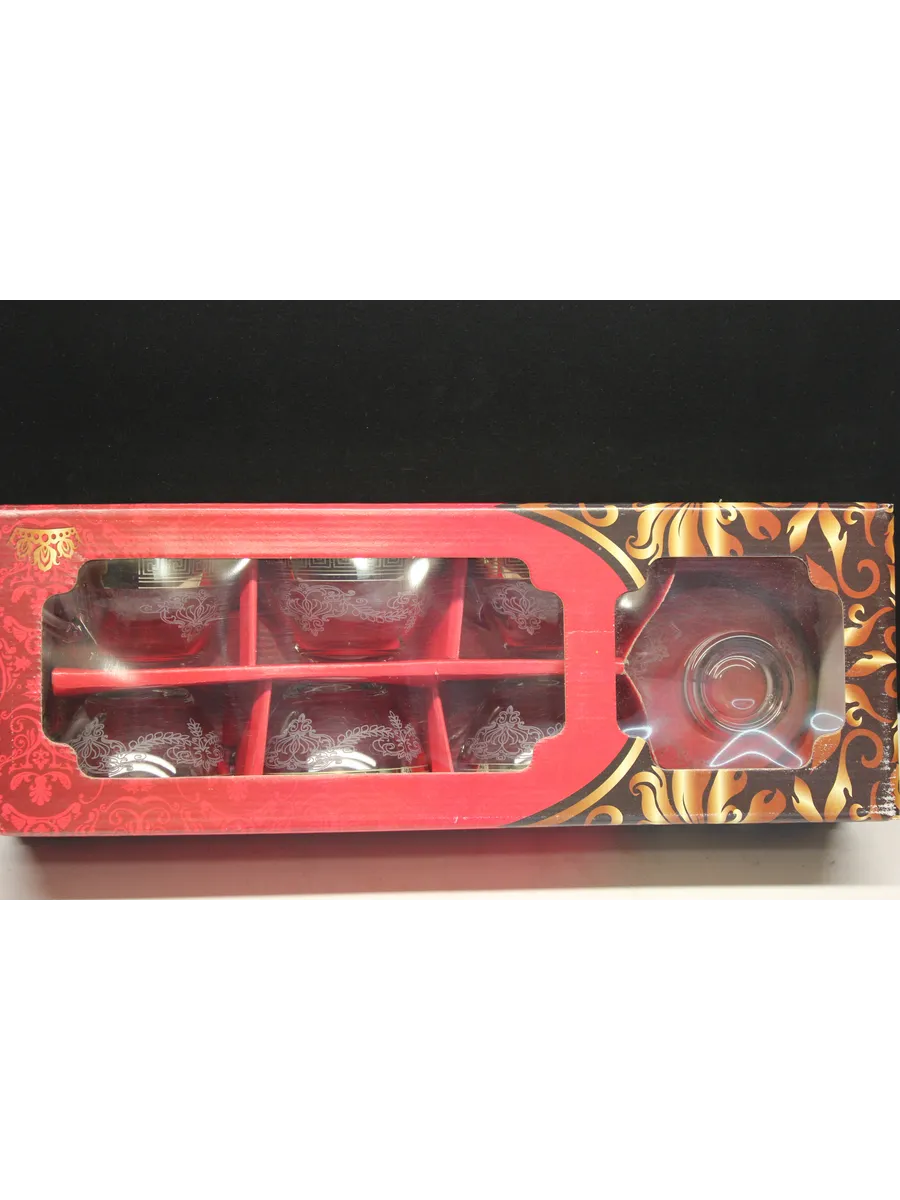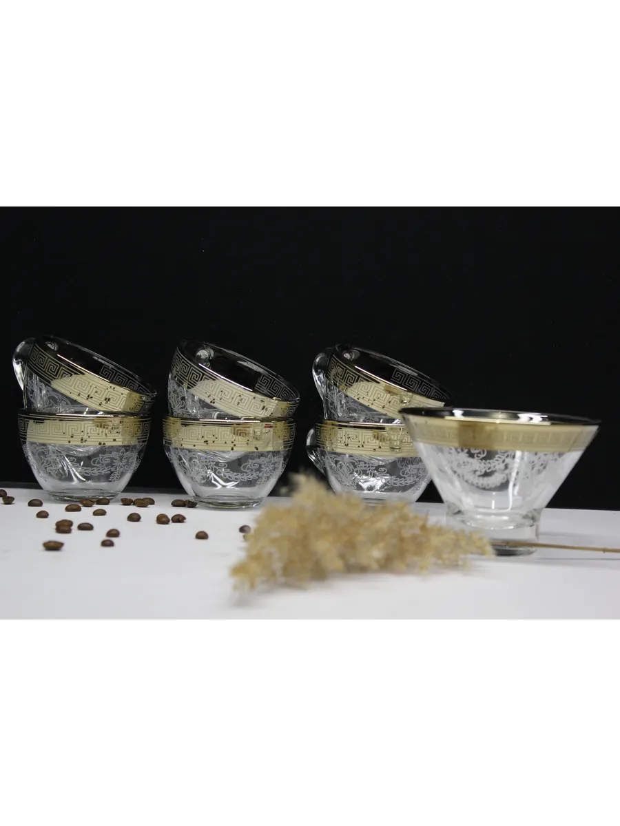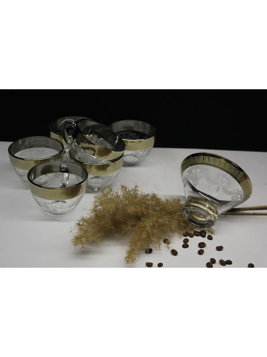Подарочный набор "Барокко" состоит из 6 чашек и криманки. Набор выполнен из декорированного высококачественного стекла. Такой набор прекрасно подойдет как для повседневного использования, так и для праздников или особенных случаев. Изящные изделия прекрасно дополнят сервировку любого стола и станут эффектным аксессуаром в вашем интерьере.Предназначены для чая, кофе и других напитков. Набор изготовлены в узоре «Барокко», имеет алмазную гравировку и напыление, а цвет золотом придает изделию особый шарм. Чашки и креманка с рисунком не рекомендуется мыть при помощи жестких абразивных моющих средств и подвергать длительному воздействию солнечных лучей.Их не рекомендуют использовать в СВЧ-печи и посудомоечной машине. Набор поставляется в стильной подарочной упаковке и станет отличным подарком к любому празднику.