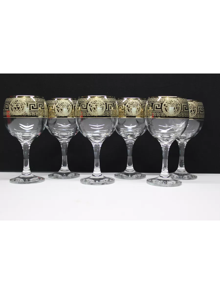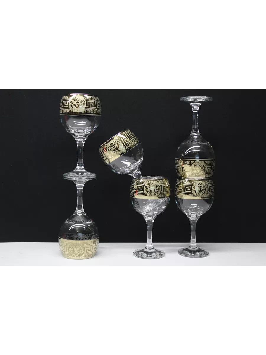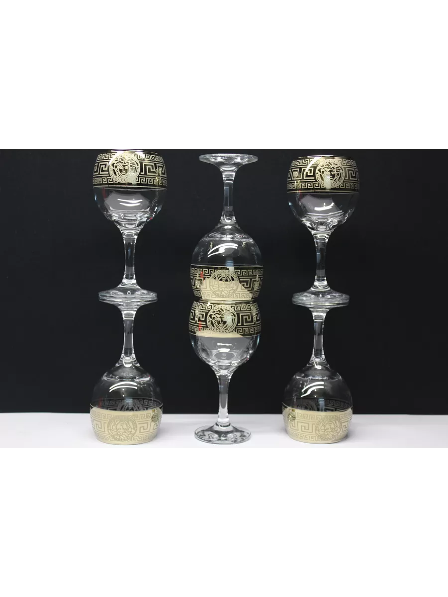 Созданные с любовью, изящно украшенные фужеры и бокалы, станут достойным дополнением вашего стола.Одним из самых интересных вариантов декора в современном мире является цветное стекло в интерьере. Вашему вниманию представлена коллекция "версаче золотой"Оригинальные золотые бокалы, стаканы, графины и кувшины– это прекрасный подарок и идеальное украшение для Вашего праздничного стола и веселой вечеринки.Все изделия данной коллекции проходят тщательную отборку и контроль качества.