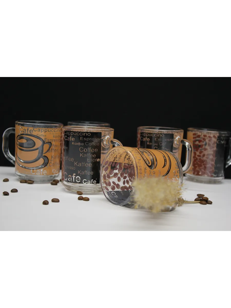 Набор бокалов из экологичного и прочного стекла с деколью кофейных зерен. Этот стильный и экологичный набор бокалов объемом 200 мл с круговой деколью кофейных зерен станет отличным дополнением к вашему утреннему столу. Яркий и насыщенный дизайн добавит уюта и элегантности в любой интерьер, а высококачественное стекло обеспечит долговечность и прочность.