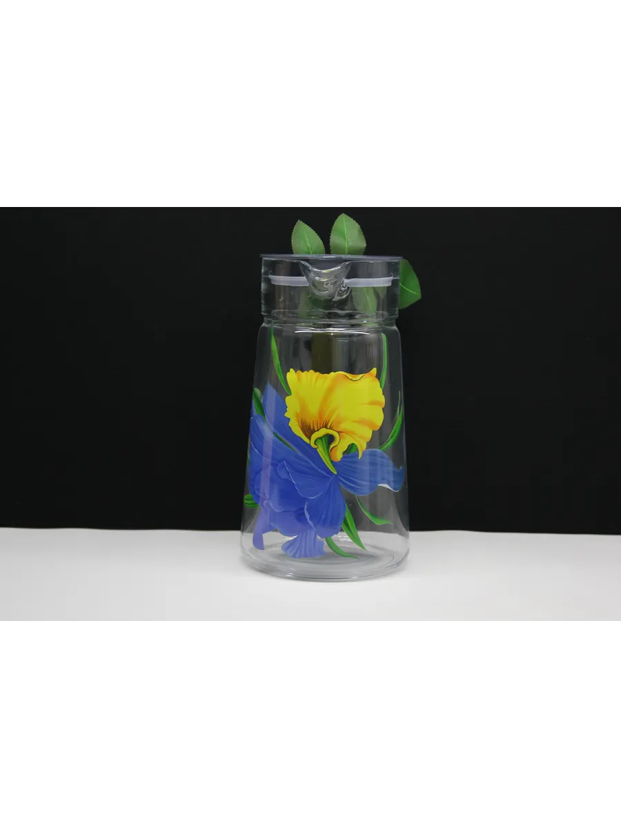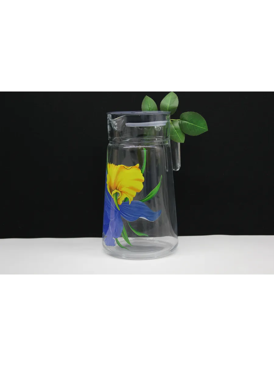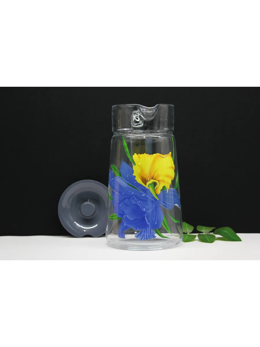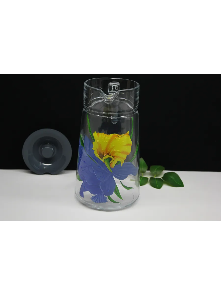 Этот стеклянный кувшин с крышкой и деколью "Ирис" — не просто посуда, это произведение искусства, которое будет радовать вас и ваших близких долгие годы. Сделайте каждый момент особенным с нашим стильным и элегантным кувшином.