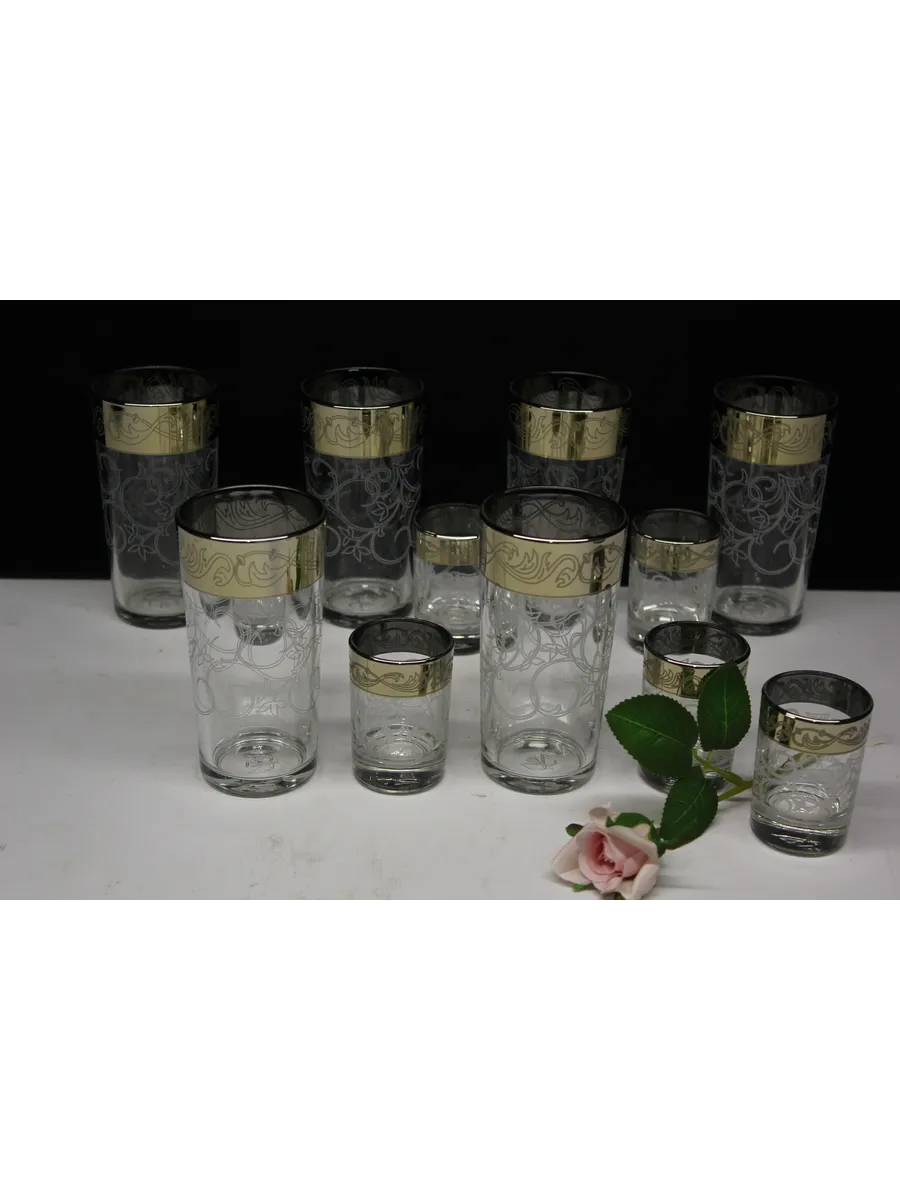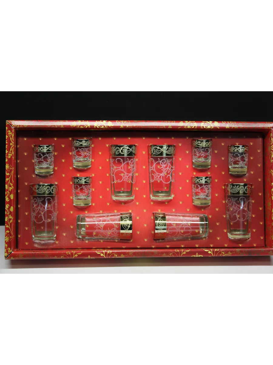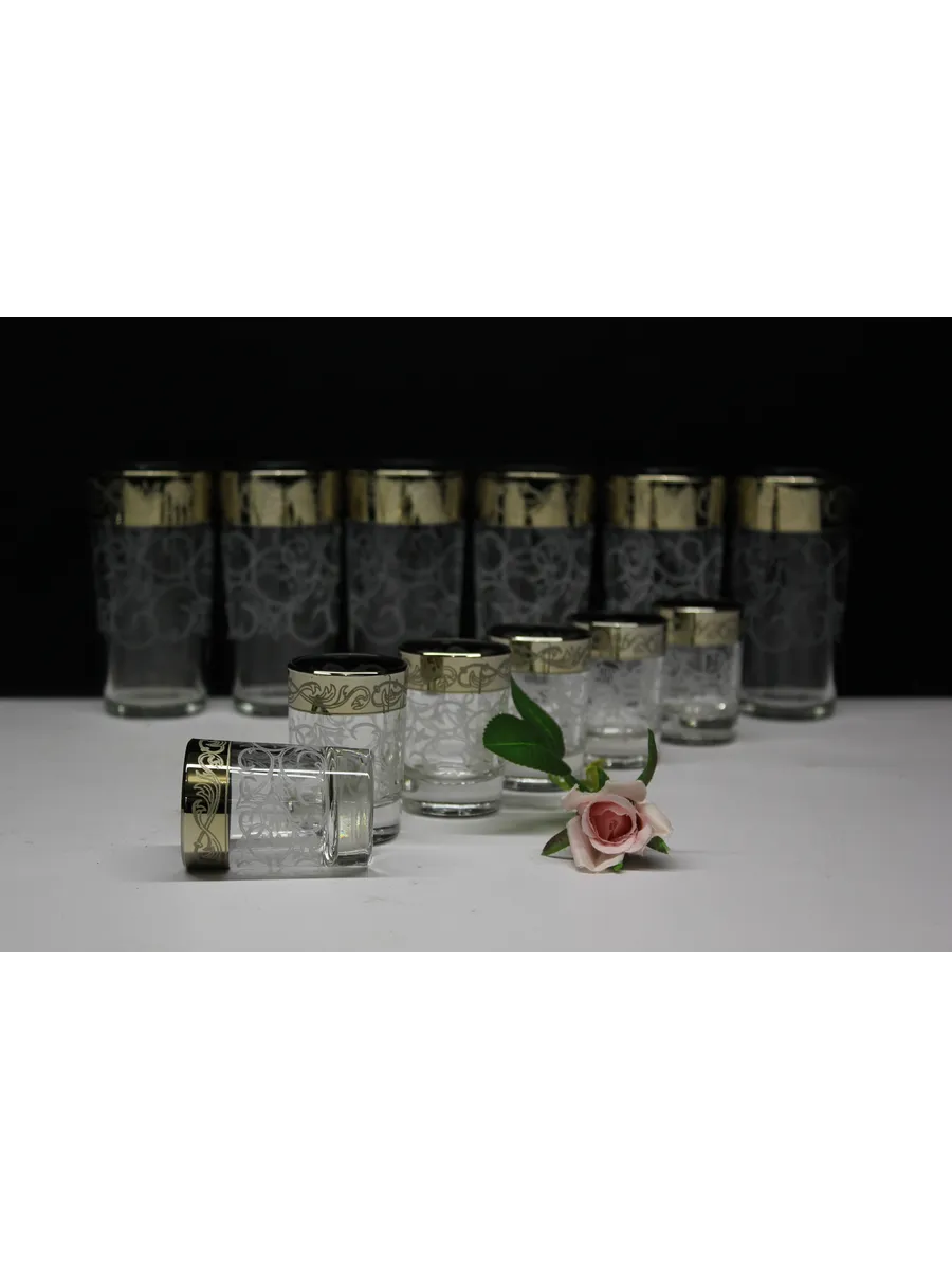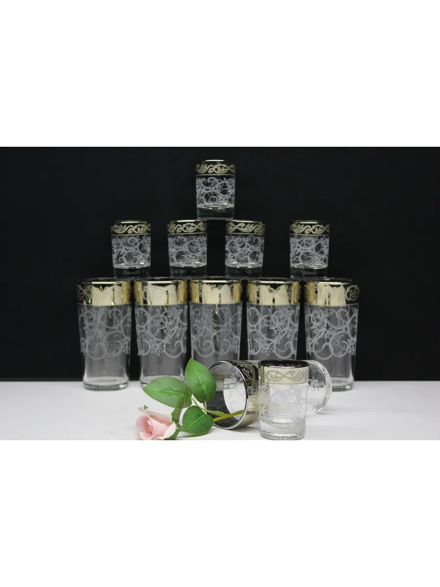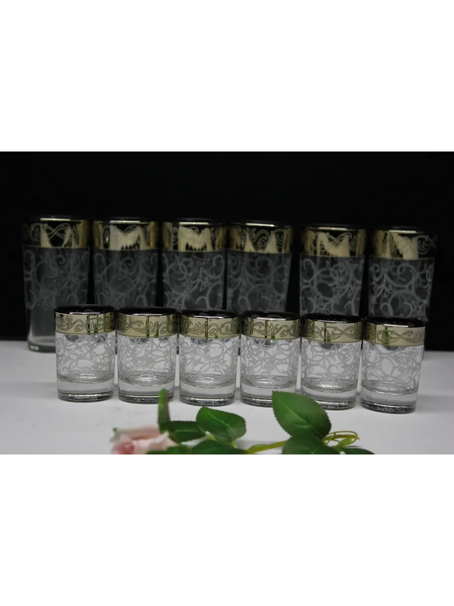 Подарочные стаканы, стопки станут замечательным презентом на любое торжество.Каждый предмет набора изготовлен из прочного стекла и обладает красивой формой, которая придает ему дополнительный шик. Но главным элементом дизайна являются рисунок цветов и золотое напыление, которыми украшен каждый стакан и стопка. Мягкие и изящные линии рисунка замечательно сочетаются с блеском стаканов и стопок создают неповторимый эффект. Этот набор станет отличным подарком для тех, кто ценит красоту, изысканность и гармонию во всем. Он также подойдет для оформления свадебного стола или другого торжества. Набор подарочный "Абстракция" — это не просто элемент сервировки стола, это настоящее произведение искусства, где каждый стакан и стопка станет символом роскоши и изысканности.