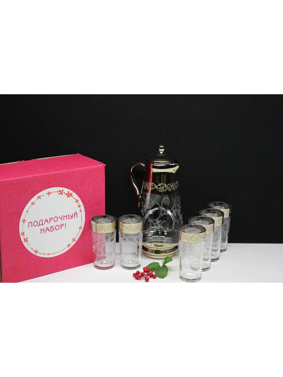 Подарочный Набор: Кувшин 1,7 л + 6 Стаканов по 230 мл с Гравировкой и Золотым Напылением