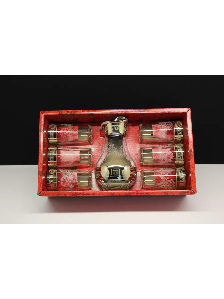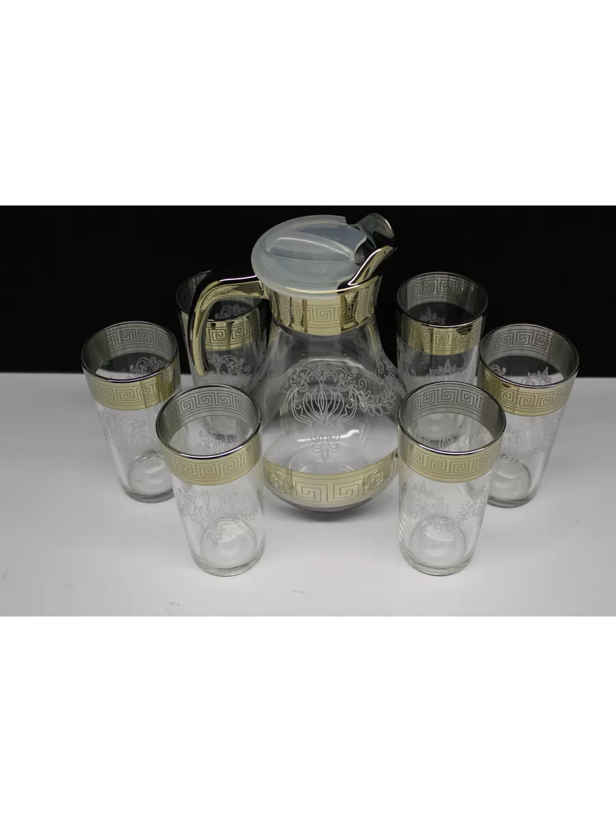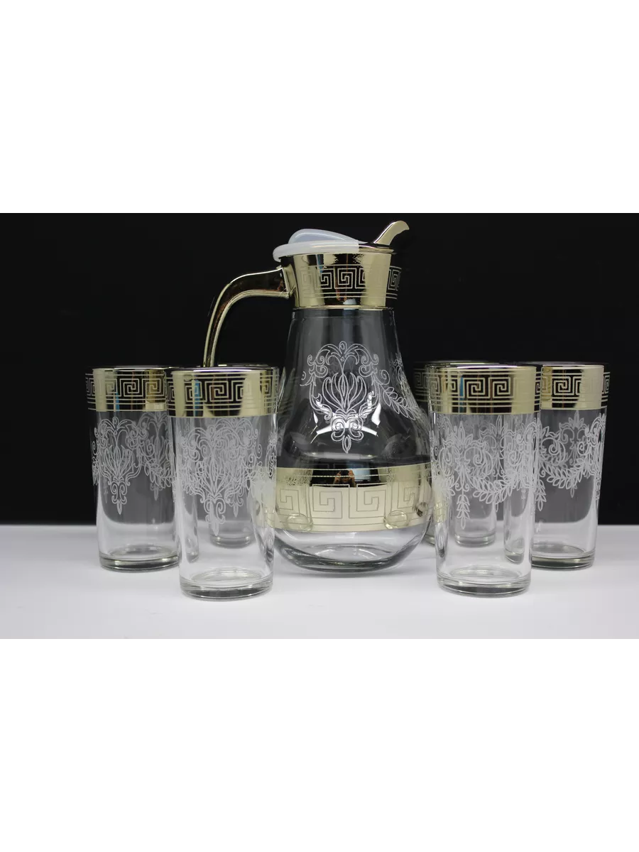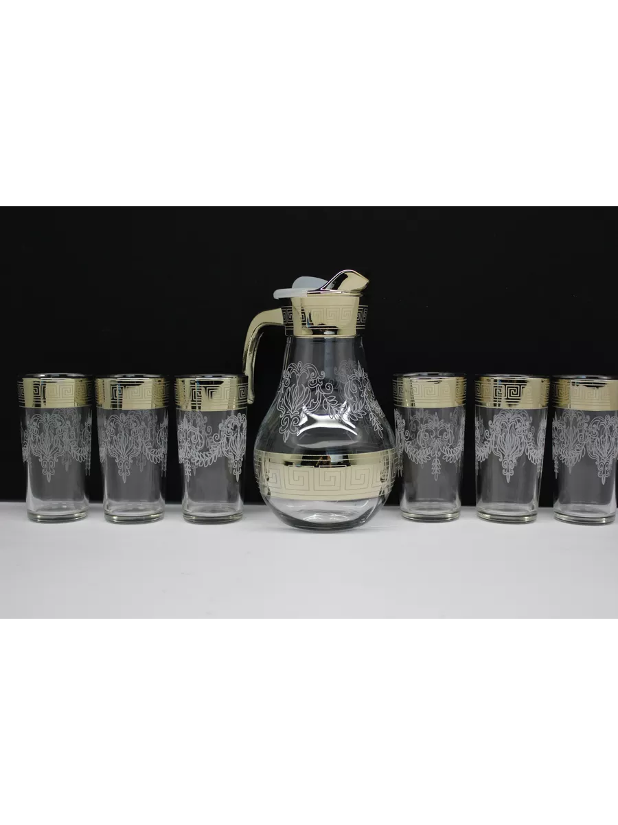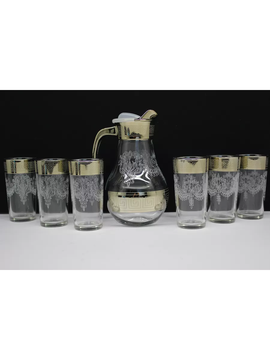 Кувшин всегда являлся незаменимыми атрибутом любой кухни.Набор представлен в комплекте из 7 предметов и состоит из кувшина объемом 1,1 литра и 6 стаканов вместительностью 230 мл каждый. Выполненные из качественного стекла, предметы набора удобны в использовании и просты в уходе. Очаровательный дизайн кувшина и стаканов, выполненный в стиле императорской роскоши, впечатляет своей изысканностью и придаст вашему столу особый шарм. В наборе присутствует все необходимое для приготовления и подачи любимых напитков для ваших близких, друзей или гостей.