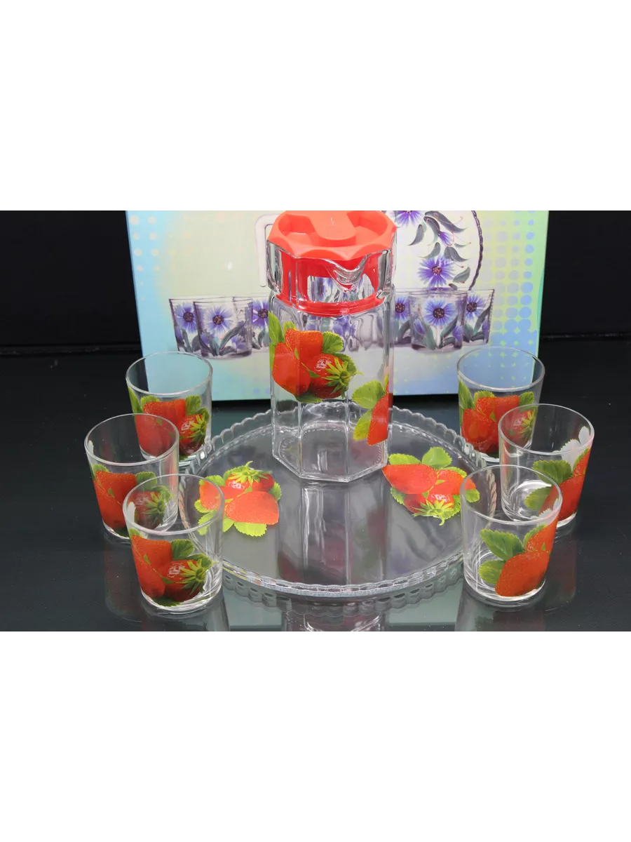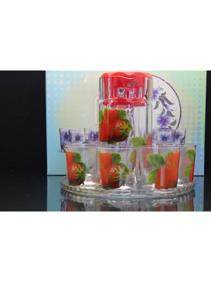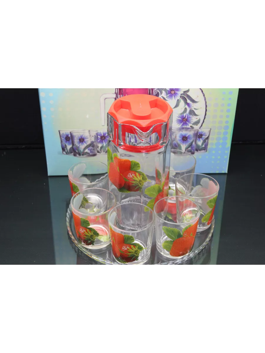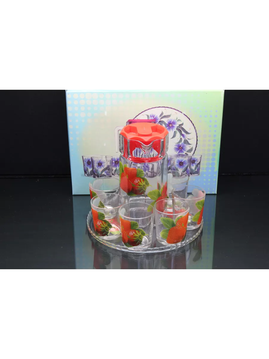 Кувшин для воды с набором стаканов и подноса привнесет нежных и романтичных красок в интерьер кухни и сервировку стола. Прямая форма кувшина и удобная ручка позволяют легко разливать любимый напиток по стаканам. Во время посиделок с друзьями, семейных ужинов или праздников такой набор точно придется кстати! Применение: кувшин и стаканы красиво дополнят сервировку стола и станут прекрасными сосудами для воды, компота и других напитков.
