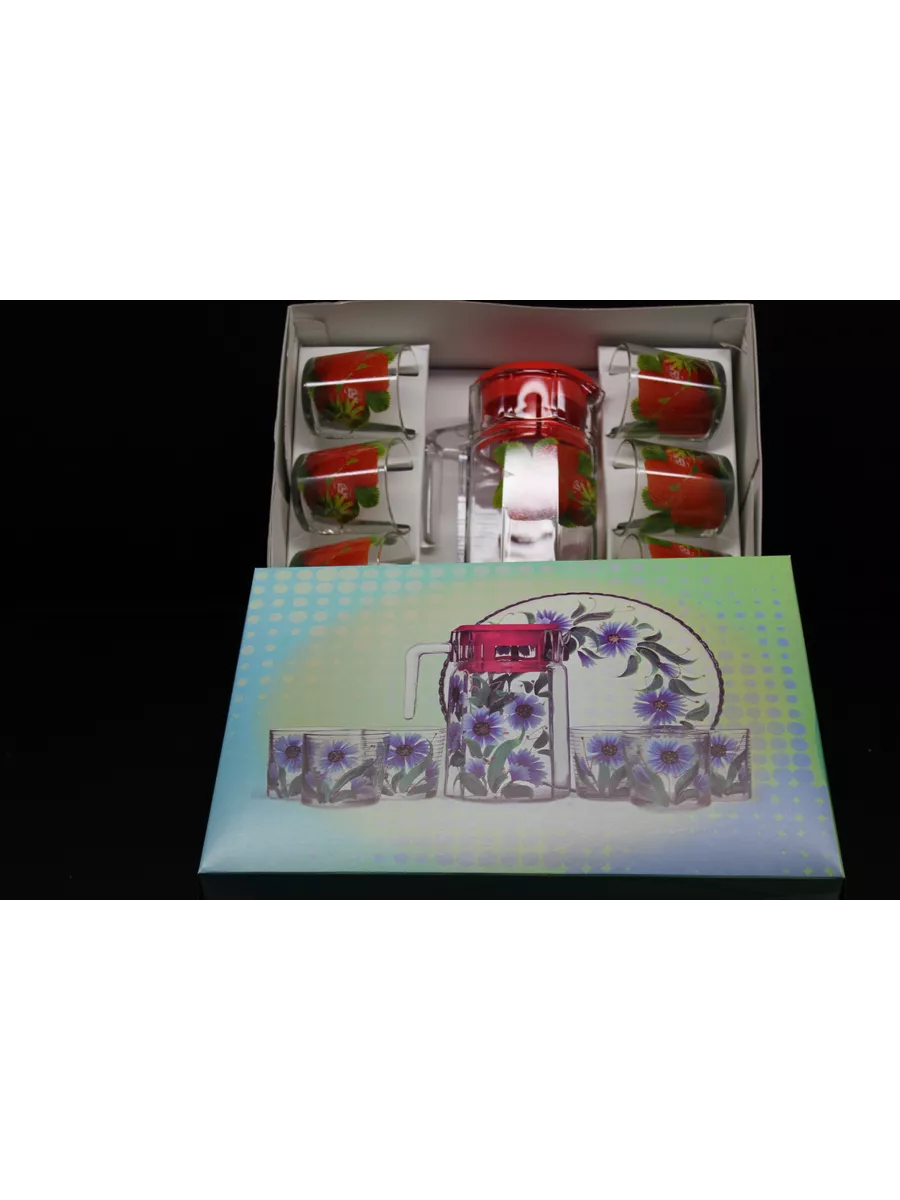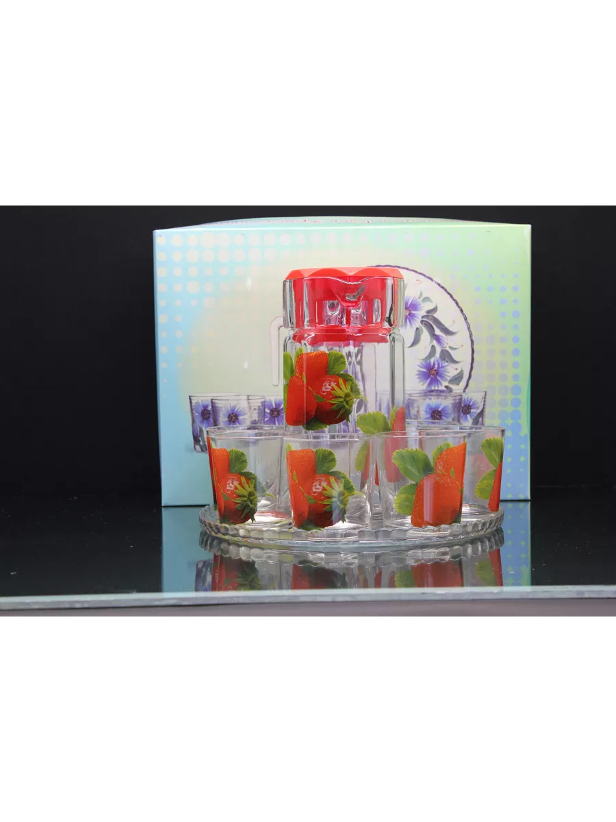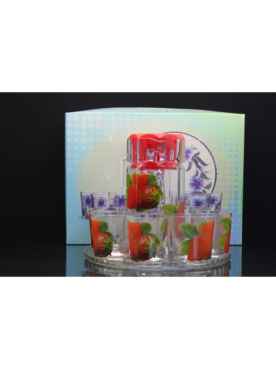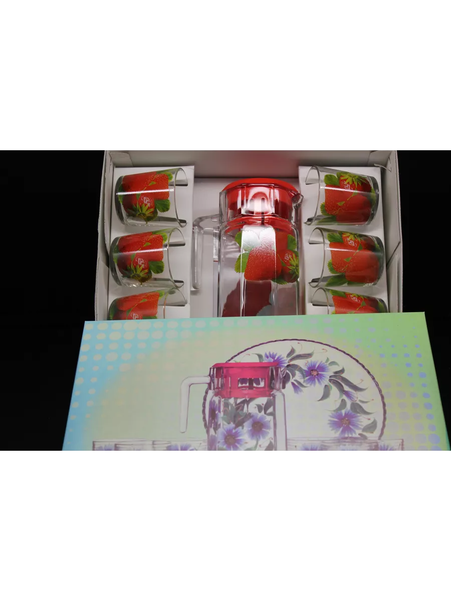 Кувшин для воды с набором стаканов и подноса привнесет нежных и романтичных красок в интерьер кухни и сервировку стола. Прямая форма кувшина и удобная ручка позволяют легко разливать любимый напиток по стаканам. Во время посиделок с друзьями, семейных ужинов или праздников такой набор точно придется кстати! Применение: кувшин и стаканы красиво дополнят сервировку стола и станут прекрасными сосудами для воды, компота и других напитков.