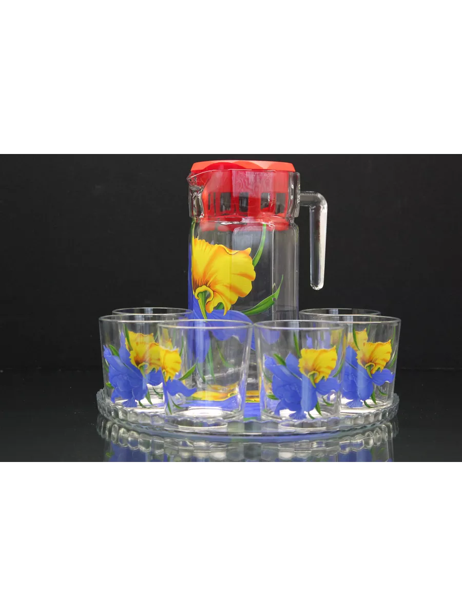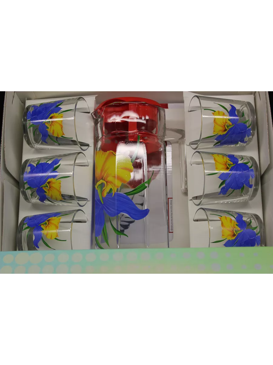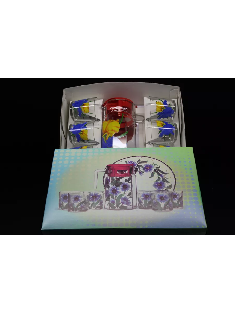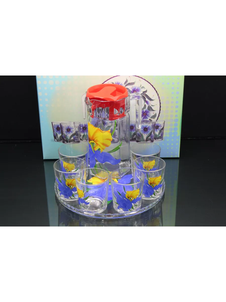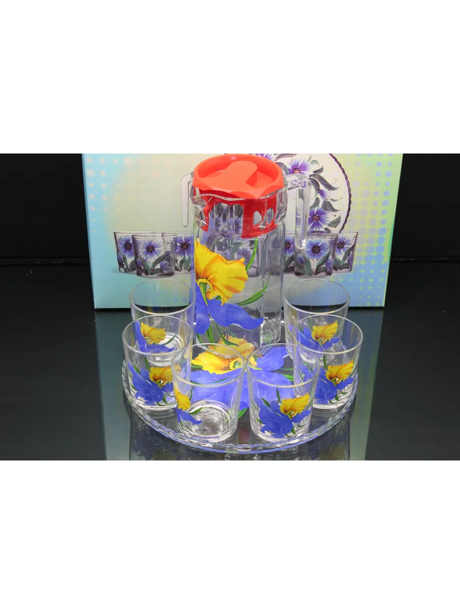 Кувшин для воды с набором стаканов и подноса привнесет нежных и романтичных красок в интерьер кухни и сервировку стола. Прямая форма кувшина и удобная ручка позволяют легко разливать любимый напиток по стаканам. Во время посиделок с друзьями, семейных ужинов или праздников такой набор точно придется кстати! Применение: кувшин и стаканы красиво дополнят сервировку стола и станут прекрасными сосудами для воды, компота и других напитков.