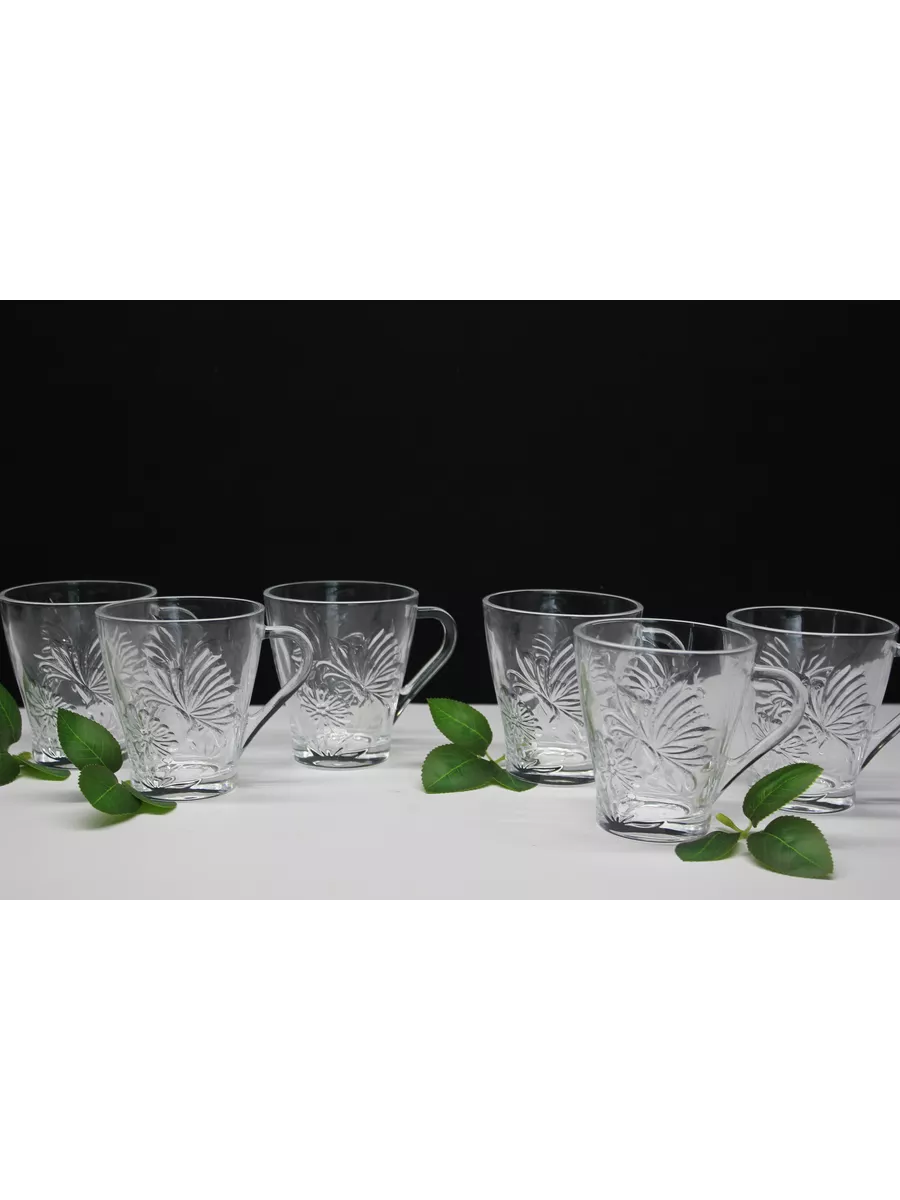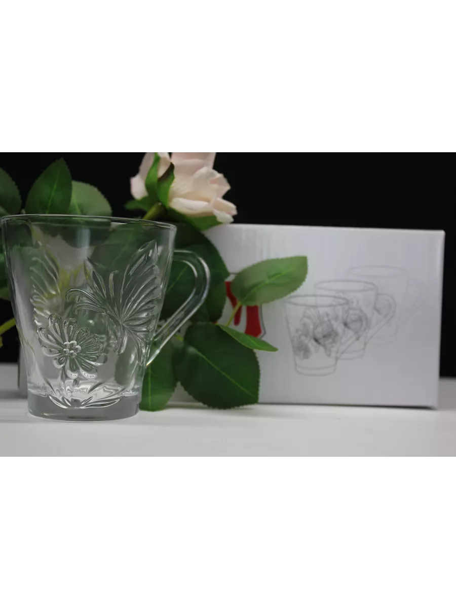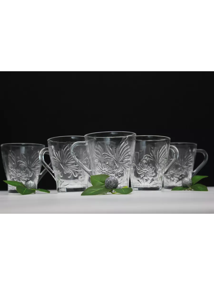На каждой кружке изображена бабочка. Этот рисунок придает кружкам изысканный и роскошный вид, который будет выглядеть отлично на любом столе. Прозрачное стекло создает эффектный контраст с рисунком и придает кружкам оригинальный и стильный вид.
