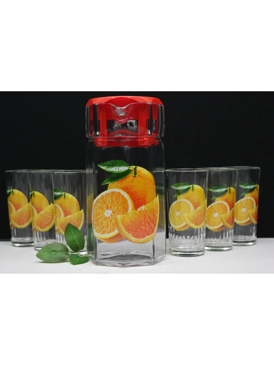 Набор "Апельсиновый Сад": Кувшин 1250 мл и 6 Стаканов 250 мл в Подарочной Упаковке