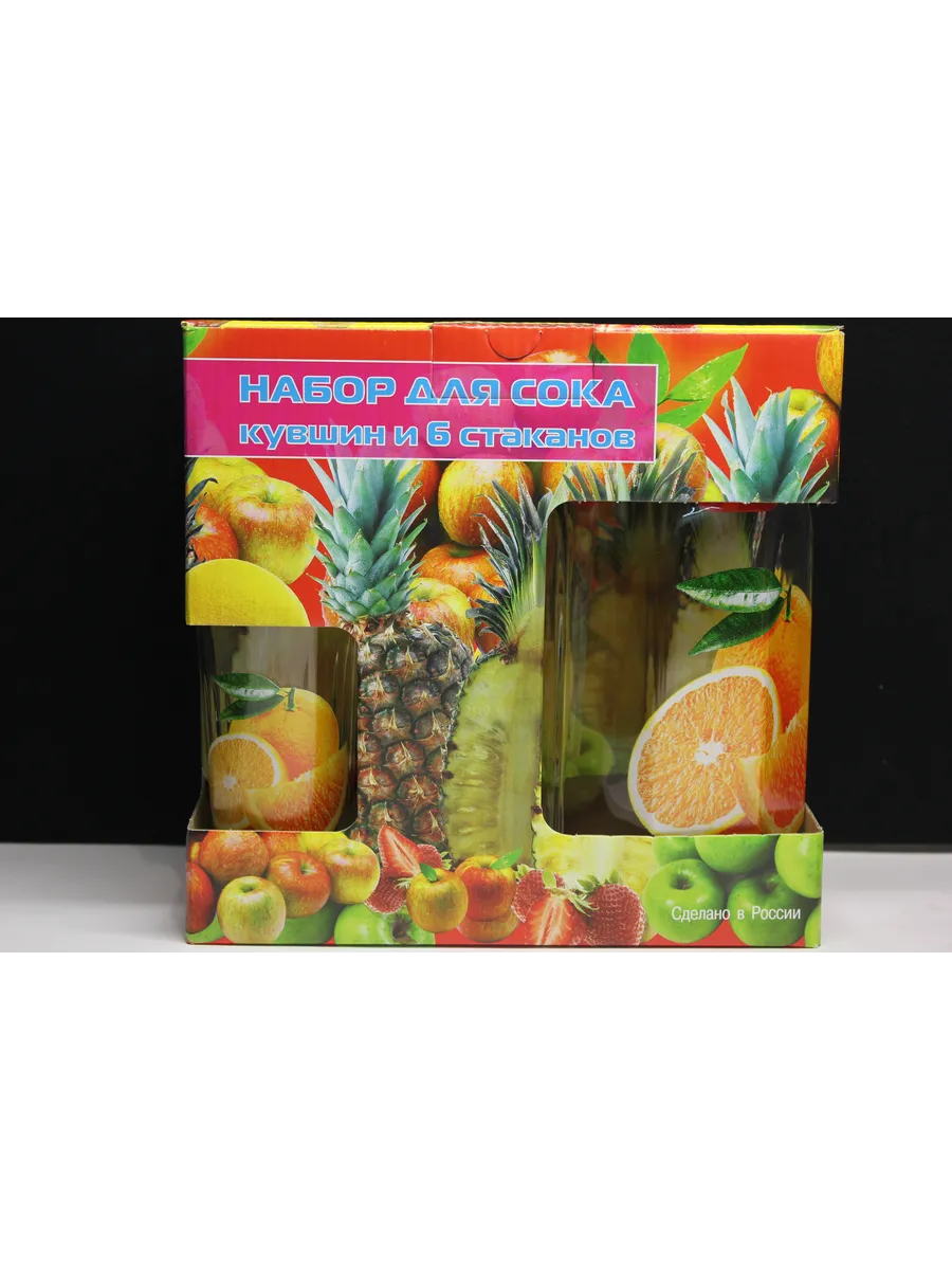 Функциональность: Набор включает кувшин и 6 стаканов, что позволяет аккуратно и удобно хранить и использовать посуду.