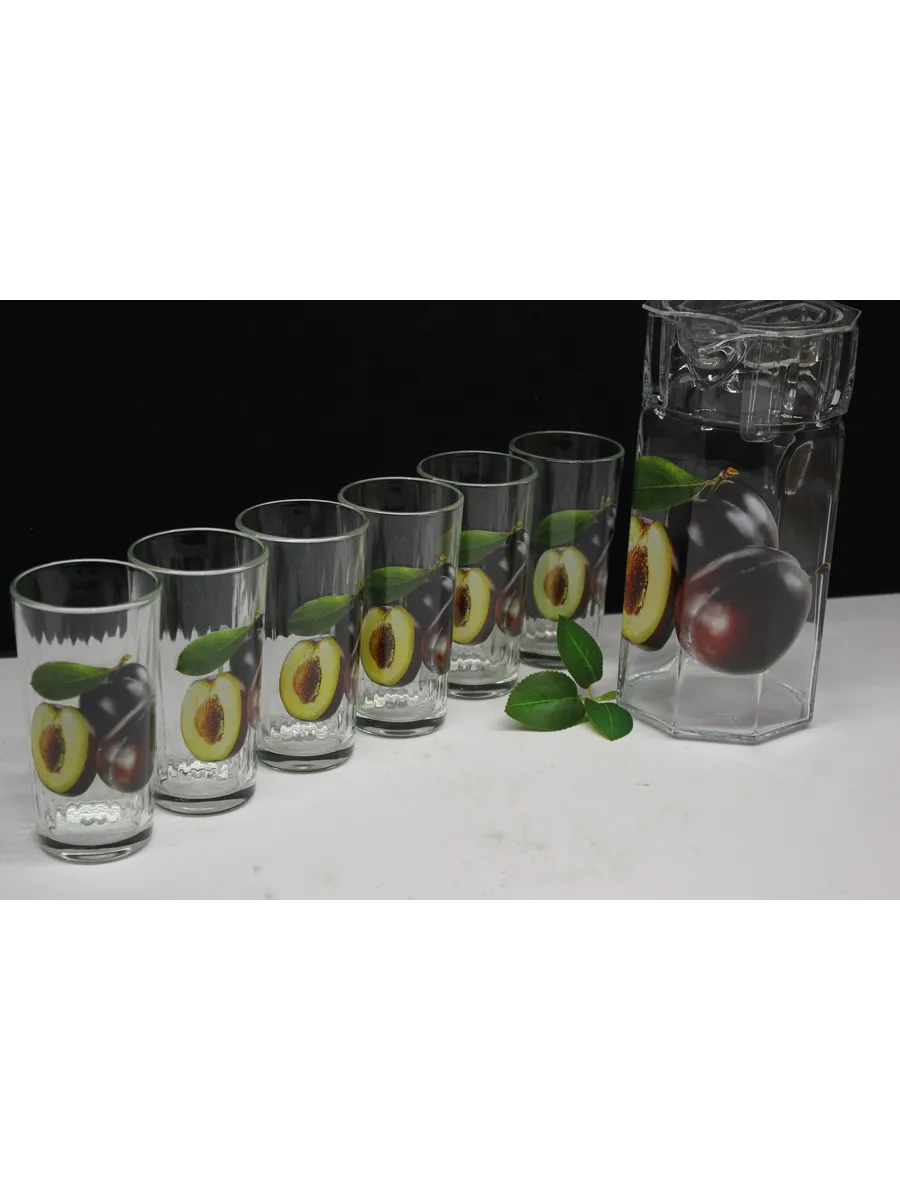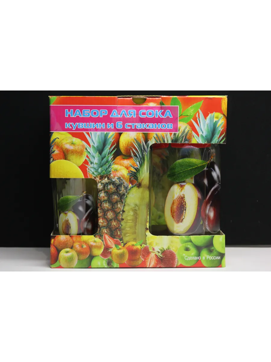 Функциональность: Набор включает кувшин и 6 стаканов, что позволяет аккуратно и удобно хранить и использовать посуду.