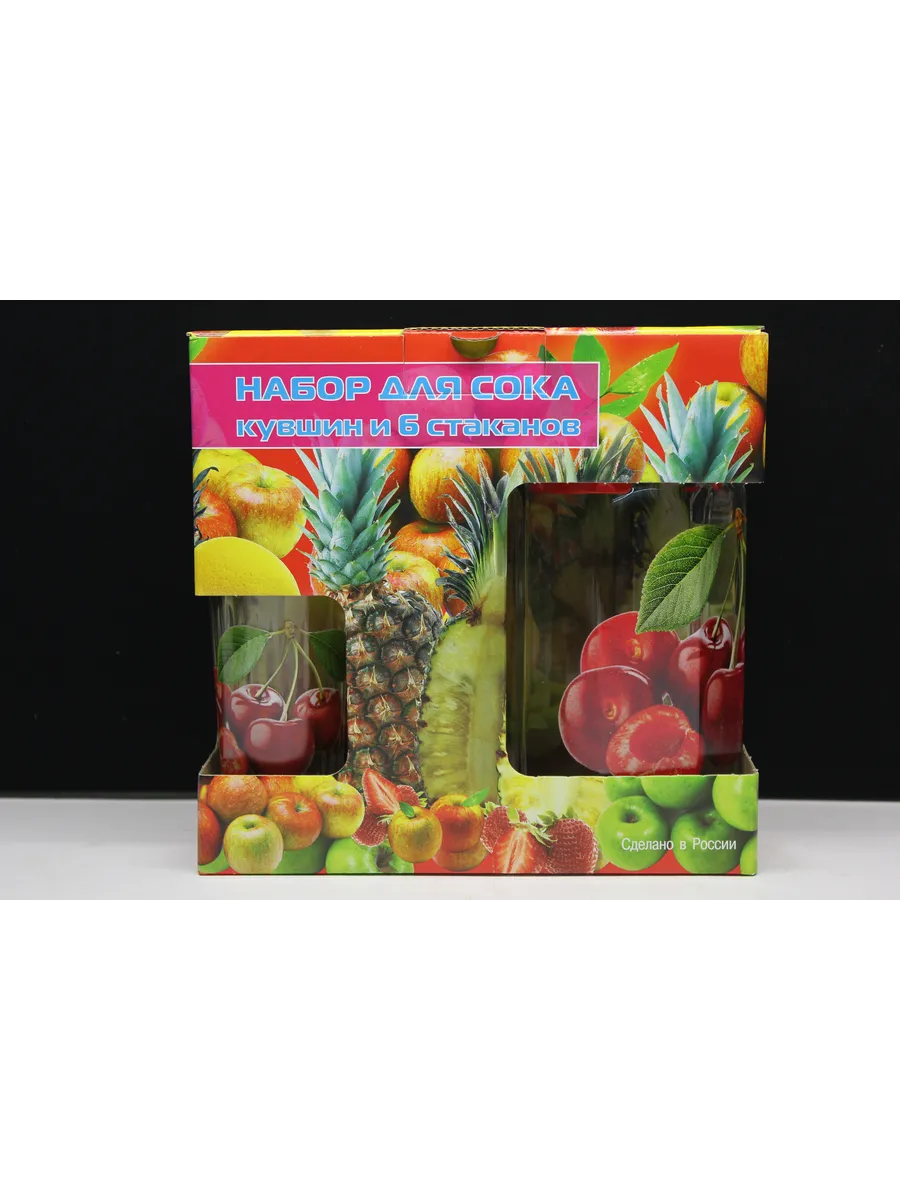Функциональность: Набор включает кувшин и 6 стаканов, что позволяет аккуратно и удобно хранить и использовать посуду.