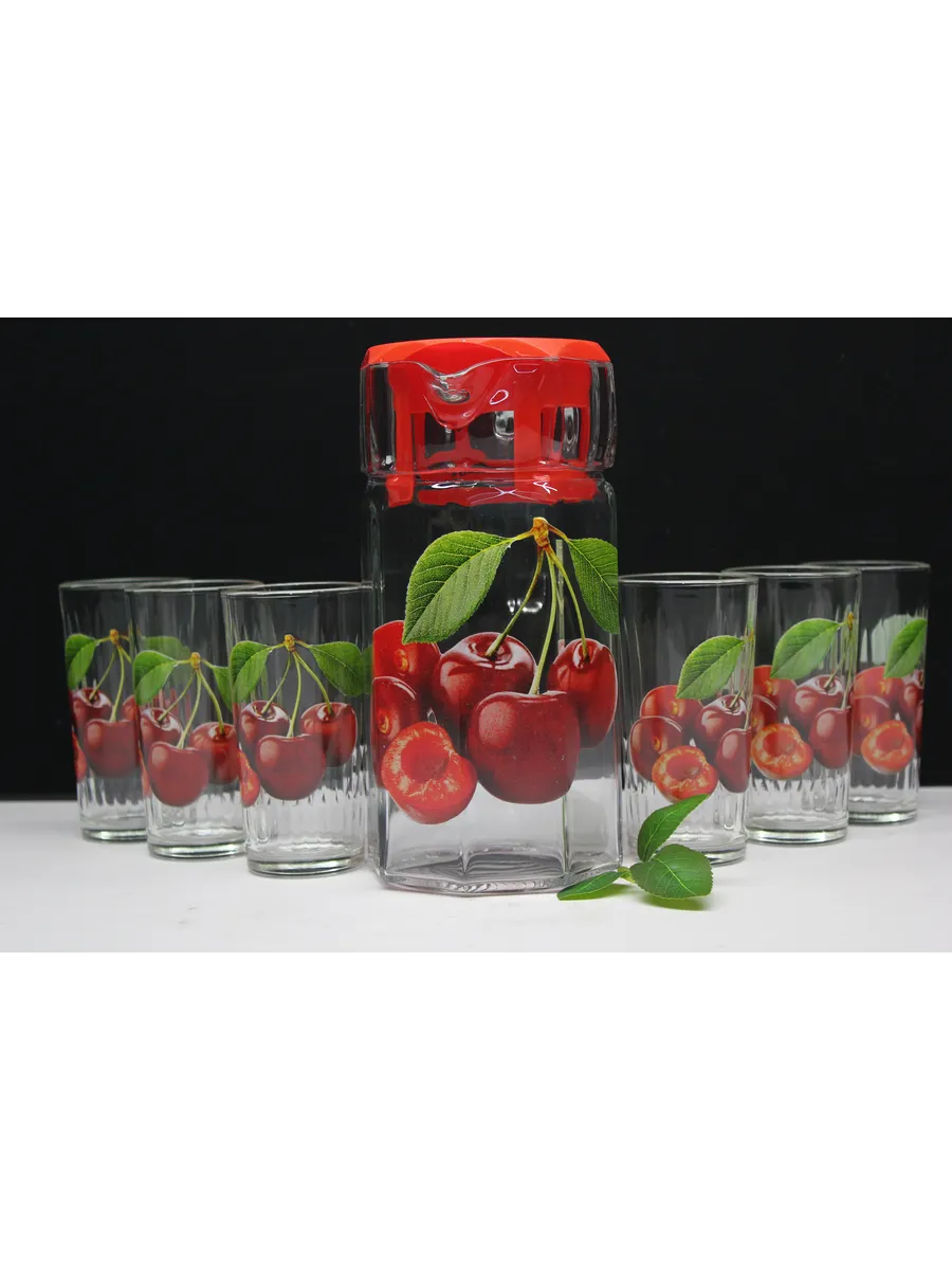 Набор "Вишневый Сад": Кувшин 1250 мл и 6 Стаканов 250 мл в Подарочной Упаковке