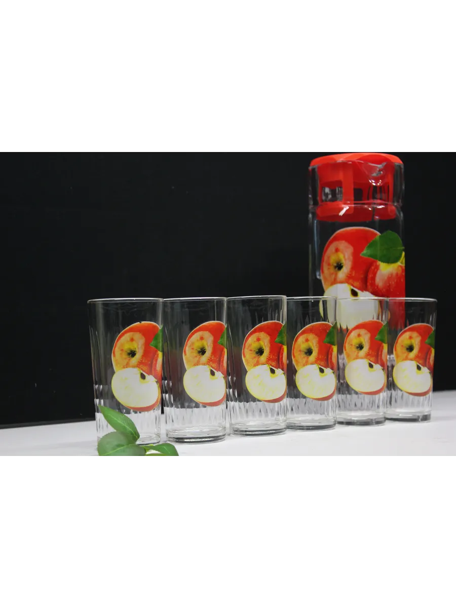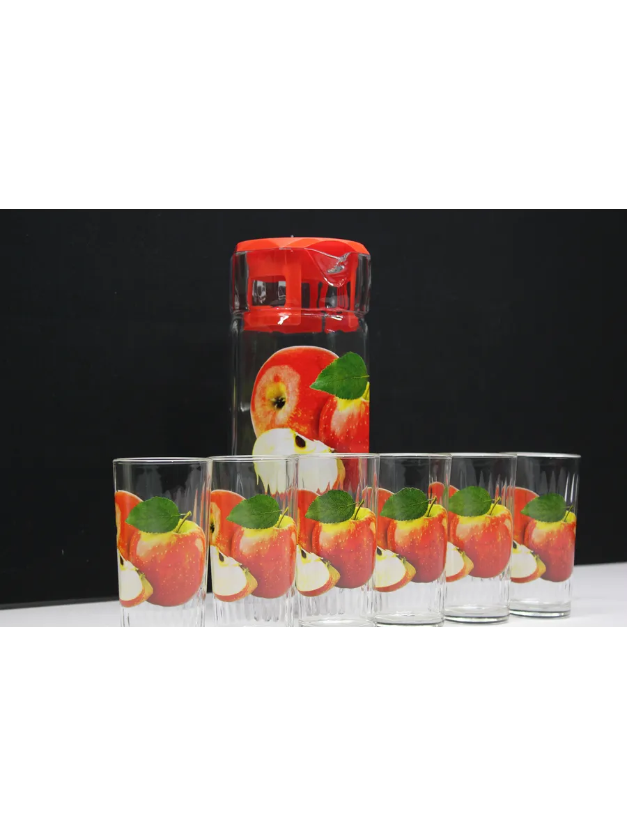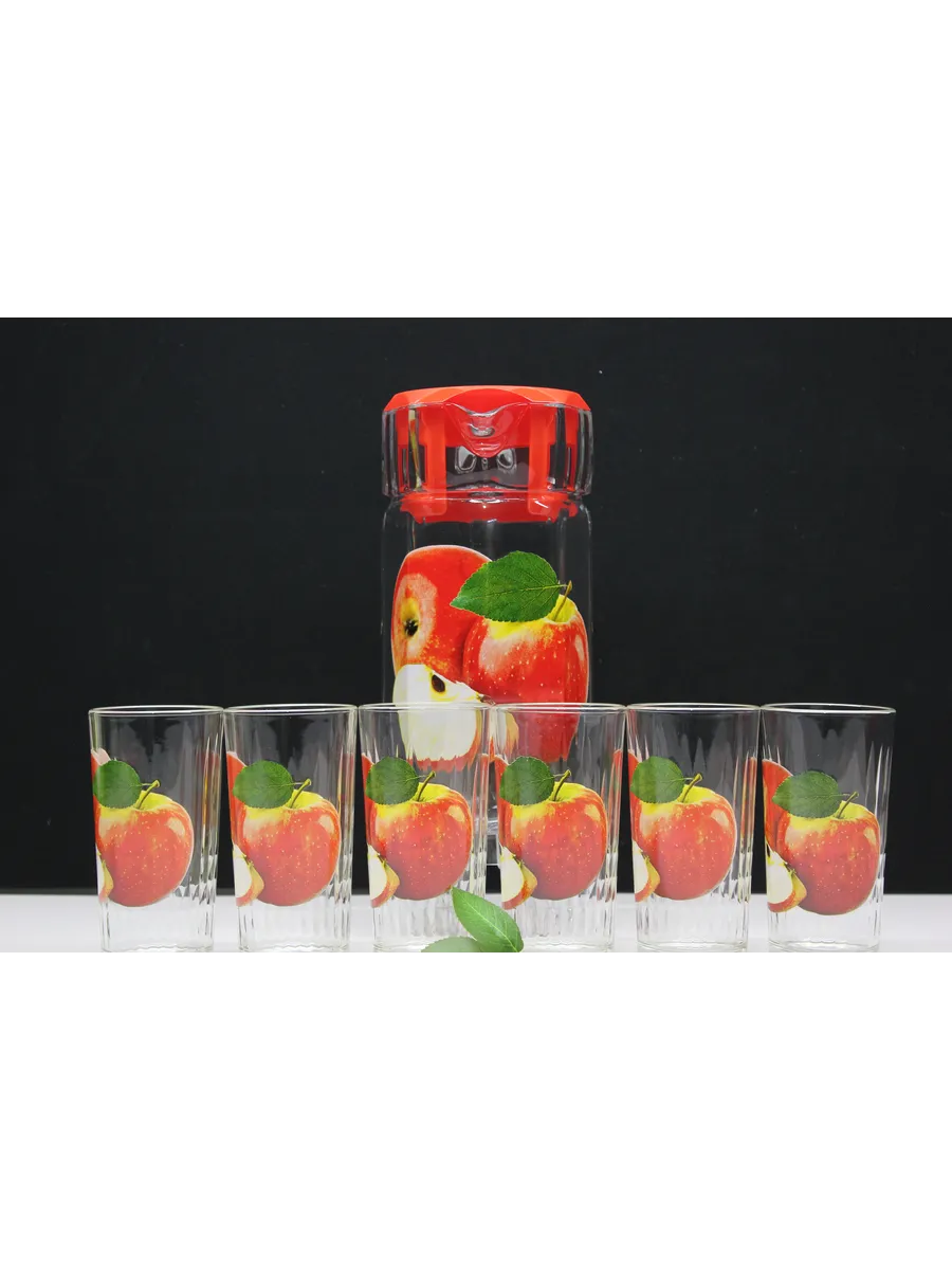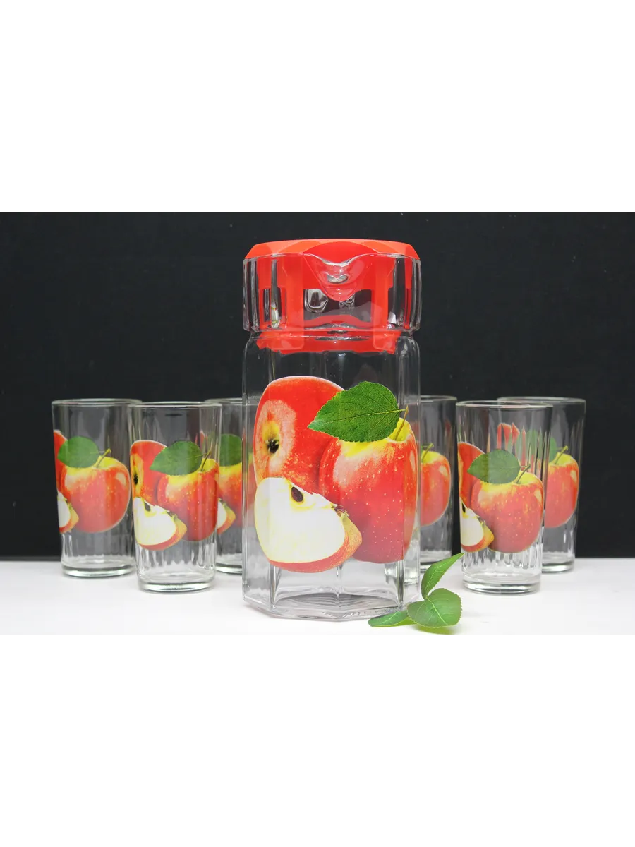 Набор "Красное Яблоко": Кувшин 1250 мл и 6 Стаканов 250 мл в Подарочной Упаковке