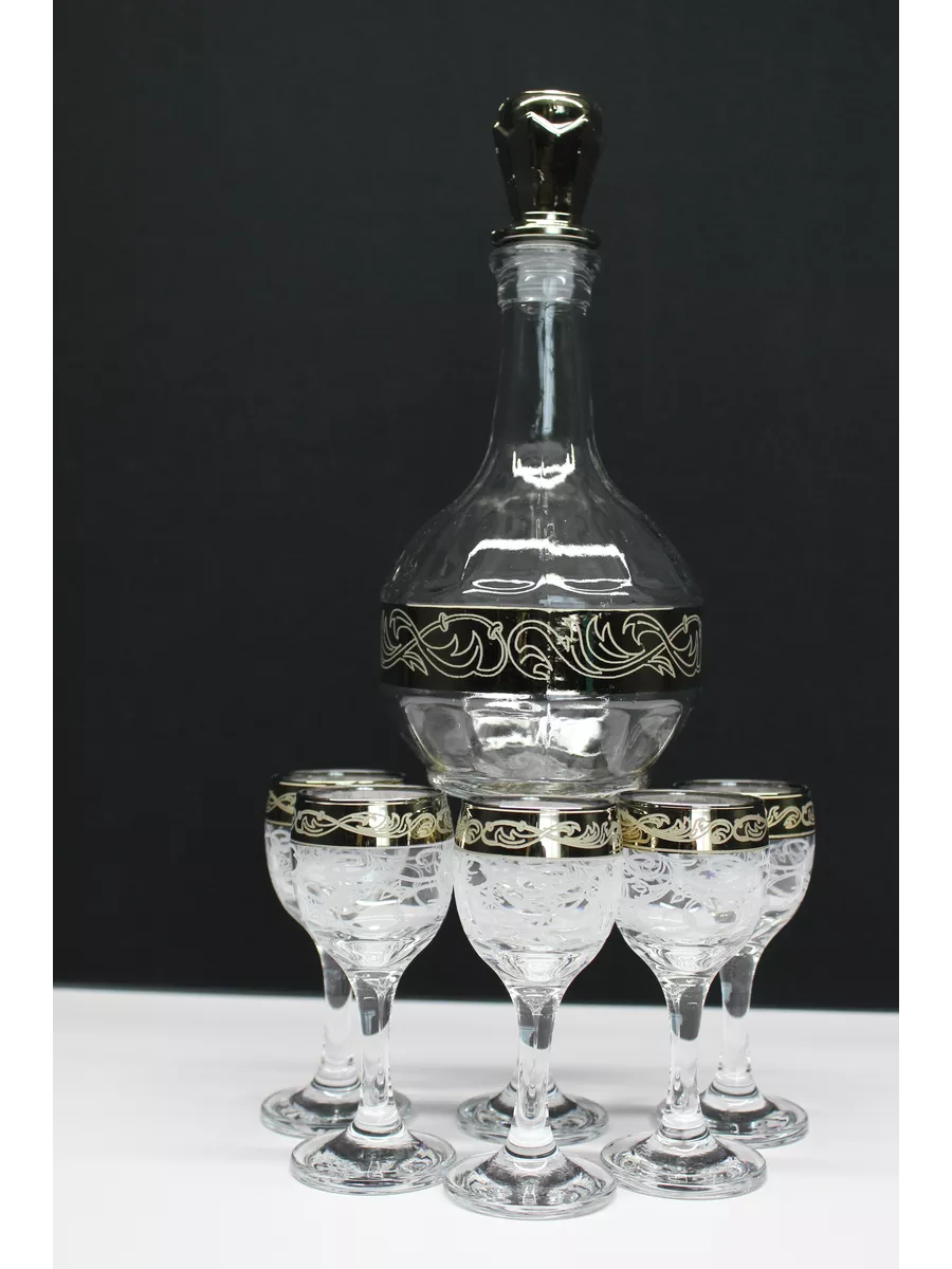 Набор посуды подарочный с алмазной гравировкой. Надежная пробка с уплотнителем герметично прикрывает горлышко штофа, сохраняя насыщенный и яркий аромат напитка внутри. Набор рюмок под водку и графин для водки стеклянный достойно дополнит даже самый обширный ассортимент посуды в вашем доме. Рюмки для водки набор 6 шт по 60 мл. выполненных из декорированного высококачественного стекла. Изящные изделия прекрасно дополнят сервировку и станут эффектным аксессуаром в вашем баре. Набор рюмок 6 штук выполнены из прочного стекла с применением новейших технологий, благодаря чему набор стопок 6 шт долго служат и не теряют своего потрясающего внешнего вида в течение всего срока эксплуатации. Красивые рюмки для ликера имеют изящную форму и ослепительный блеск. Новогодние рюмки набор прозрачные идеально подойдут наливки. Набор для крепких напитков для сервировки стола на праздник. Набор рюмок с гравировкой - это отличный выбор для подарка. Подарочные мужские рюмки для коньяка изготовлены из специального материала.