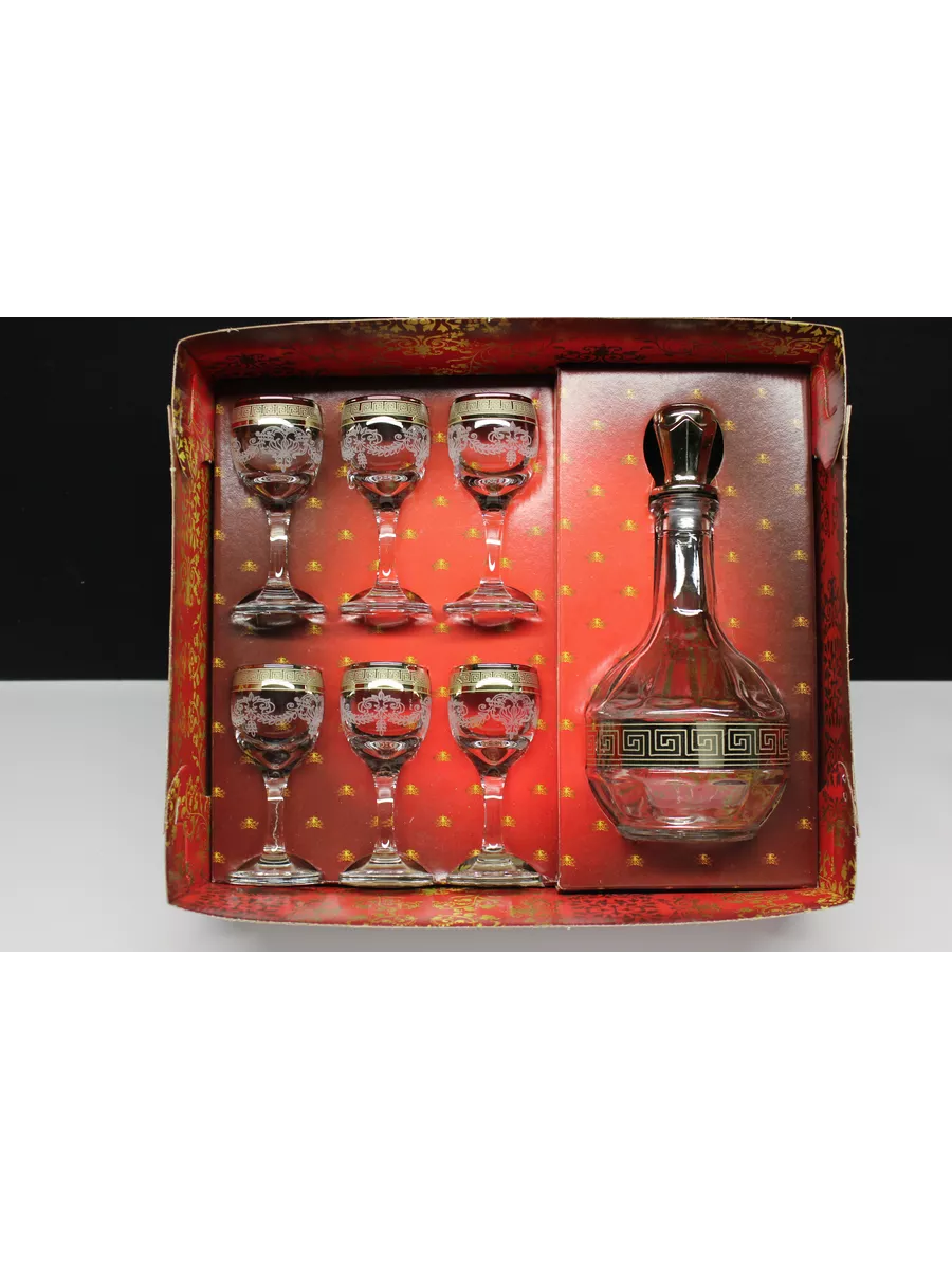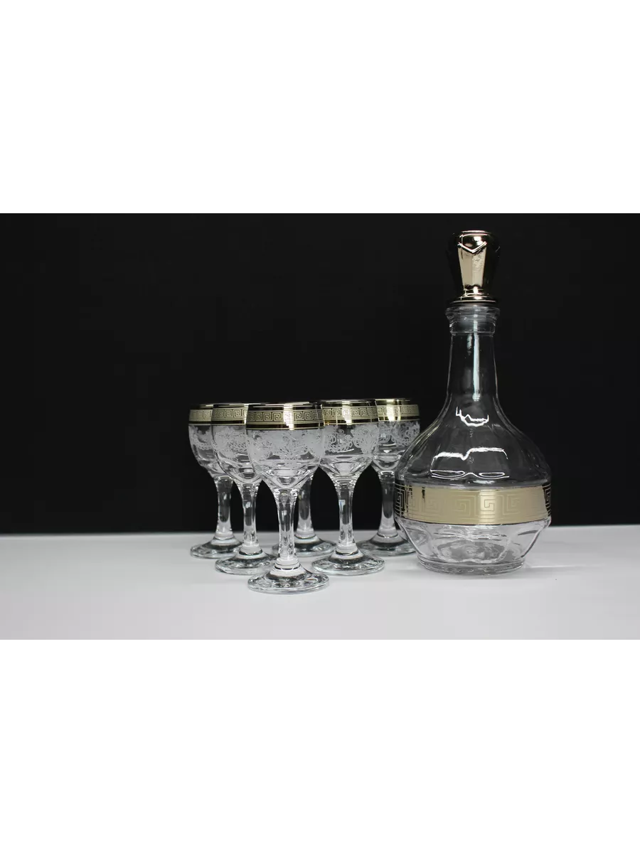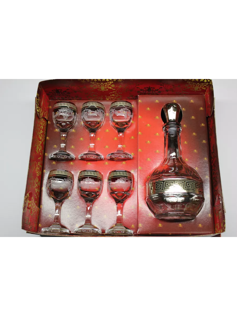 Набор посуды подарочный с алмазной гравировкой. Надежная пробка с уплотнителем герметично прикрывает горлышко штофа, сохраняя насыщенный и яркий аромат напитка внутри. Набор рюмок под водку и графин для водки стеклянный достойно дополнит даже самый обширный ассортимент посуды в вашем доме. Рюмки для водки набор 6 шт по 60 мл. выполненных из декорированного высококачественного стекла. Изящные изделия прекрасно дополнят сервировку и станут эффектным аксессуаром в вашем баре. Набор рюмок 6 штук выполнены из прочного стекла с применением новейших технологий, благодаря чему набор стопок 6 шт долго служат и не теряют своего потрясающего внешнего вида в течение всего срока эксплуатации. Красивые рюмки для ликера имеют изящную форму и ослепительный блеск. Новогодние рюмки набор прозрачные идеально подойдут наливки. Набор для крепких напитков для сервировки стола на праздник. Набор рюмок с гравировкой - это отличный выбор для подарка. Подарочные мужские рюмки для коньяка изготовлены из специального материала.