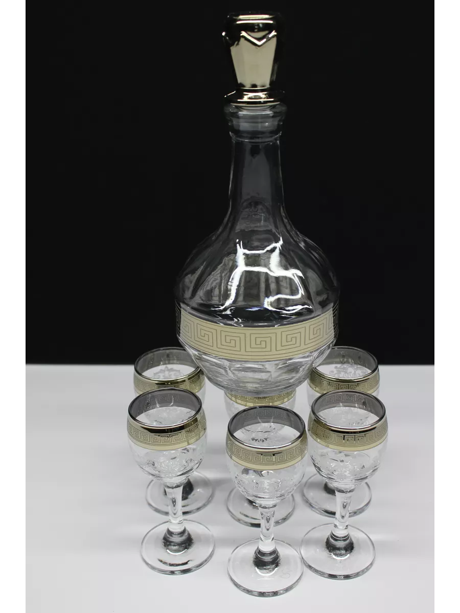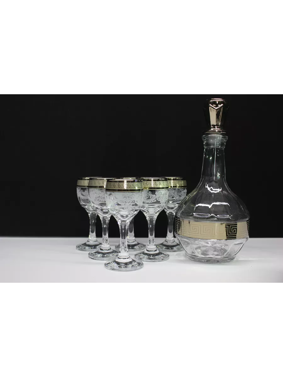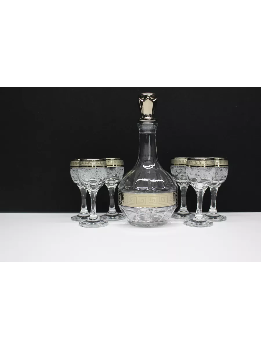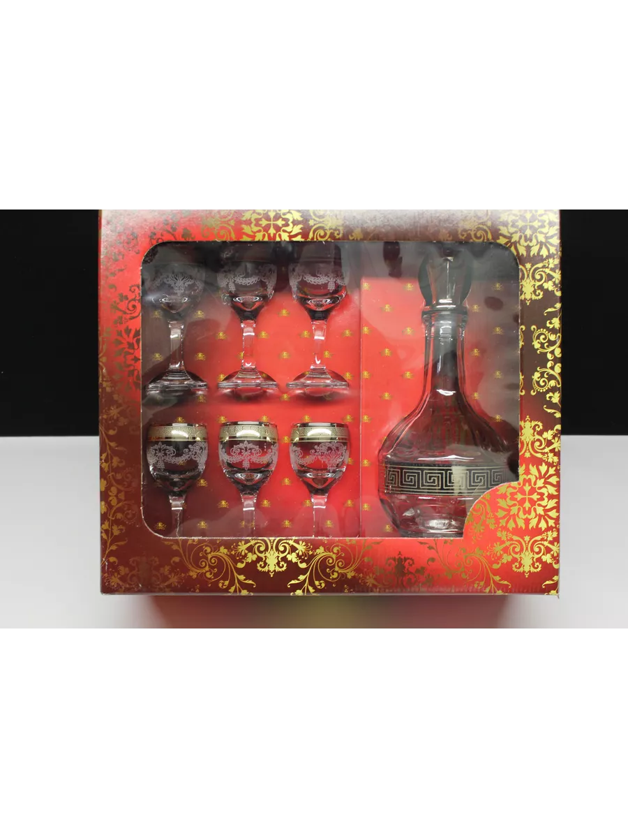 Набор посуды подарочный с алмазной гравировкой. Надежная пробка с уплотнителем герметично прикрывает горлышко штофа, сохраняя насыщенный и яркий аромат напитка внутри. Набор рюмок под водку и графин для водки стеклянный достойно дополнит даже самый обширный ассортимент посуды в вашем доме. Рюмки для водки набор 6 шт по 60 мл. выполненных из декорированного высококачественного стекла. Изящные изделия прекрасно дополнят сервировку и станут эффектным аксессуаром в вашем баре. Набор рюмок 6 штук выполнены из прочного стекла с применением новейших технологий, благодаря чему набор стопок 6 шт долго служат и не теряют своего потрясающего внешнего вида в течение всего срока эксплуатации. Красивые рюмки для ликера имеют изящную форму и ослепительный блеск. Новогодние рюмки набор прозрачные идеально подойдут наливки. Набор для крепких напитков для сервировки стола на праздник. Набор рюмок с гравировкой - это отличный выбор для подарка. Подарочные мужские рюмки для коньяка изготовлены из специального материала.