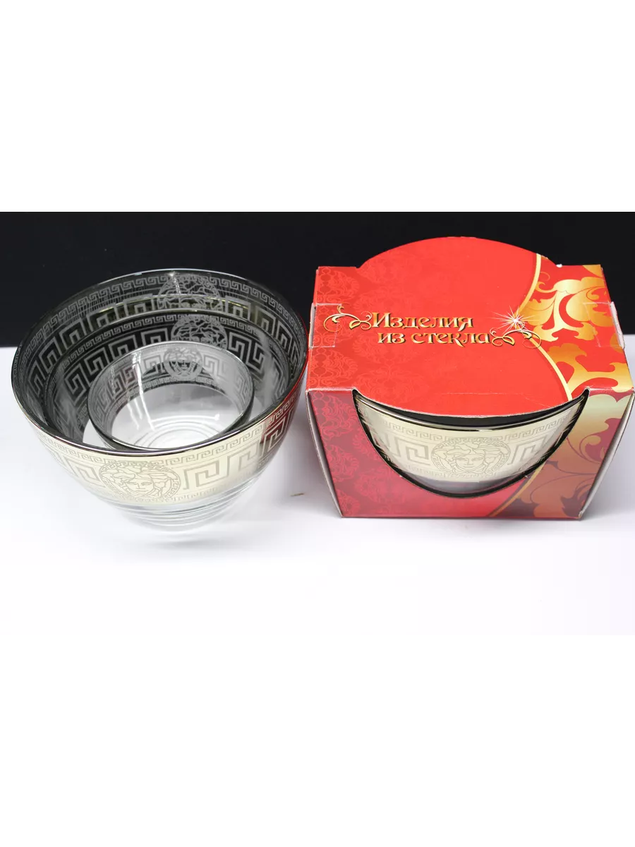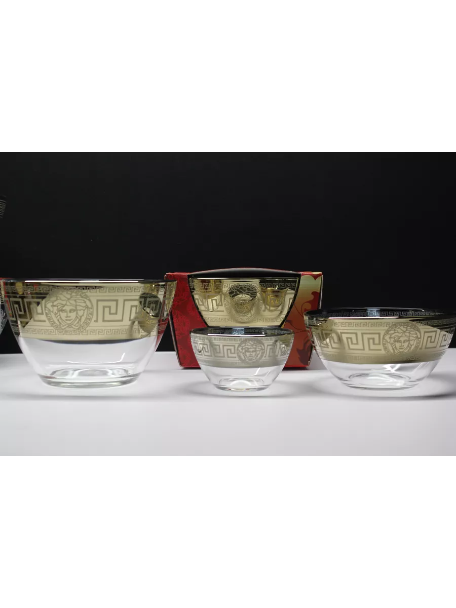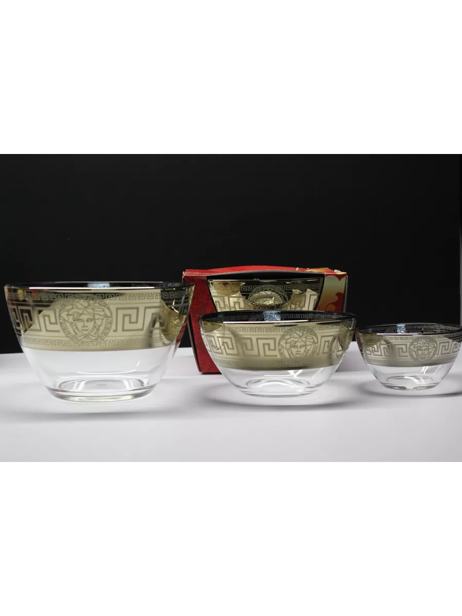 Невозможно представить без салата не только праздничный стол, но и сервировку на каждый день. Круглые стеклянные салатники изготовлены из высококачественного стекла, декорированного узором. Классическая форма и изысканный декор, наполненный изяществом, подчеркивают особую индивидуальность посуды. Прекрасно подходят для подачи на стол салатов, сыра, фруктов, овощей и различных блюд. Посуду можно использовать не только для сервировки, но и как элемент украшения интерьера. Придадут столу нарядный вид и поднимут настроение вам и вашим гостям. В набор «Версаче»входит: салатники 3 штуки , большой 1700мл, средний 600мл и маленький 250мл.