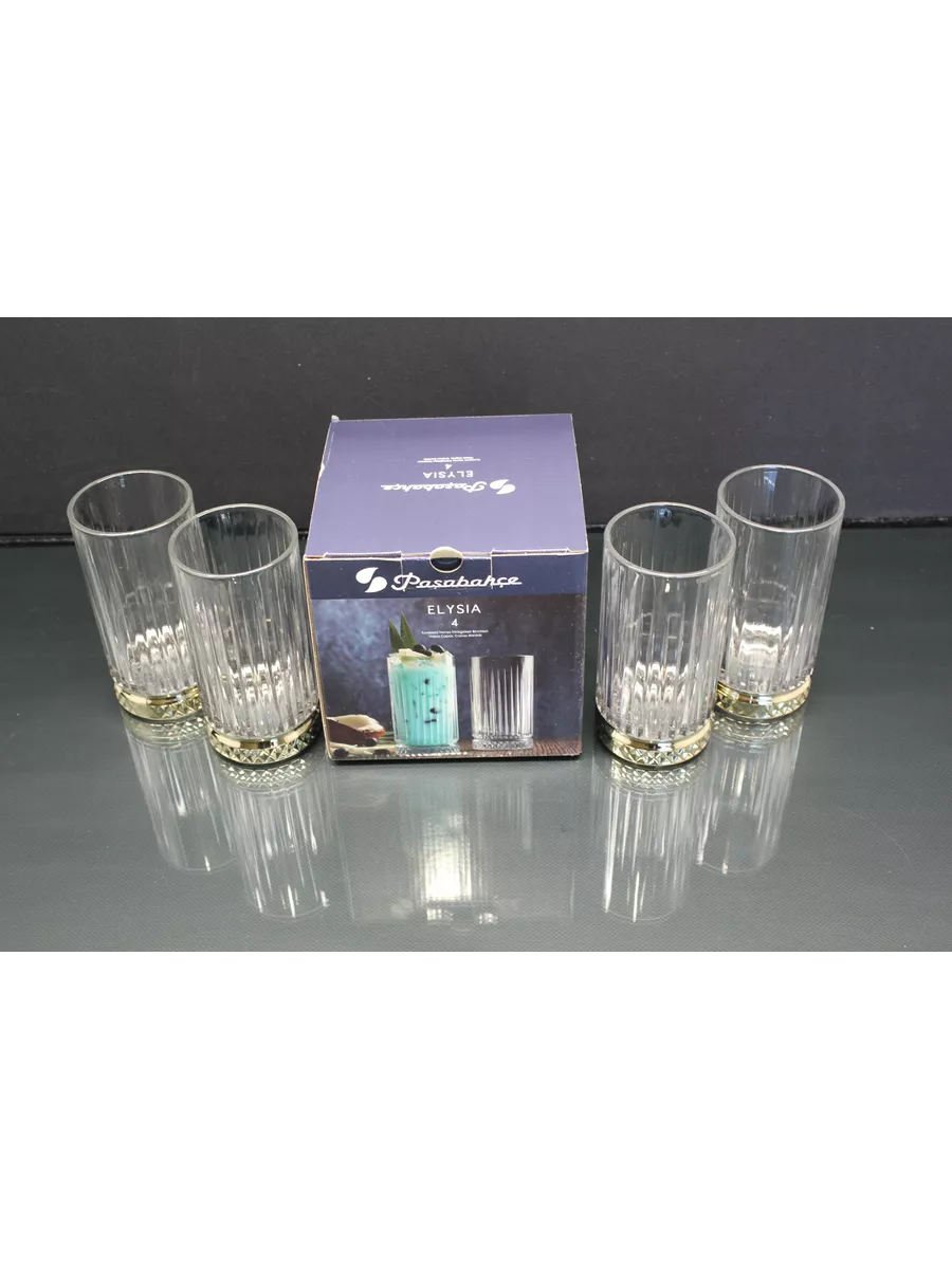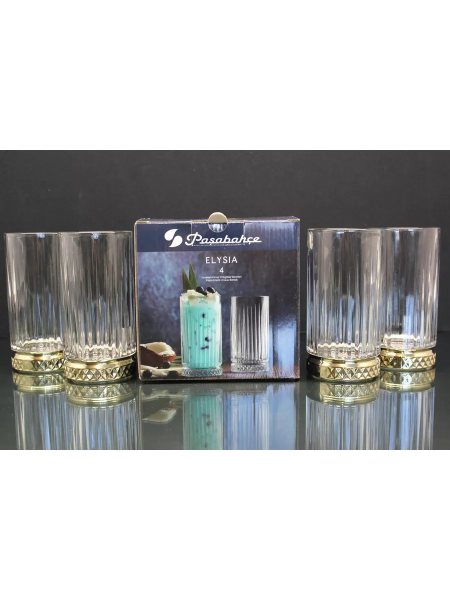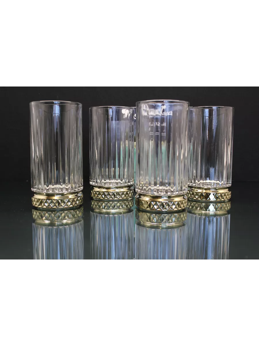 Стаканы на праздник и на каждый день. Являются незаменимым элементом посуды как дома так и в кафе и столовых.Набор стаканов Элизия Золотом серии для сервировки праздничного стола или ежедневного использования. Предназначены для подачи коктейлей, также подойдут для различных алкогольных и безалкогольных напитков на любой вкус. Изготовлены из качественного натрий-кальций-силикатного стекла, устойчивы к царапинам, можно мыть в посудомоечной машине. Объем 435 мл, 4 штуки в наборе.