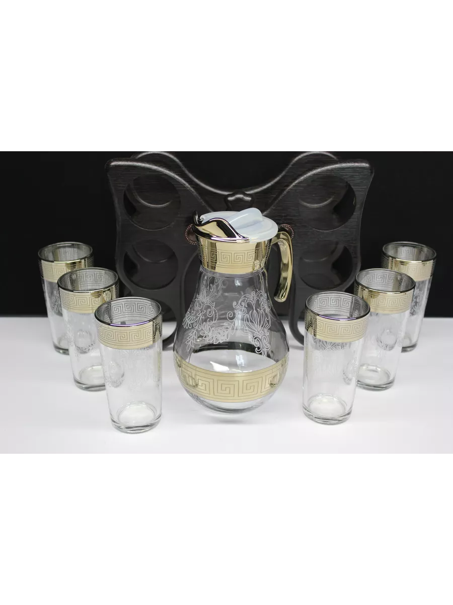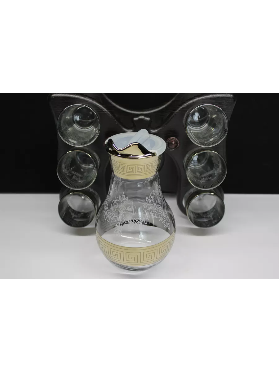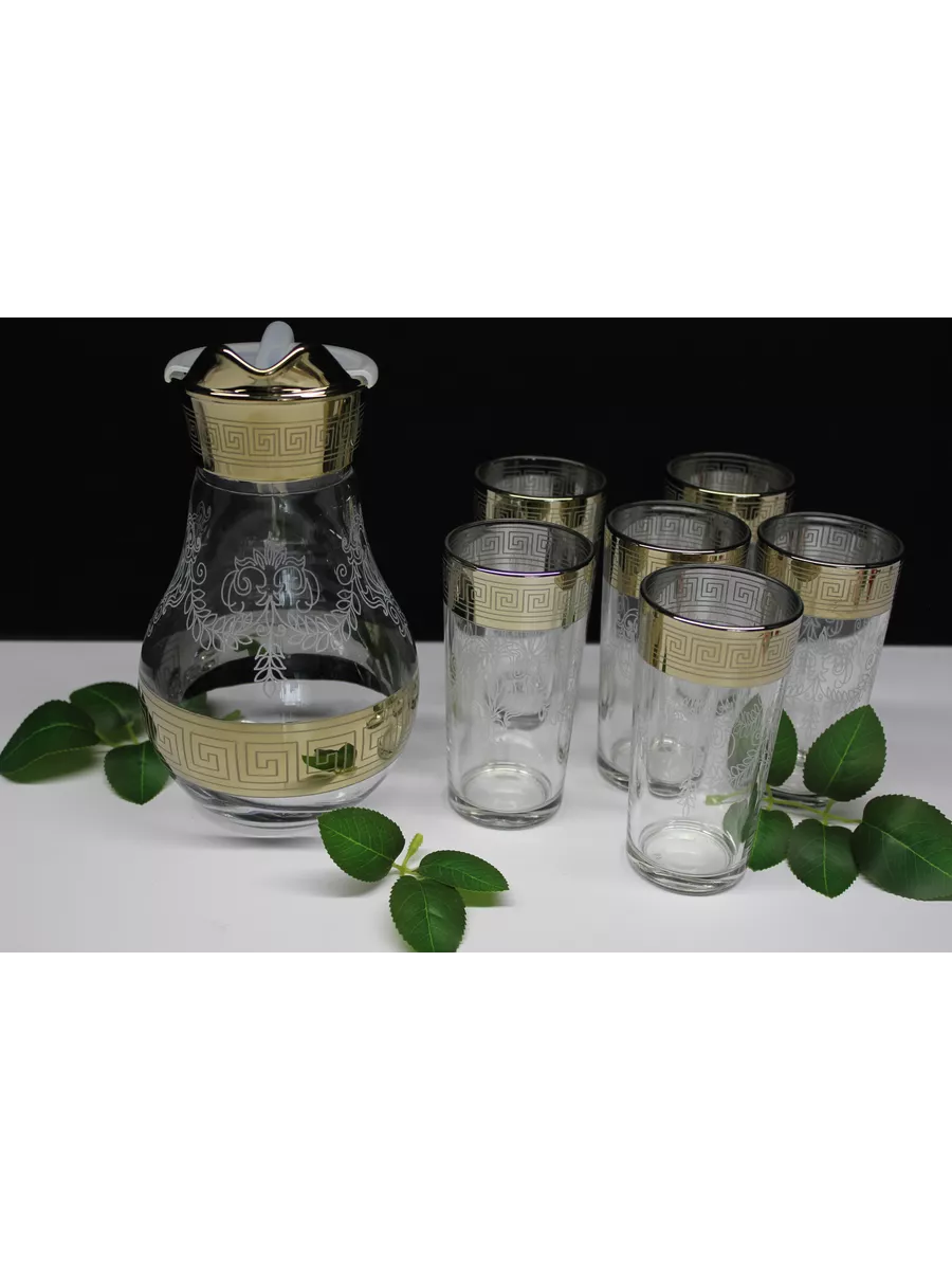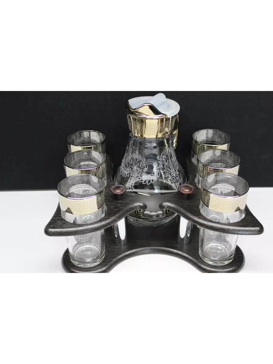 Кувшин для воды 1000 мл с крышкой и стеклянные стаканы 6 шт на барной стойке коллекции"Барокко" – отличный набор для дома, выполнен из прочного качественного стекла с алмазной гравировкой. Он подойдет как к повседневному, так и торжественному столу. Благодаря своей универсальности декоративная посуда станет идеальным выбором для сервировки стола на любом празднике. Кувшин стеклянный со стаканами - это качественная посуда для сервировки, предназначен для любых напитков: воды и сока, лимонада и компота, молока и коктейлей. Кувшин и стаканы на барной стойке - это комплект, необходимый каждой семье, прослужат вам долго и обеспечат свой первоначальный вид. Набор посуды для сервировки в праздничной подарочной упаковке – это полезный красивый подарок на любой праздник. Приобретая его, вы не только получаете качественный товар, но и стильный элемент декора для вашего дома. И если вы не можете определиться с новогодним подарком или подарком на день рождения и другие праздники, то универсальный решением будет наш подарочный набор кувшин и стаканы на баре.