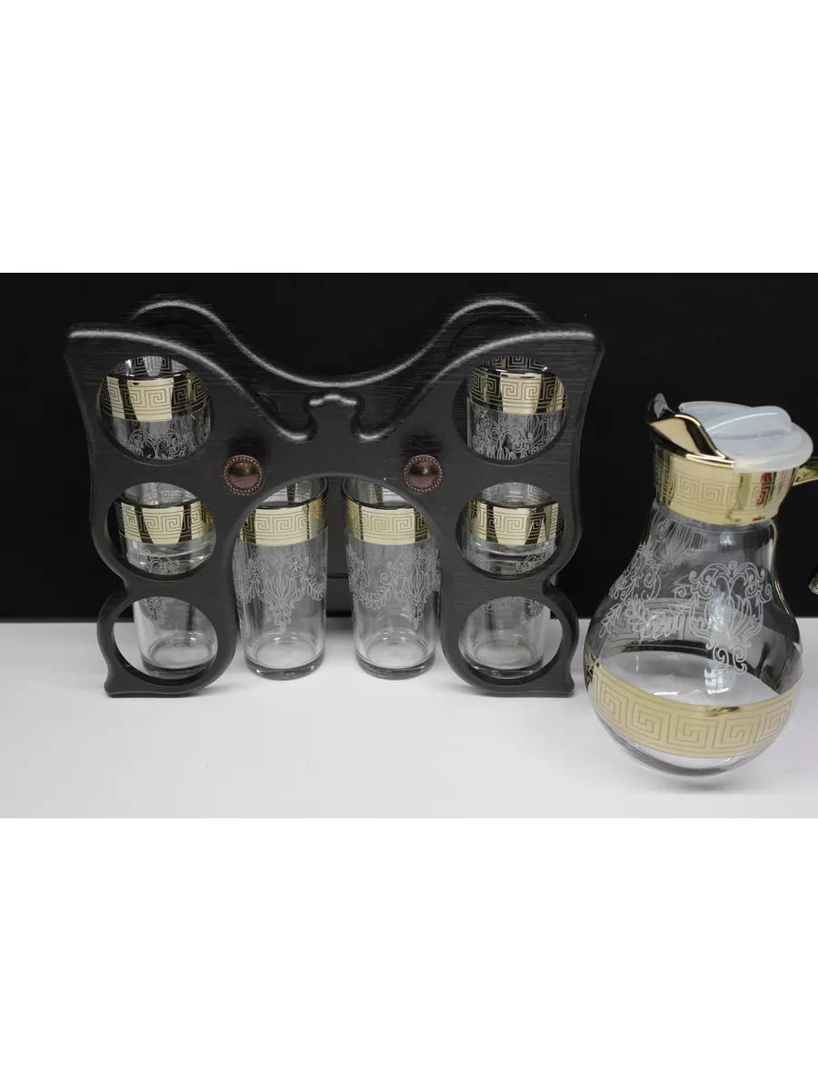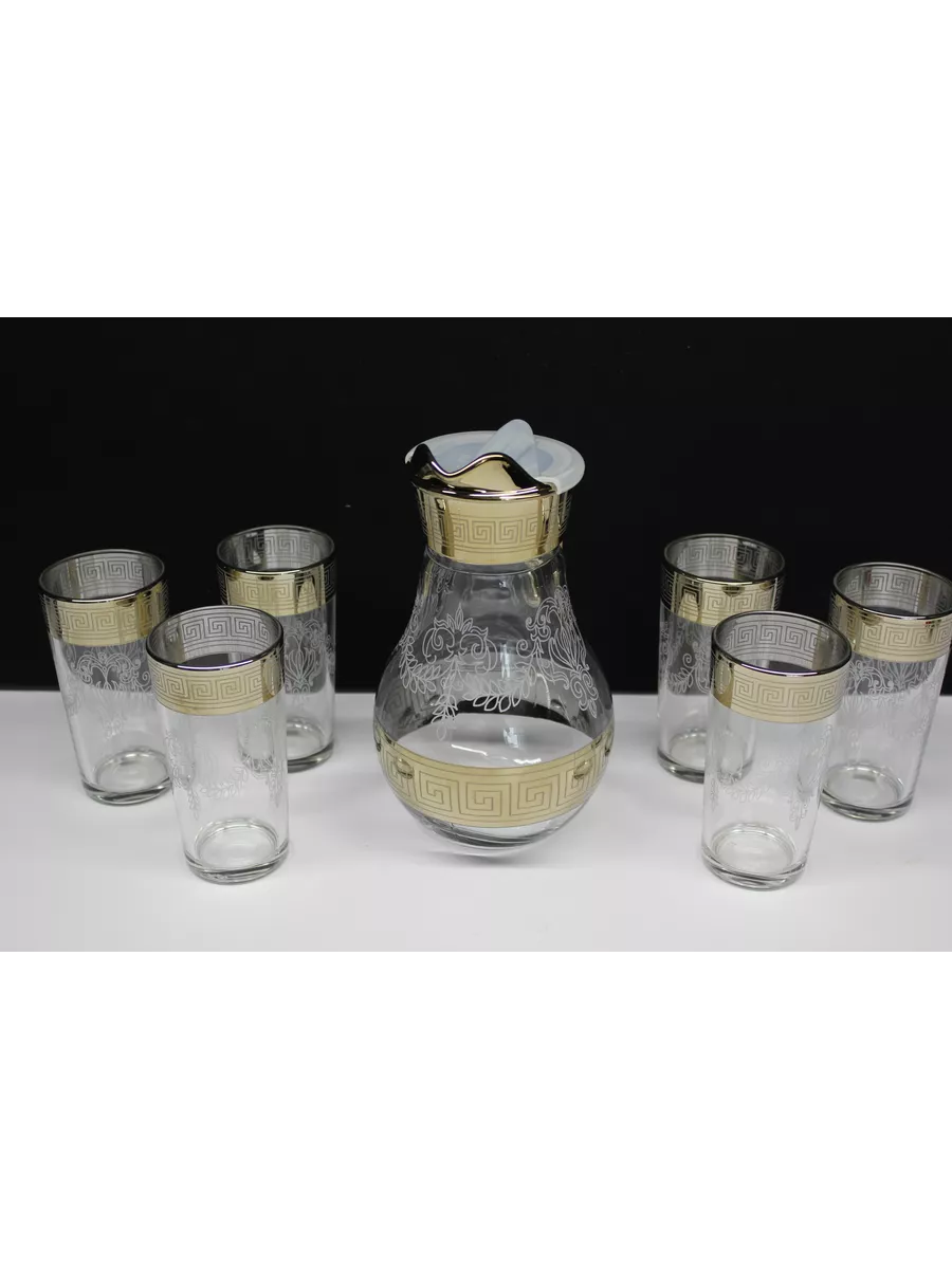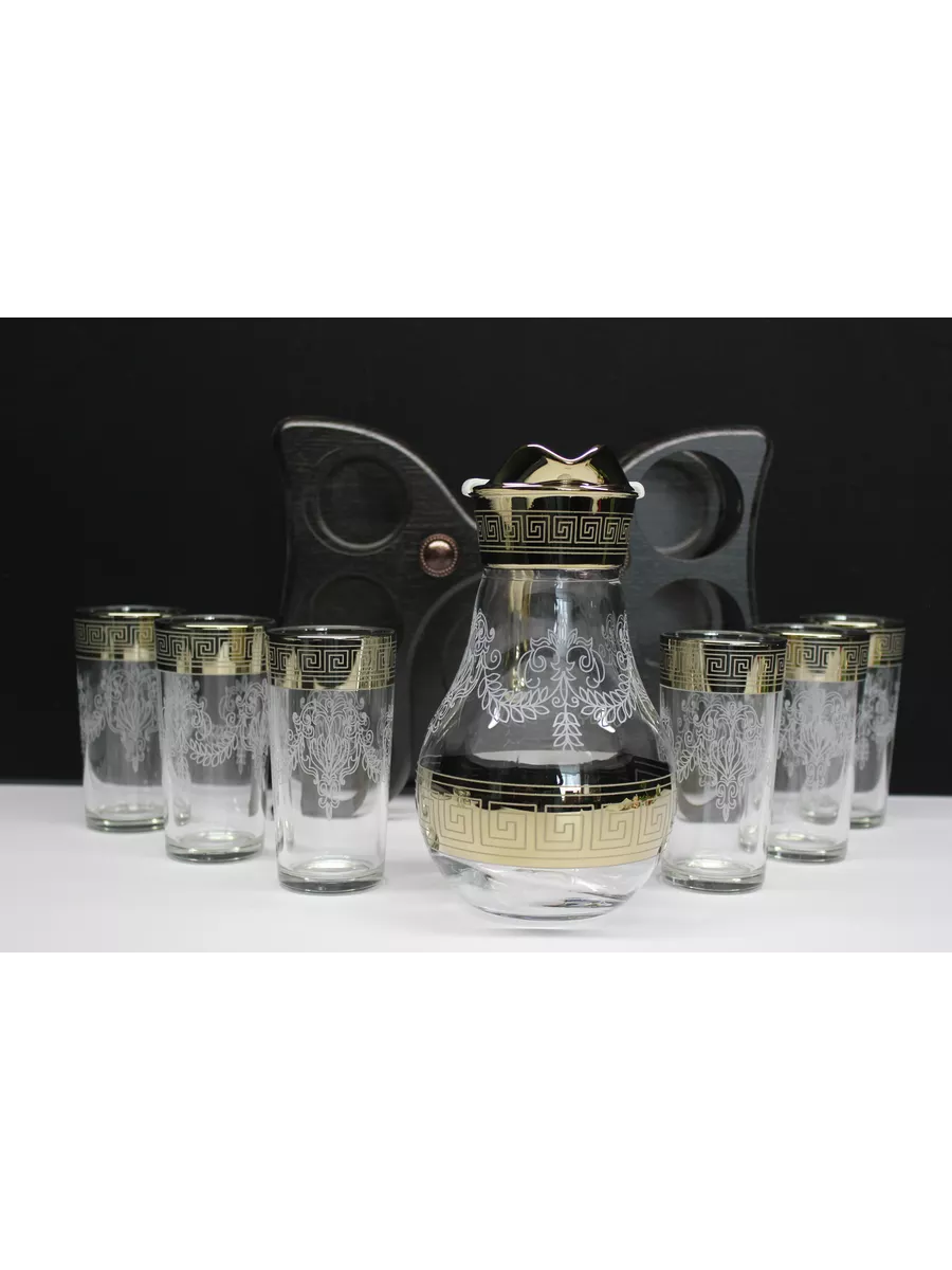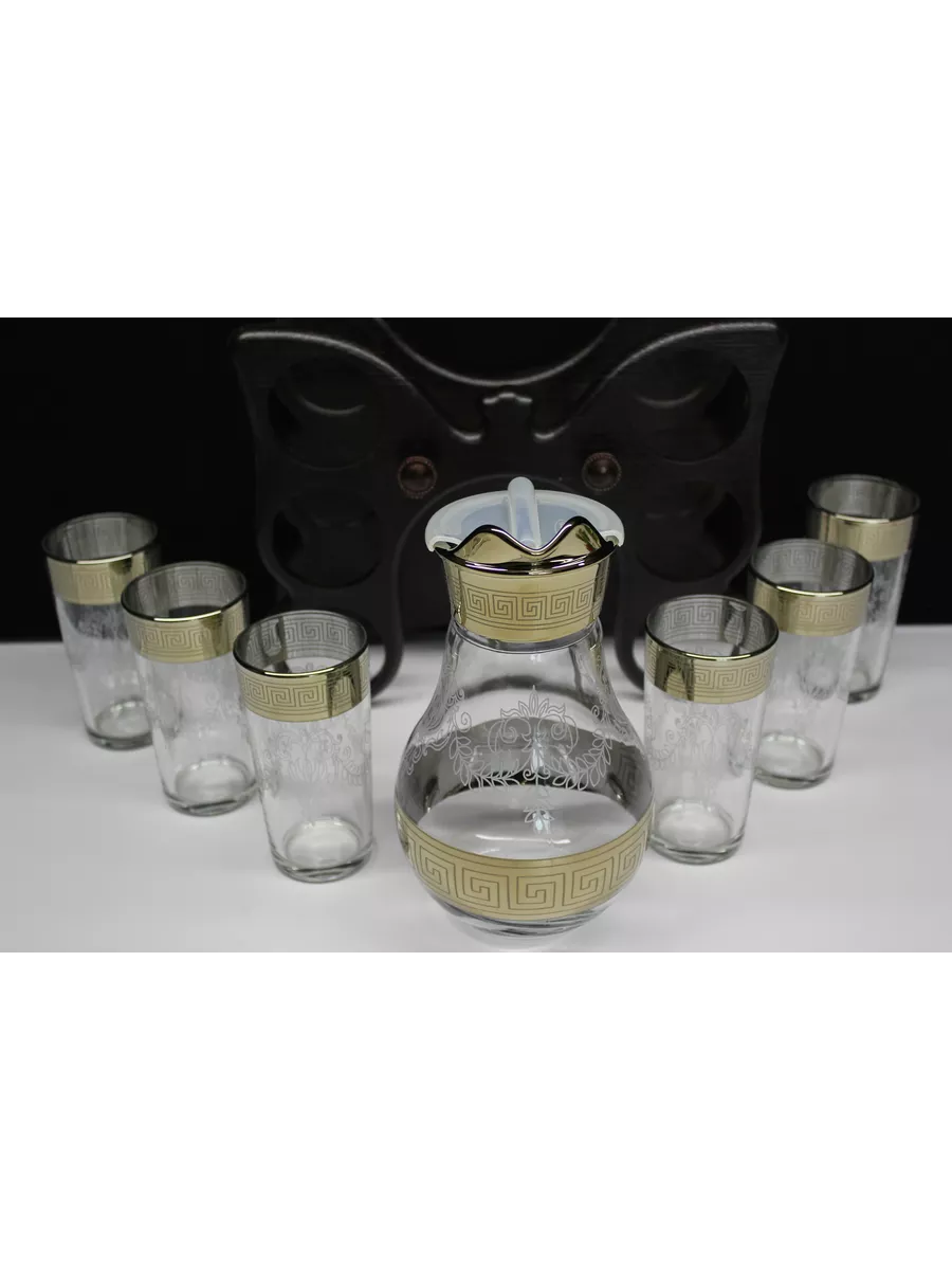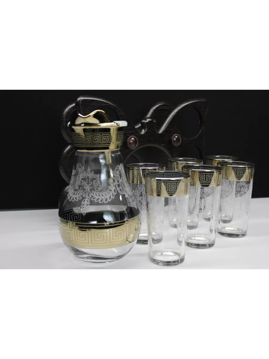 Кувшин для воды 1000 мл с крышкой и стеклянные стаканы 6 шт на барной стойке коллекции"Барокко" – отличный набор для дома, выполнен из прочного качественного стекла с алмазной гравировкой. Он подойдет как к повседневному, так и торжественному столу. Благодаря своей универсальности декоративная посуда станет идеальным выбором для сервировки стола на любом празднике. Кувшин стеклянный со стаканами - это качественная посуда для сервировки, предназначен для любых напитков: воды и сока, лимонада и компота, молока и коктейлей. Кувшин и стаканы на барной стойке - это комплект, необходимый каждой семье, прослужат вам долго и обеспечат свой первоначальный вид. Набор посуды для сервировки в праздничной подарочной упаковке – это полезный красивый подарок на любой праздник. Приобретая его, вы не только получаете качественный товар, но и стильный элемент декора для вашего дома. И если вы не можете определиться с новогодним подарком или подарком на день рождения и другие праздники, то универсальный решением будет наш подарочный набор кувшин и стаканы на баре.