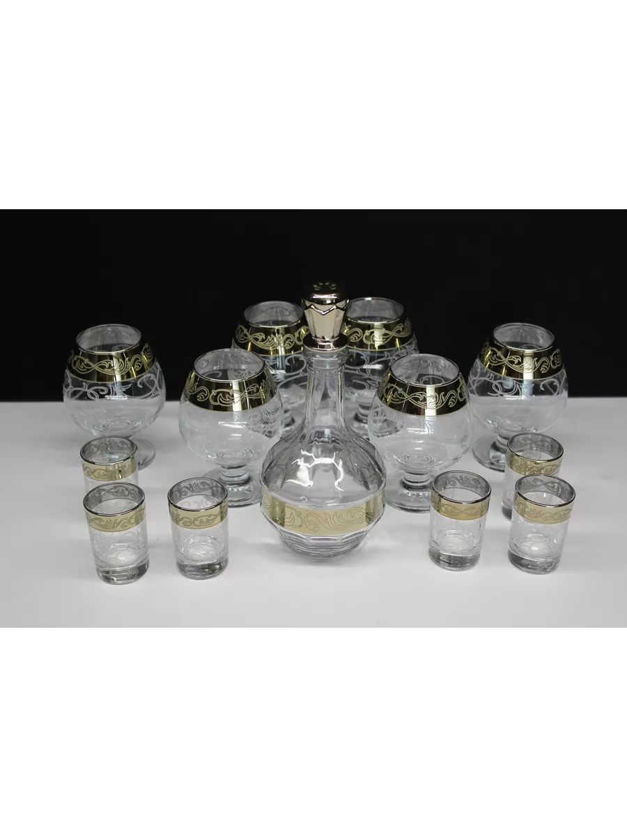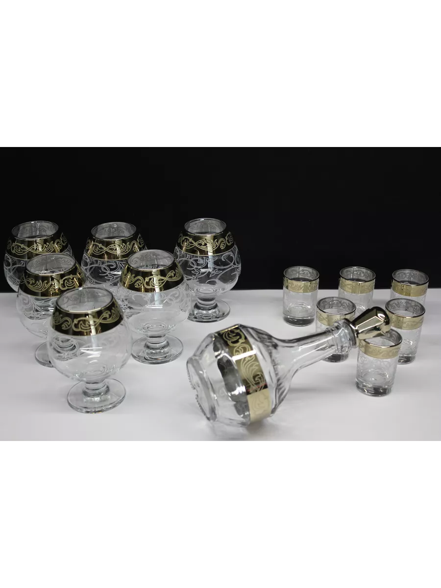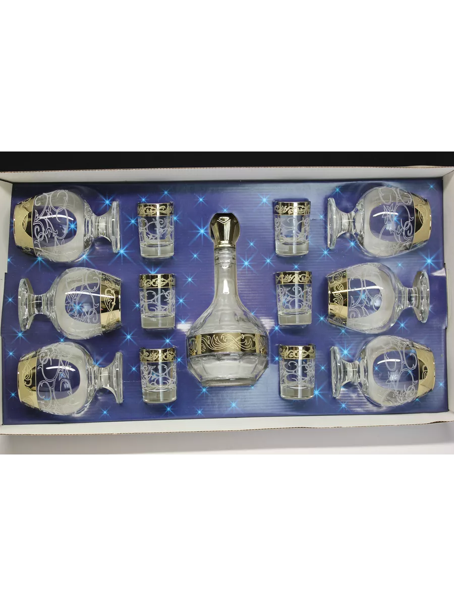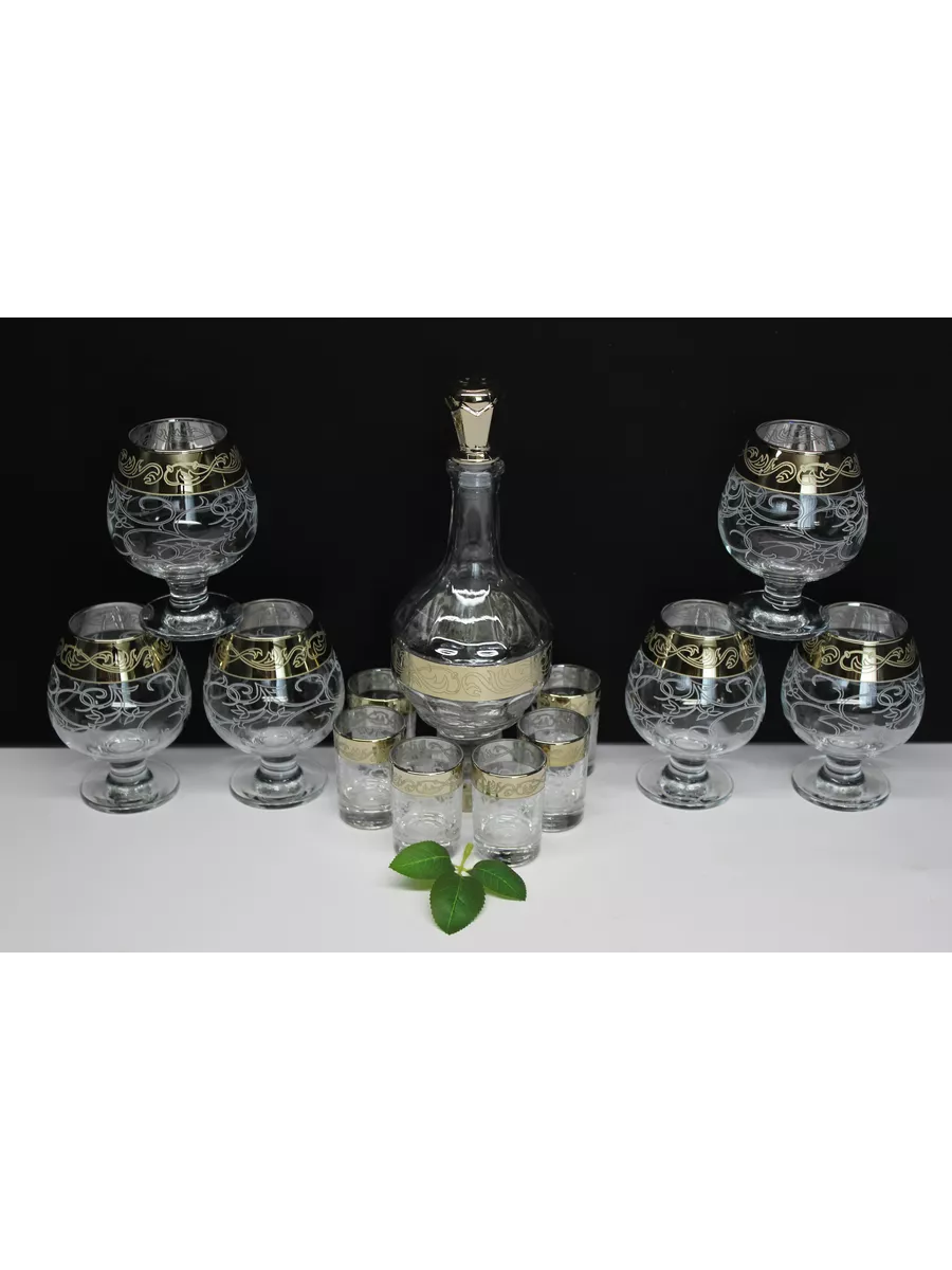 Подарочные бокалы, стопки,графины станут замечательным презентом на любое торжество.Каждый предмет набора изготовлен из прочного стекла и обладает красивой формой, которая придает ему дополнительный шик. Но главным элементом дизайна являются рисунок цветов и золотая отводка, которыми украшен каждый бокал, стопка и графин. Мягкие и изящные линии рисунка замечательно сочетаются с блеском , бокалов , стопок и графинов создают неповторимый эффект. Этот набор станет отличным подарком для тех, кто ценит красоту, изысканность и гармонию во всем. Он также подойдет для оформления свадебного стола или другого торжества. Набор подарочный «Абстракция" — это не просто элемент сервировки стола, это настоящее произведение искусства, где каждый бокал станет символом роскоши и изысканности.