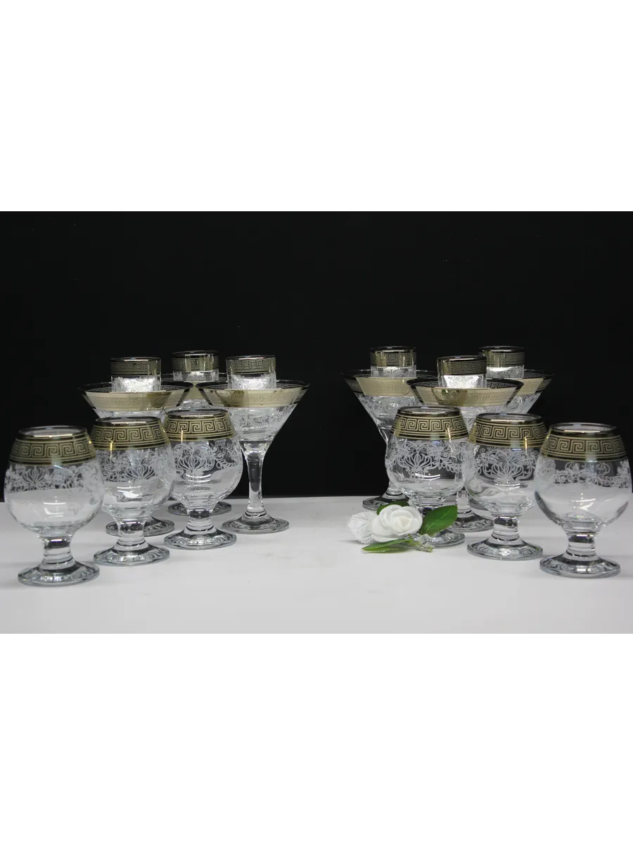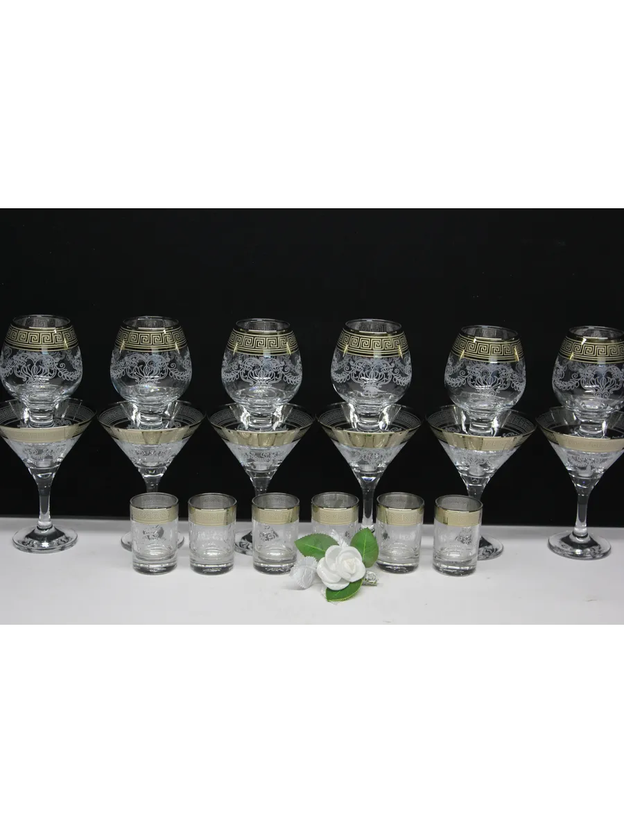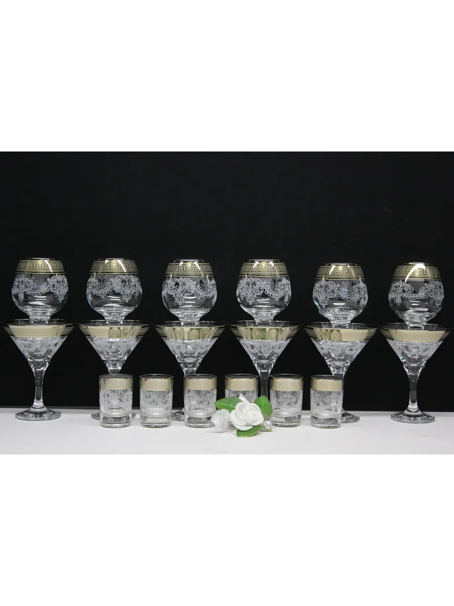Этот элегантный и стильный подарочный набор "Барокко" включает 6 фужеров для мартини, 6 фужеров для бренди и 6 стопок, украшенных нежным, воздушным рисунком и золотым богемным напылением. Набор поставляется в стильной подарочной упаковке, что делает его идеальным подарком для любителей изысканности и утонченности.