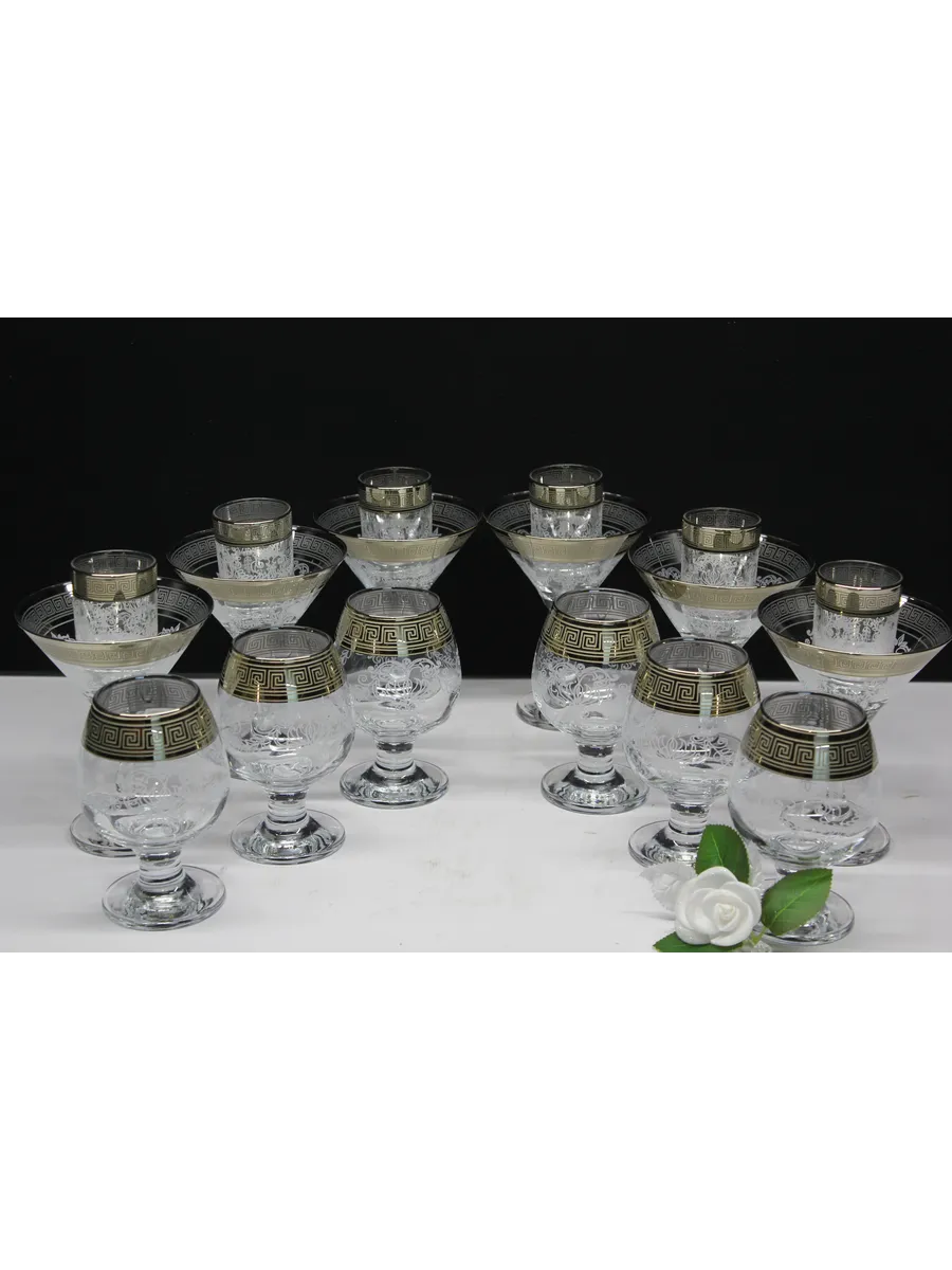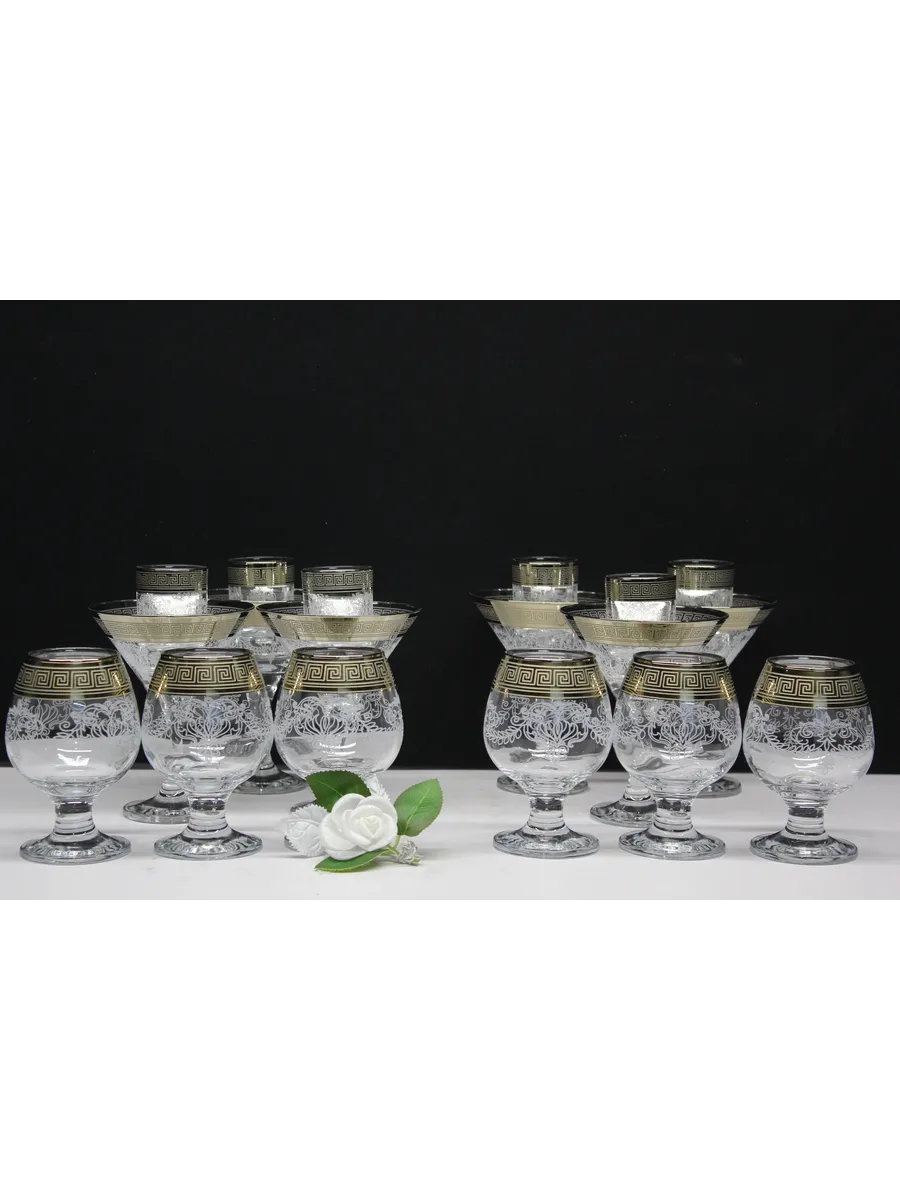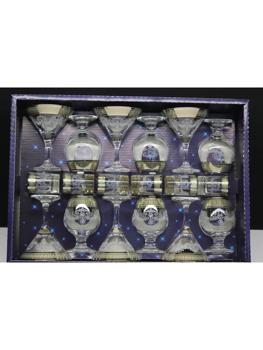 Этот элегантный и стильный подарочный набор "Барокко" включает 6 фужеров для мартини, 6 фужеров для бренди и 6 стопок, украшенных нежным, воздушным рисунком и золотым богемным напылением. Набор поставляется в стильной подарочной упаковке, что делает его идеальным подарком для любителей изысканности и утонченности.