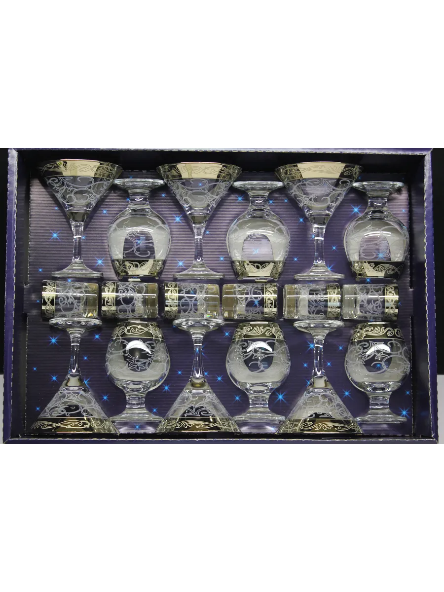 Этот элегантный и стильный подарочный набор "Вдохновение" включает 6 фужеров для мартини, 6 фужеров для бренди и 6 стопок, украшенных нежным, воздушным рисунком и золотым богемным напылением. Набор поставляется в стильной подарочной упаковке, что делает его идеальным подарком для любителей изысканности и утонченности.
