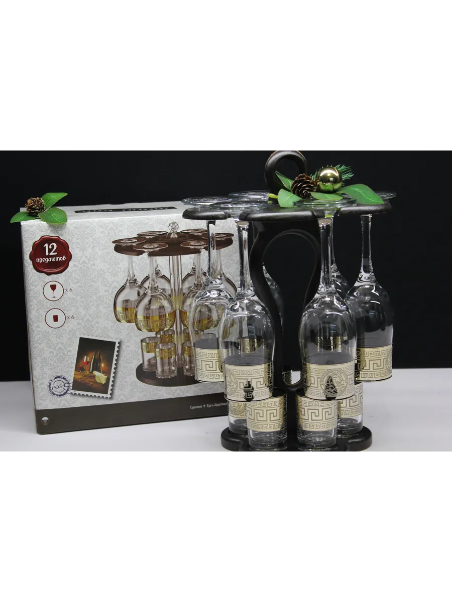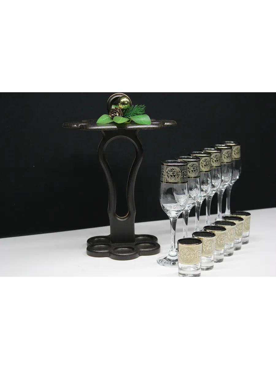 Барный набор 12 предметов из 6 бокалов 6 стопок с гравировкой и золотым напылением на барной стойке из МДФ - это не только функциональная вещь, но и настоящий предмет искусства, который будет радовать глаз и душу на многие годы. Закажите сейчас и наслаждайтесь настоящими напитками в стильном и роскошном дизайне!