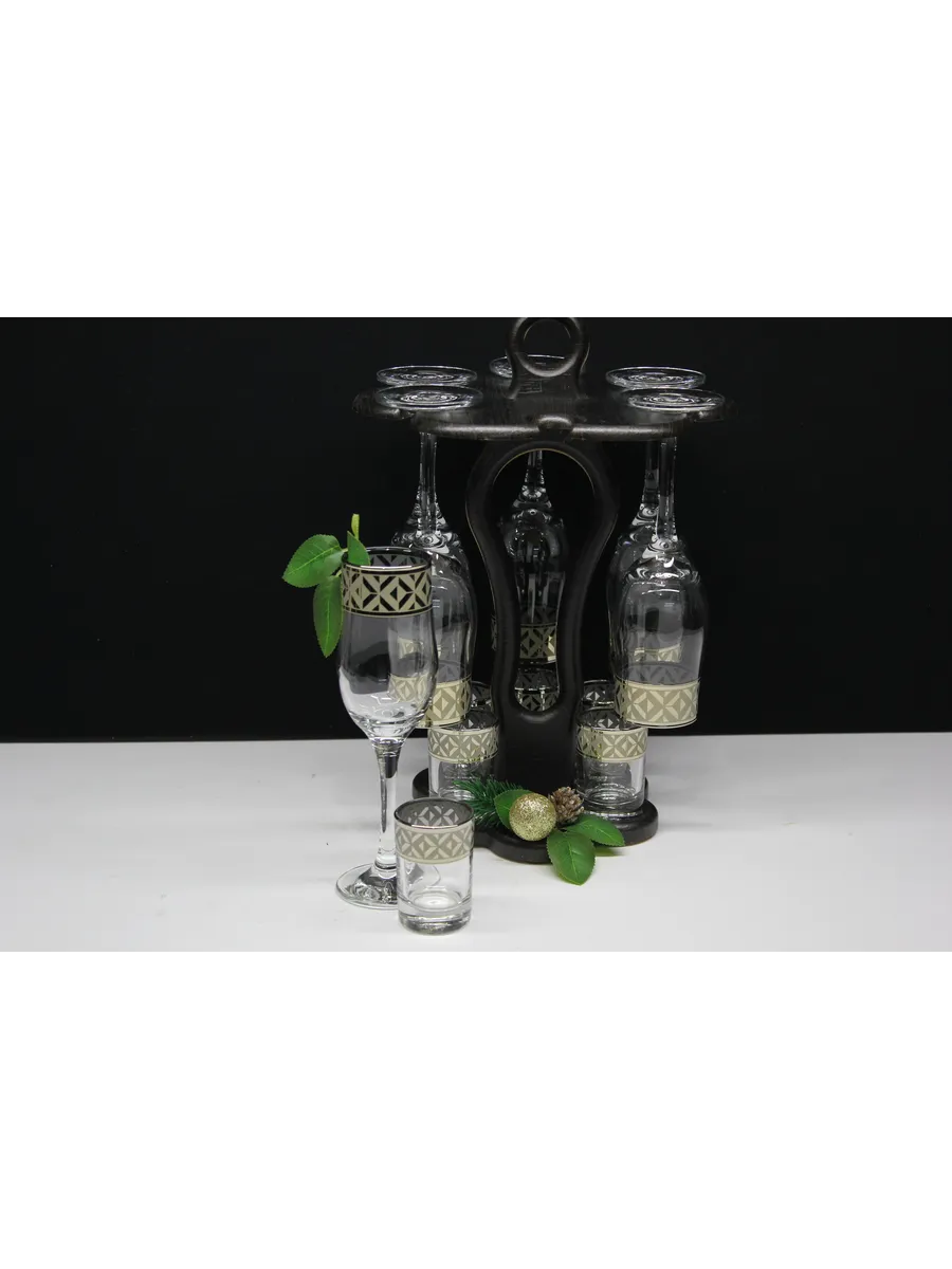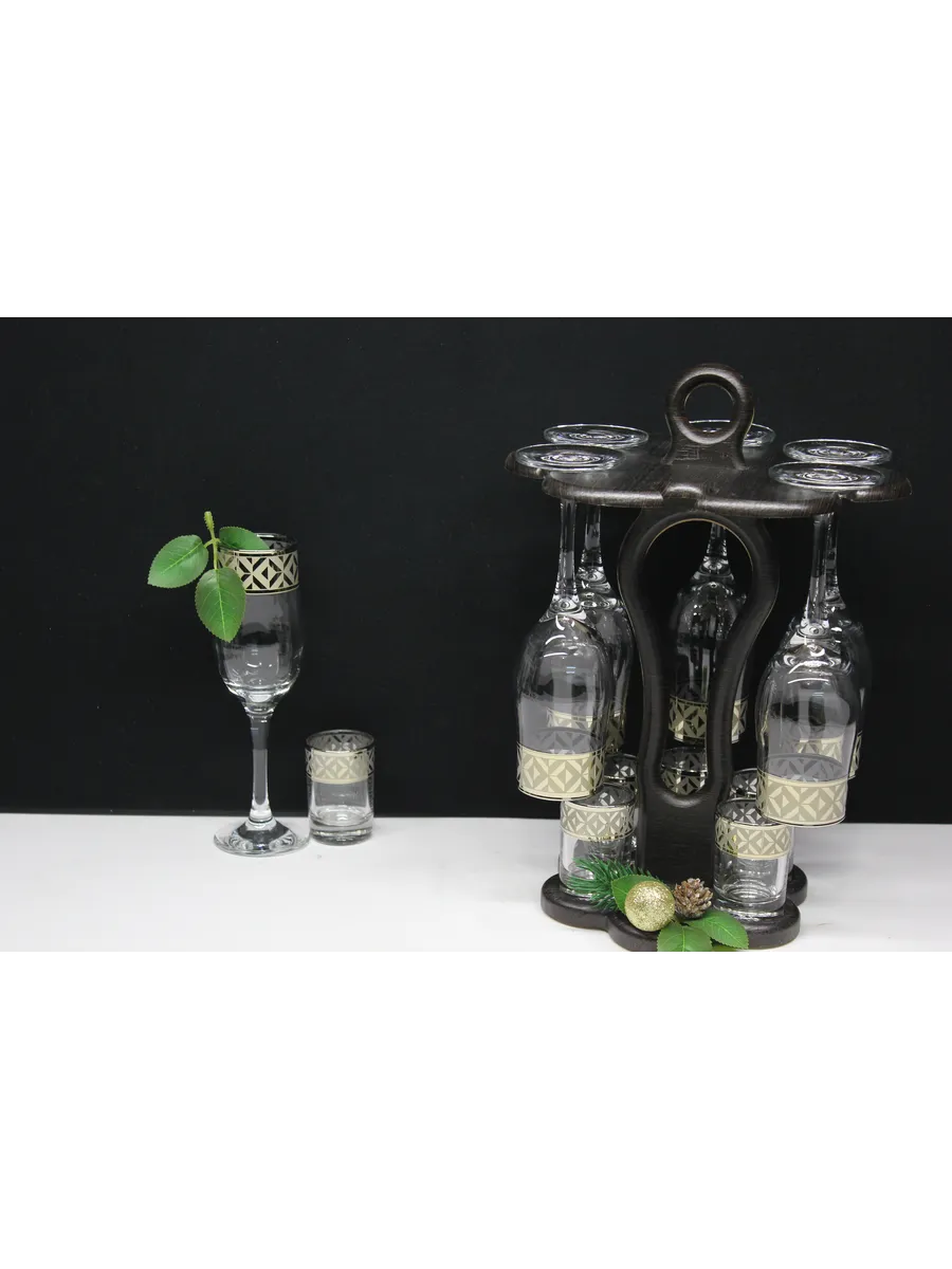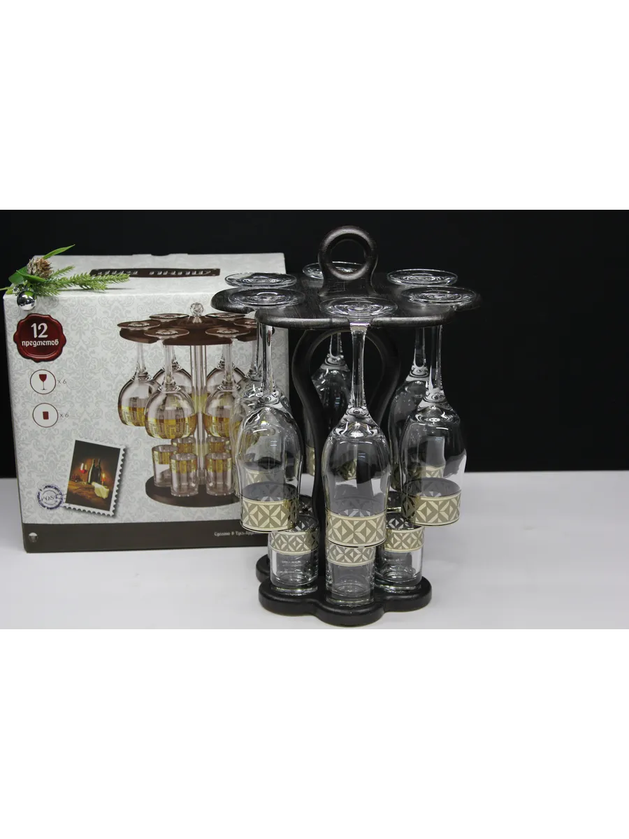 Барный набор 12 предметов из 6 бокалов 6 стопок с гравировкой и золотым напылением на барной стойке из МДФ - это не только функциональная вещь, но и настоящий предмет искусства, который будет радовать глаз и душу на многие годы. Закажите сейчас и наслаждайтесь настоящими напитками в стильном и роскошном дизайне!