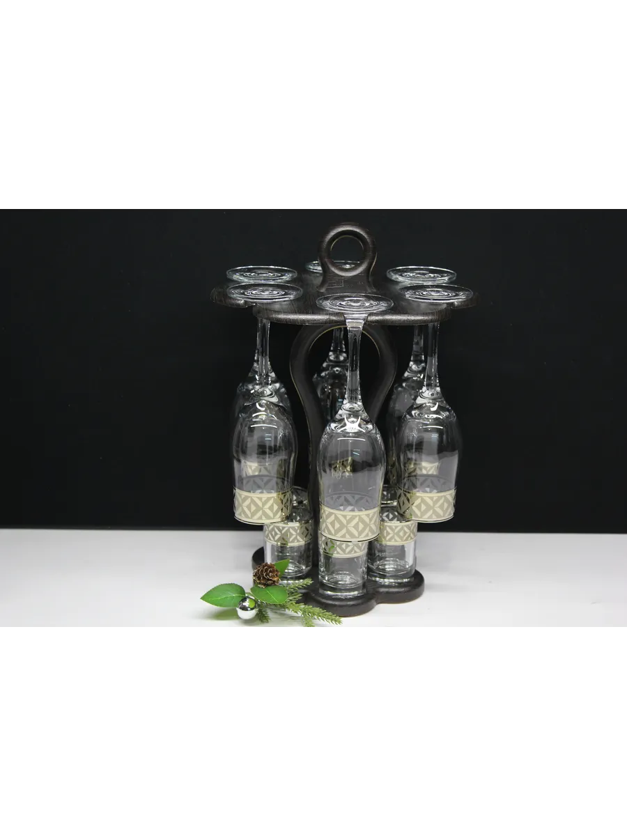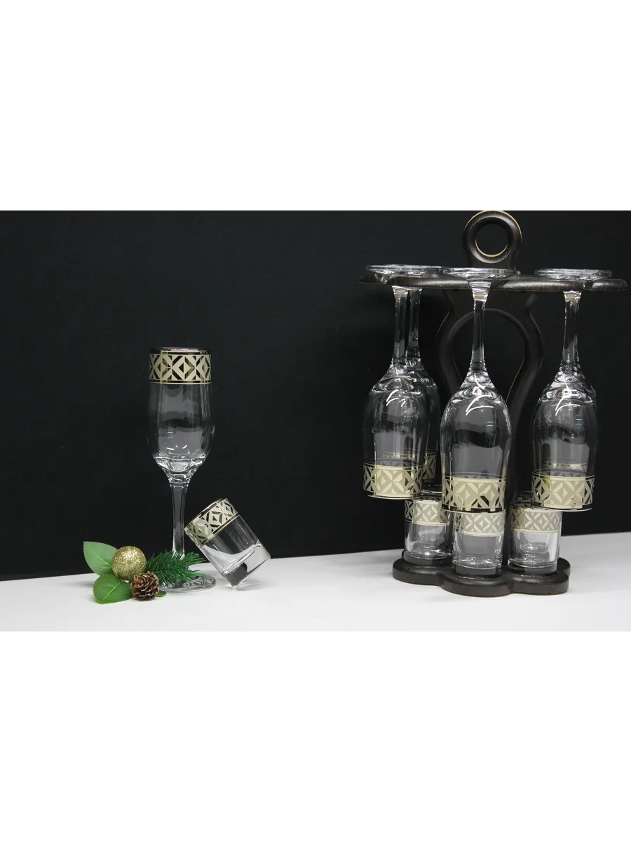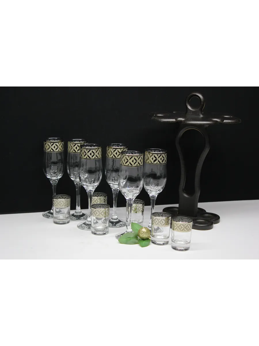 Барный набор 12 предметов из 6 бокалов 6 стопок с гравировкой и золотым напылением на барной стойке из МДФ - это не только функциональная вещь, но и настоящий предмет искусства, который будет радовать глаз и душу на многие годы. Закажите сейчас и наслаждайтесь настоящими напитками в стильном и роскошном дизайне!