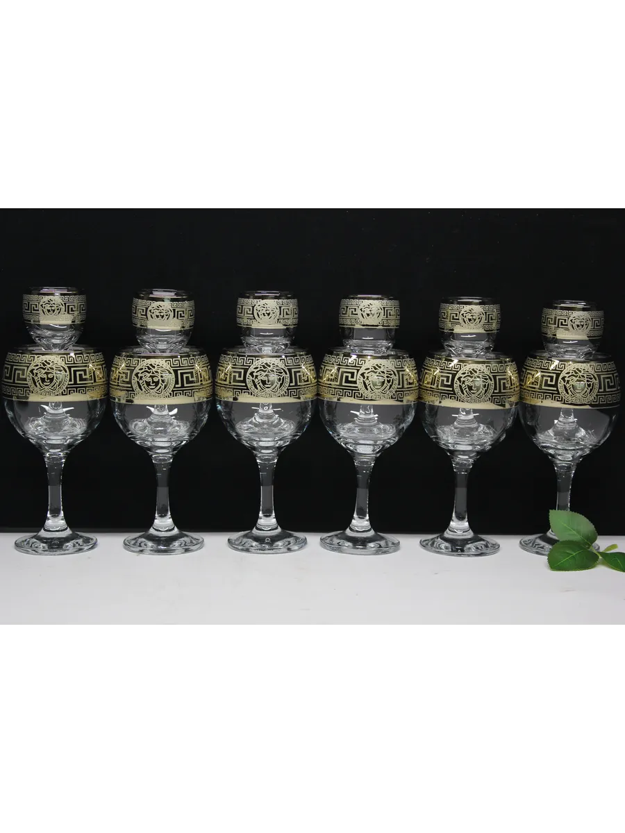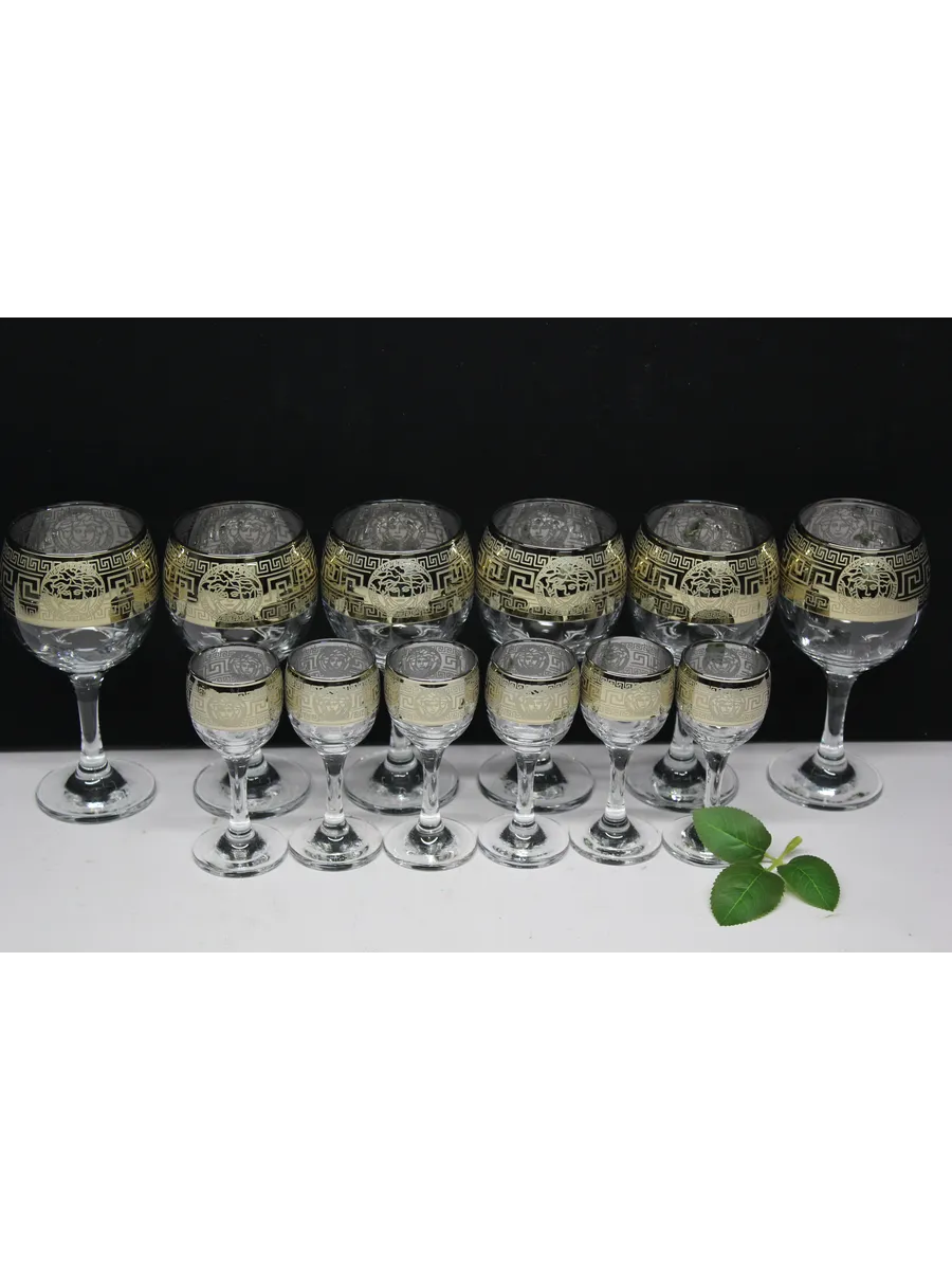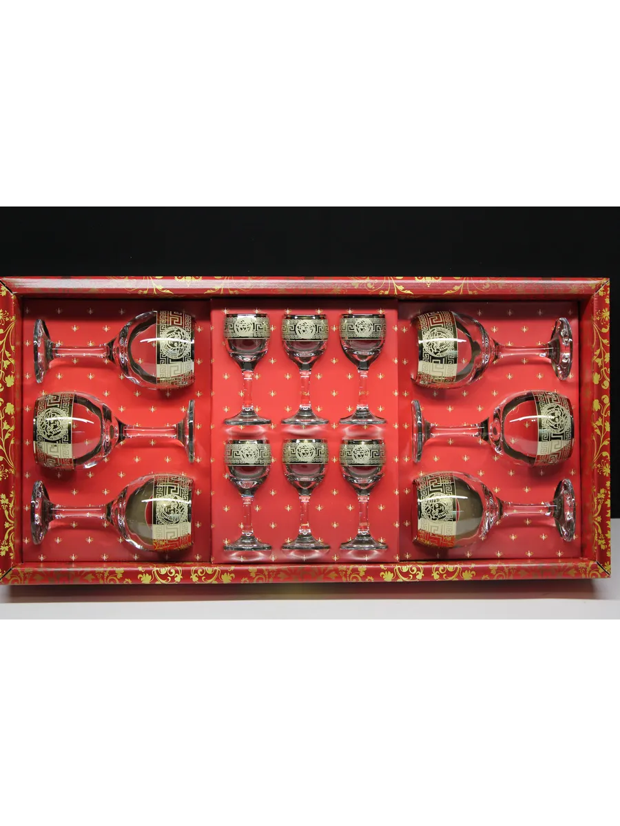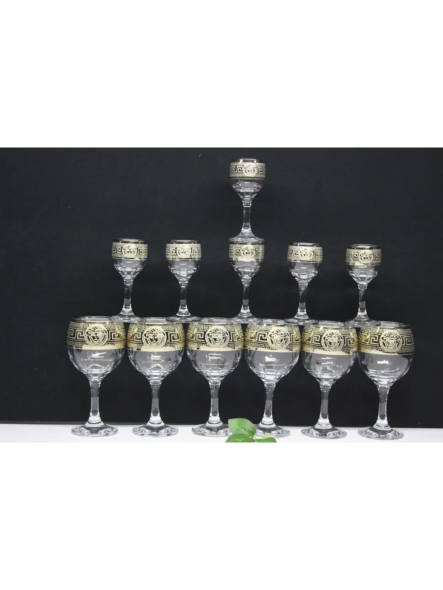 Этот эксклюзивный подарочный набор — воплощение роскоши и элегантности. В набор входят 6 фужеров объемом 290 мл и 6 рюмок объемом 60 мл, украшенных гравировкой в стиле Версаче и золотым напылением. Идеальный выбор для тех, кто ценит изысканность и утонченность.