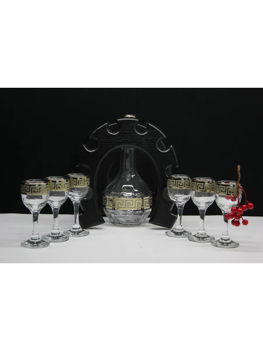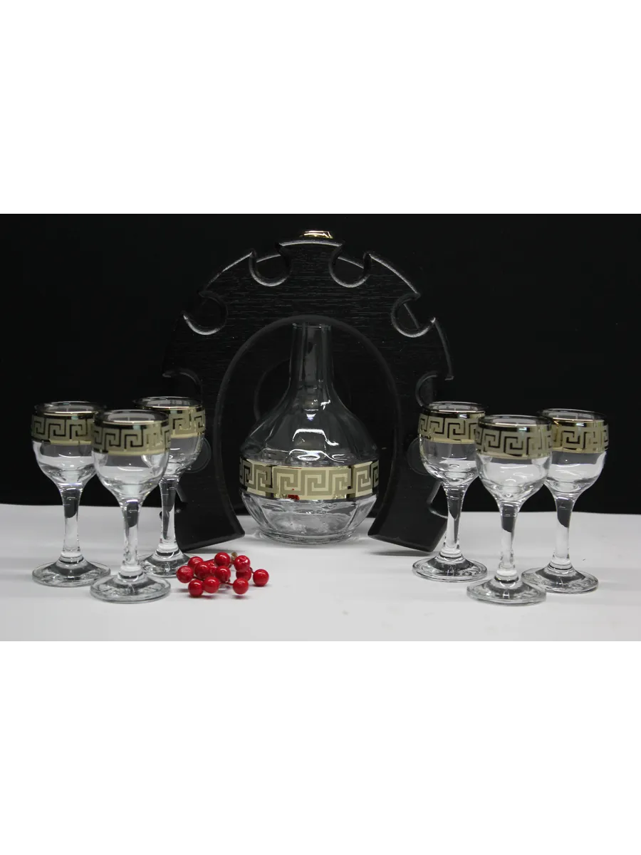Набор посуды подарочный с гравировкой. Мини бар из 7 предметов. В комплекте графин для водки стеклянный, рюмки для водки набор 6 шт по 60 мл и деревянная стойка. Изящные изделия прекрасно дополнят сервировку любого стола и станут эффектным аксессуаром в вашем баре. Набор рюмок 6 штук выполнены из прочного стекла с применением новейших технологий, благодаря чему набор рюмок 6 шт долго служат и не теряют своего потрясающего внешнего вида в течение всего срока эксплуатации. Красивые рюмки для ликера имеют изящную форму и ослепительный блеск. Новогодние рюмки набор прозрачные идеально подойдут наливки. Набор для крепких напитков для сервировки стола на праздник. Элегантная форма и тоненькая ножка добавят изысканности. Набор рюмок с гравировкой - это отличный выбор для подарка. Подарочные мужские рюмки для коньяка изготовлены из специального материала.
