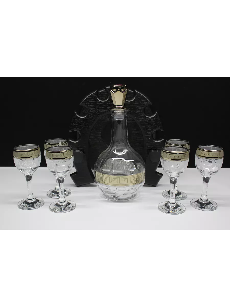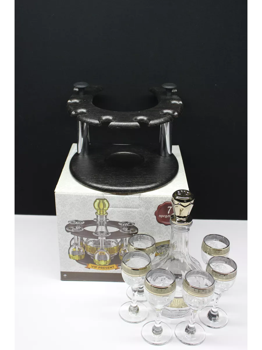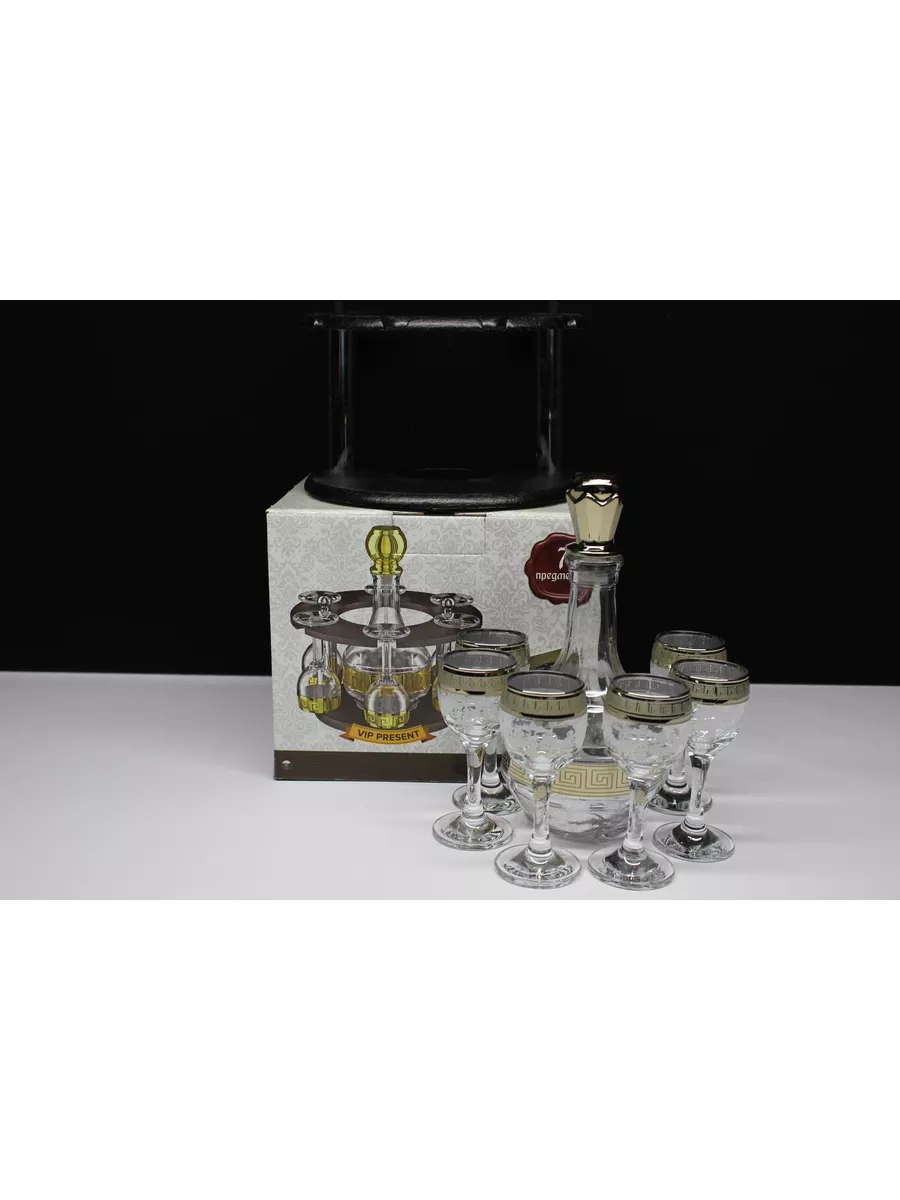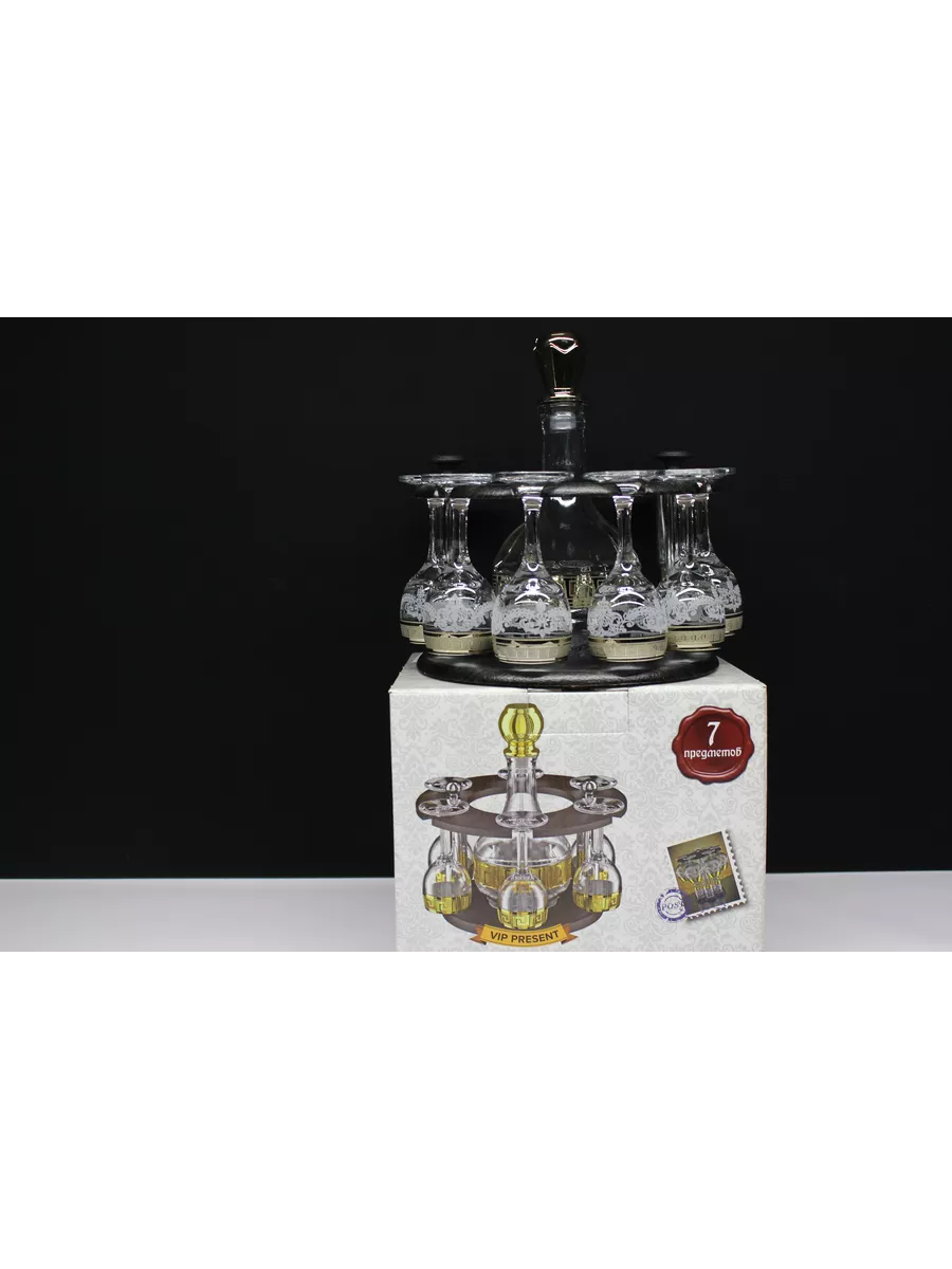 Набор посуды подарочный с гравировкой. Мини бар из 7 предметов. В комплекте графин для водки стеклянный, рюмки для водки набор 6 шт по 50 мл и деревянная стойка. Изящные изделия прекрасно дополнят сервировку любого стола и станут эффектным аксессуаром в вашем баре. Набор рюмок 6 штук выполнены из прочного стекла с применением новейших технологий, благодаря чему набор стопок 6 шт долго служат и не теряют своего потрясающего внешнего вида в течение всего срока эксплуатации. Красивые рюмки для ликера имеют изящную форму и ослепительный блеск. Новогодние рюмки набор прозрачные идеально подойдут наливки. Набор для крепких напитков для сервировки стола на праздник. Элегантная форма и тоненькая ножка добавят изысканности. Набор рюмок с гравировкой - это отличный выбор для подарка. Подарочные мужские рюмки для коньяка изготовлены из специального материала.