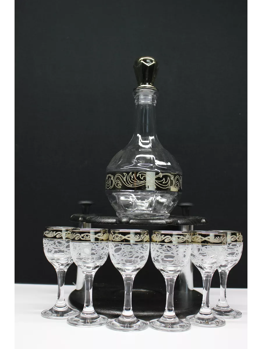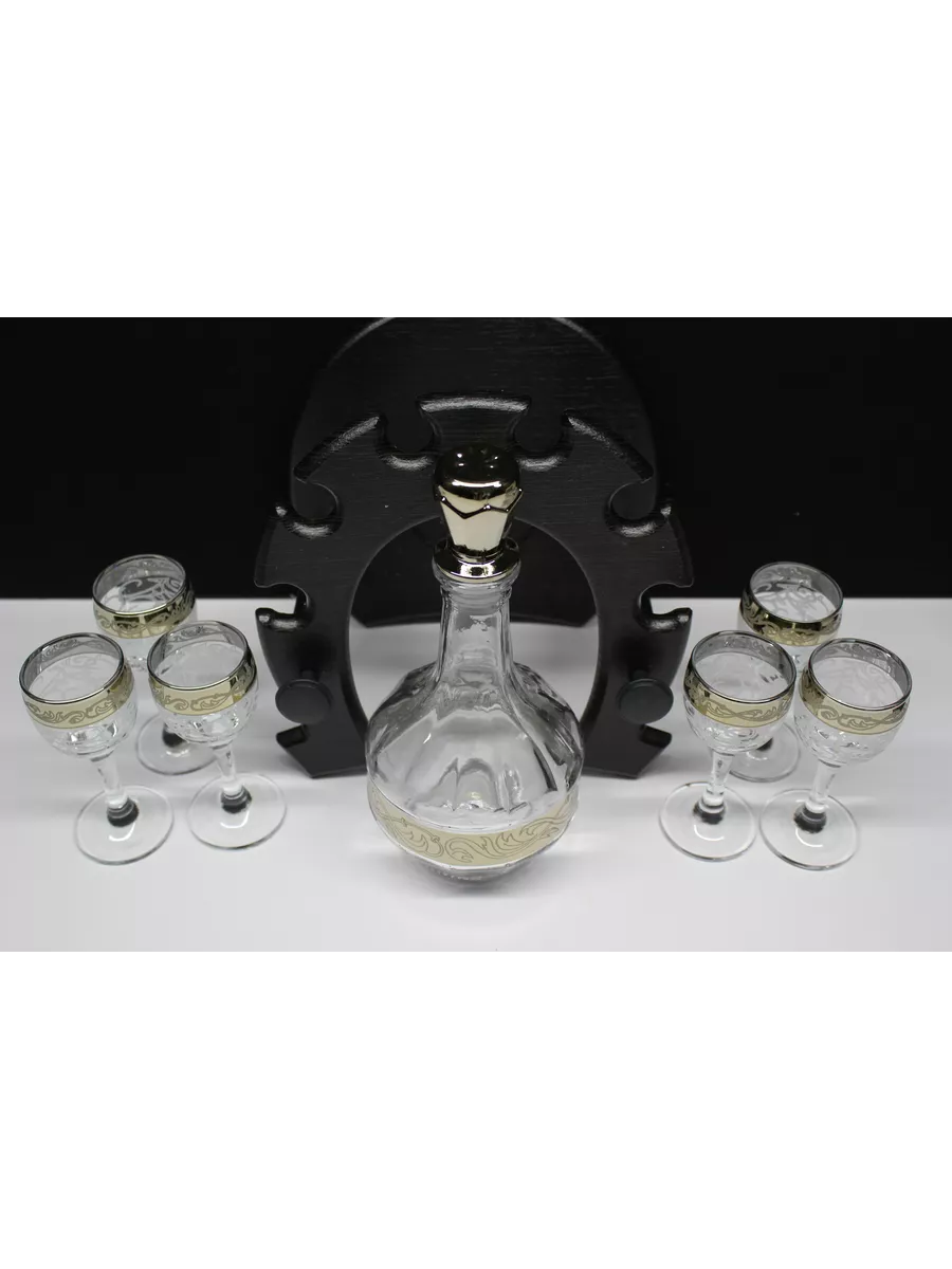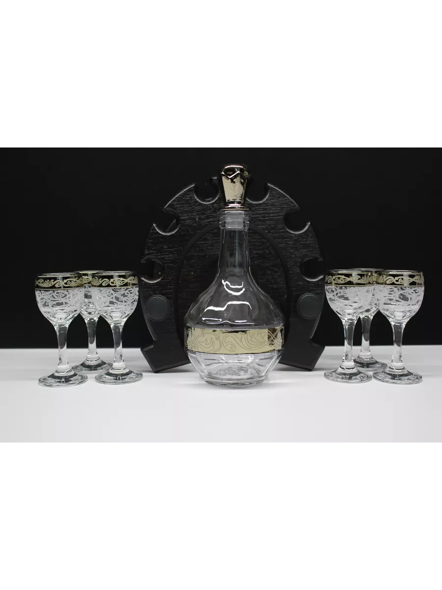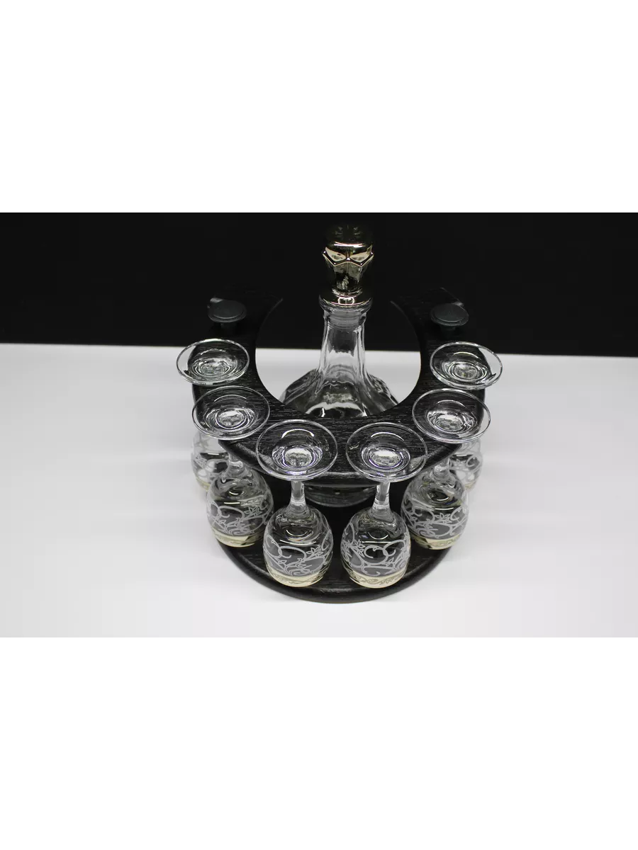 Набор посуды подарочный с гравировкой. Мини бар из 7 предметов. В комплекте графин для водки стеклянный, рюмки для водки набор 6 шт по 50 мл и деревянная стойка. Изящные изделия прекрасно дополнят сервировку любого стола и станут эффектным аксессуаром в вашем баре. Набор рюмок 6 штук выполнены из прочного стекла с применением новейших технологий, благодаря чему набор стопок 6 шт долго служат и не теряют своего потрясающего внешнего вида в течение всего срока эксплуатации. Красивые рюмки для ликера имеют изящную форму и ослепительный блеск. Новогодние рюмки набор прозрачные идеально подойдут наливки. Набор для крепких напитков для сервировки стола на праздник. Элегантная форма и тоненькая ножка добавят изысканности. Набор рюмок с гравировкой - это отличный выбор для подарка. Подарочные мужские рюмки для коньяка изготовлены из специального материала.