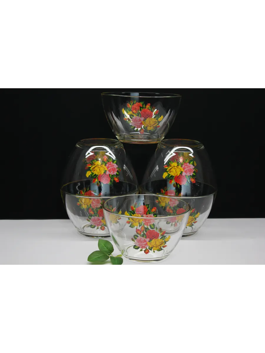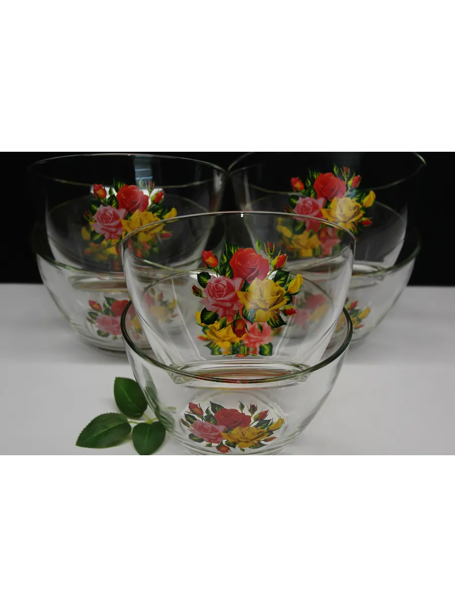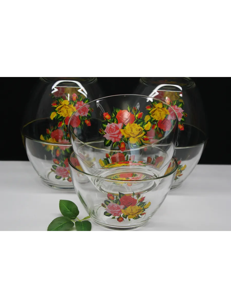 Декор: Праздничная деколь "Розы", придающая салатникам особый шик и утонченность.