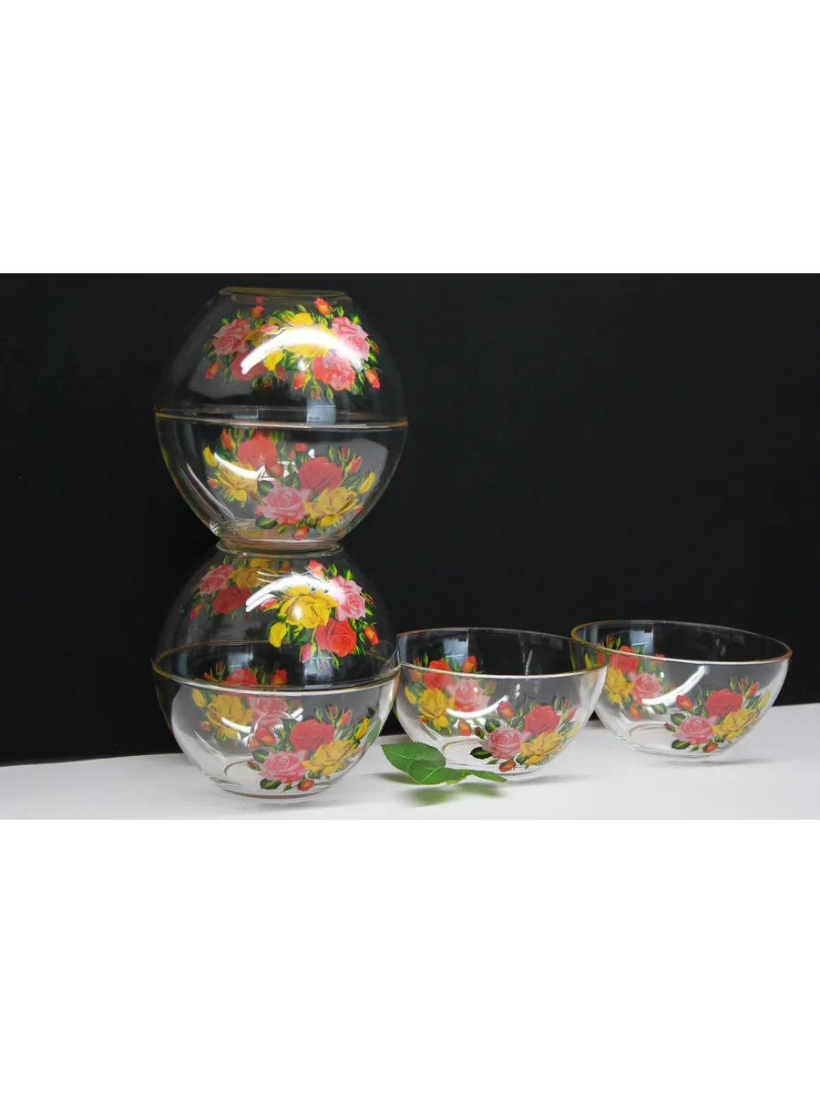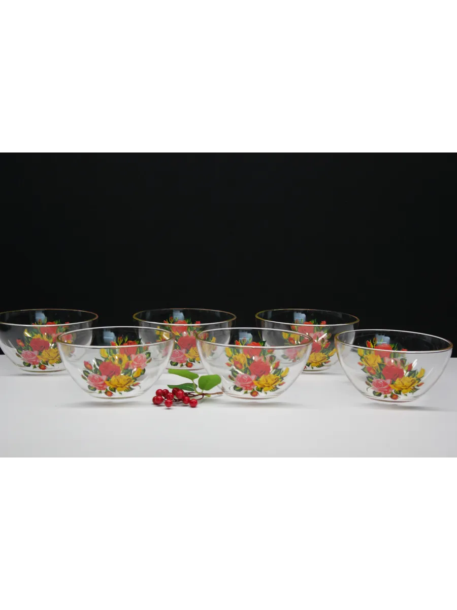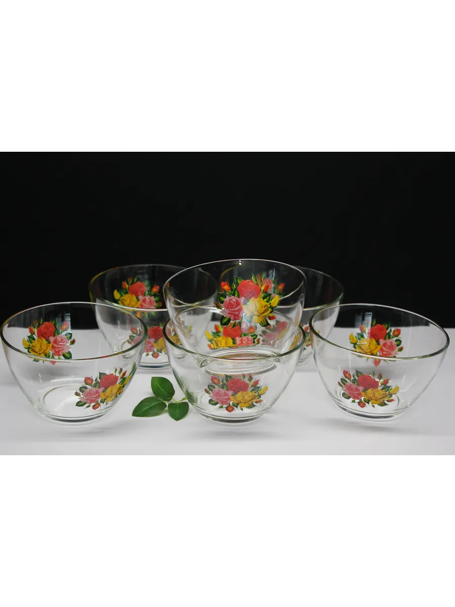 Декор: Праздничная деколь "Розы", придающая салатникам особый шик и утонченность.