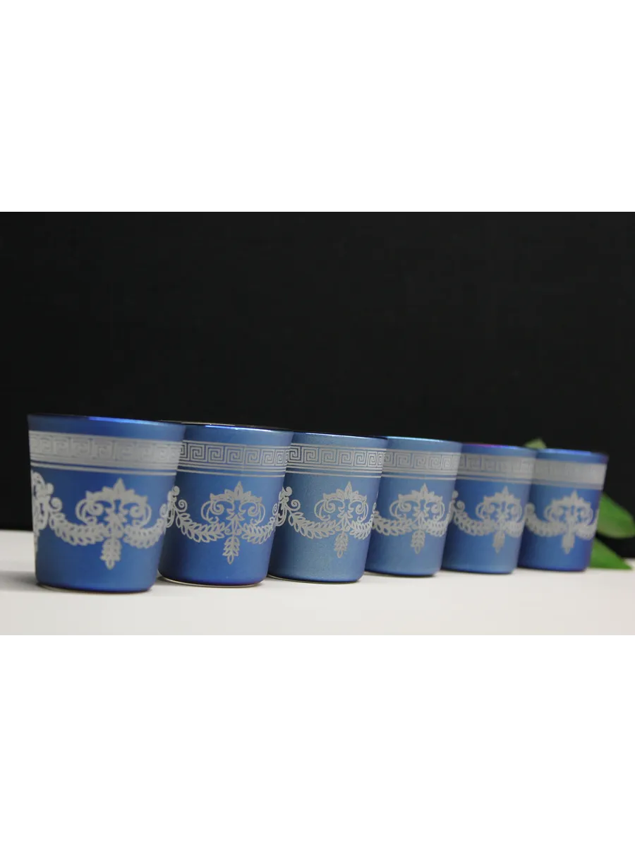 Матовое напыление цвета "Ледяной Байкал" придает стопкам оригинальный и стильный вид, который будет выглядеть отлично на любом столе. Этот цвет напоминает прозрачную чистоту ледяных глыб Байкала и создает эффектный контраст со стеклом.